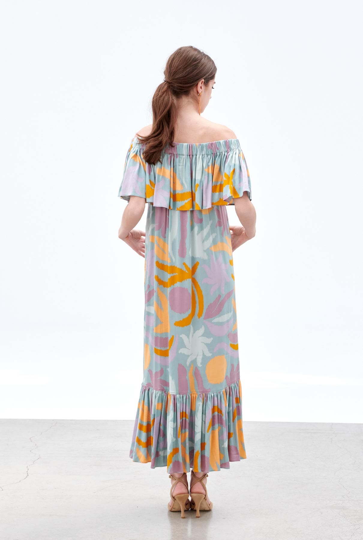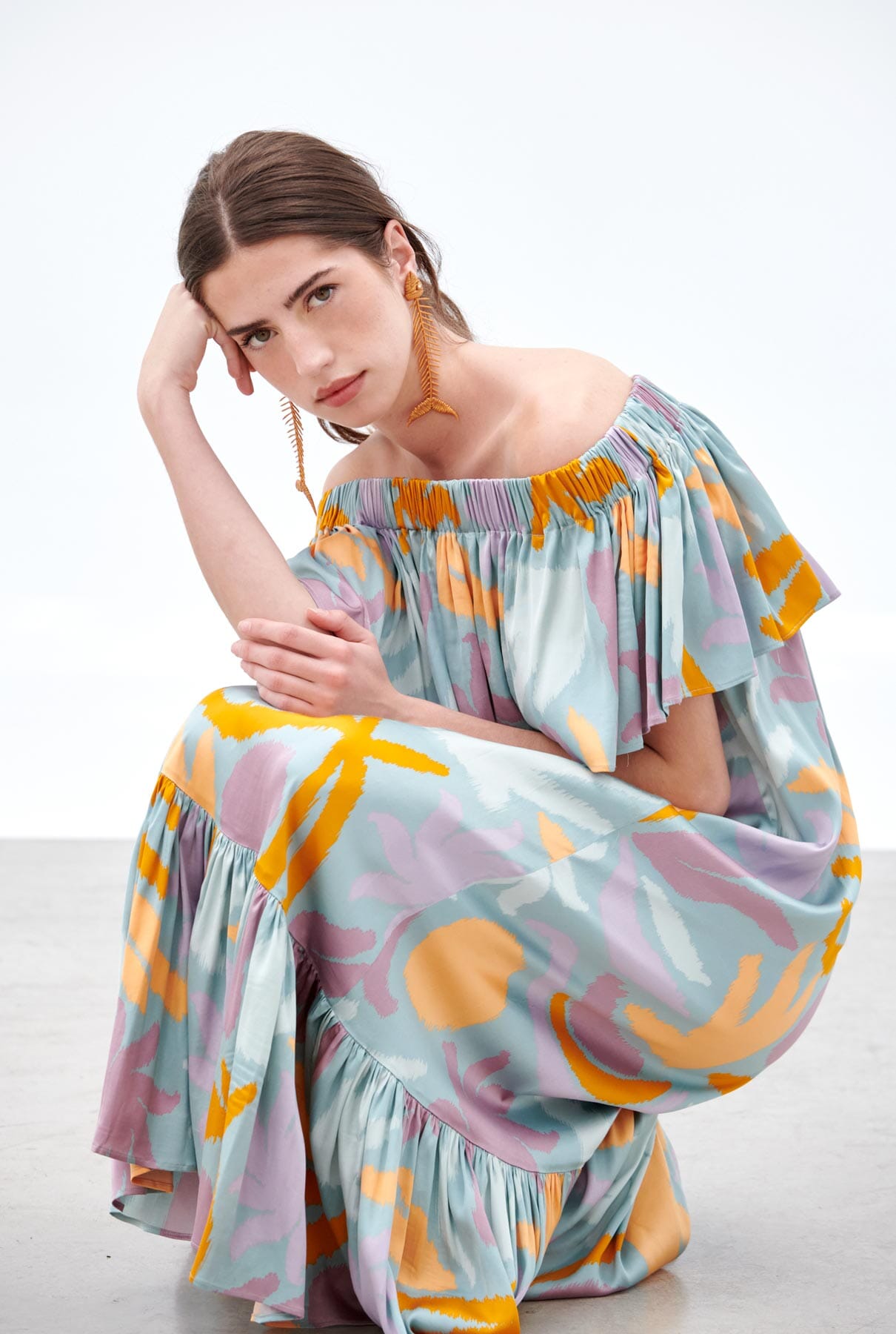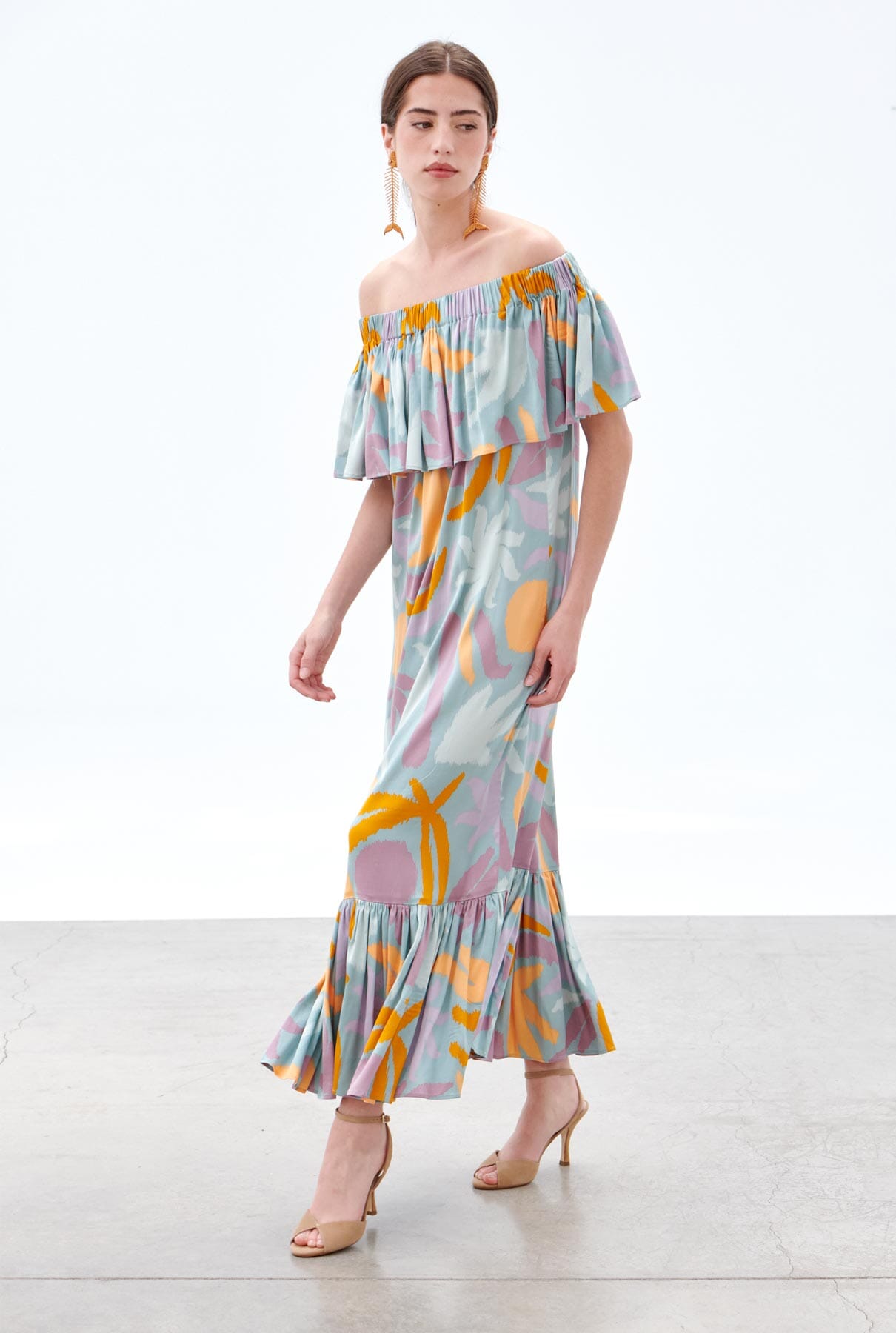 VESTIDO CON VOLANTES ELÁSTICOS. Diseño de Duyos.