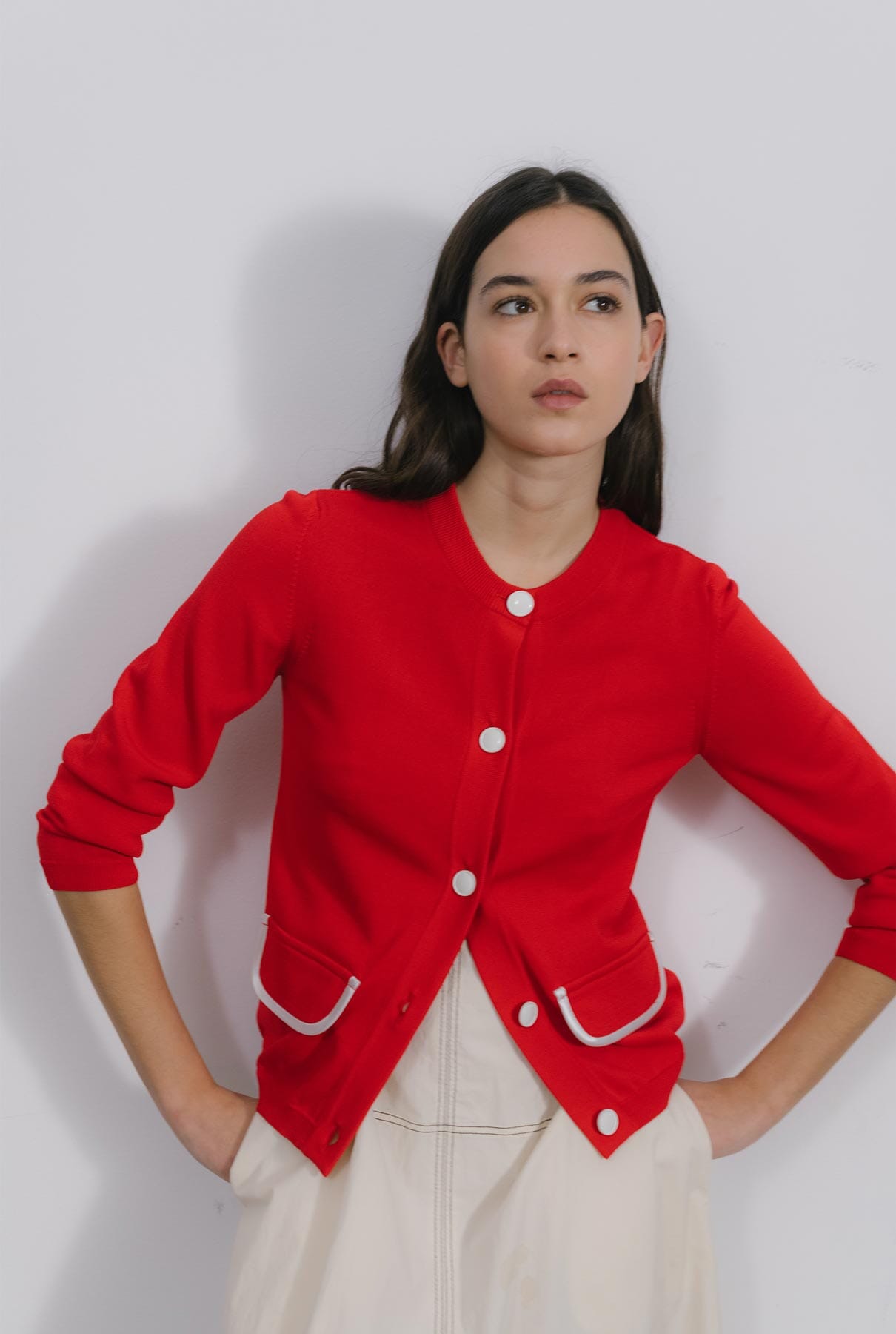 El cárdigan Montse es un básico de armario. Confeccionado en una mezcla de viscosa y nailon, este jersey presenta un diseño clásico actualizado con bolsillos ribeteados en contraste.