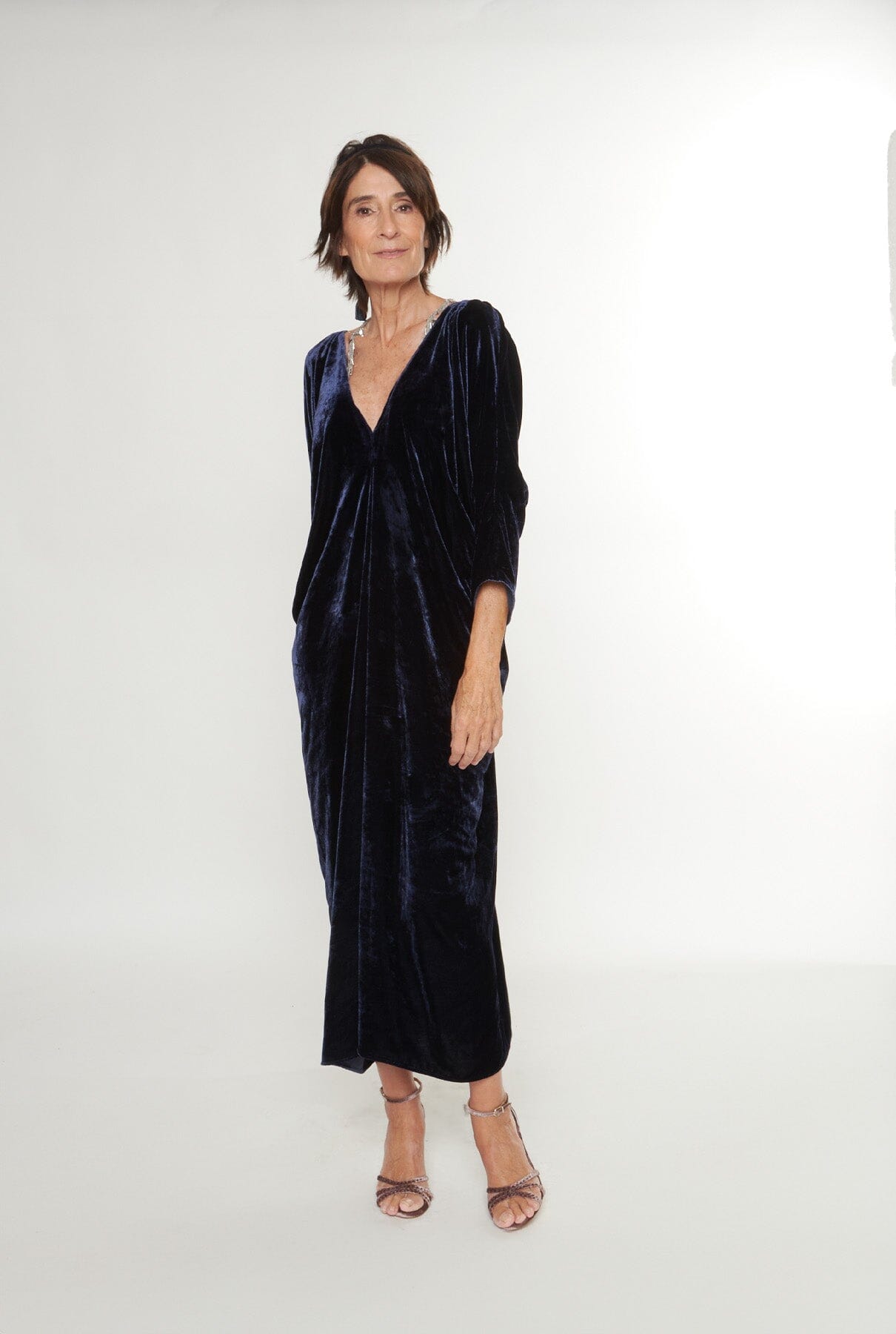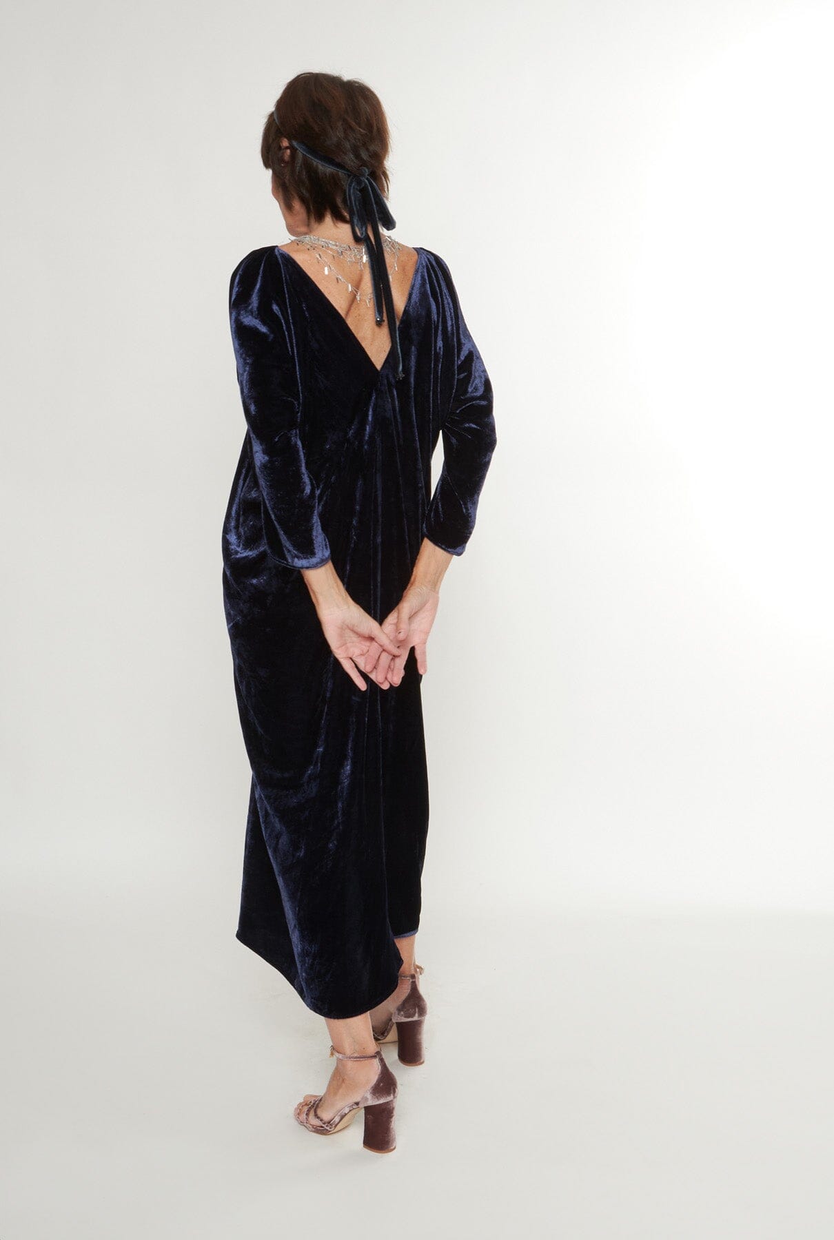 Vestido de terciopelo de manga larga con escote en V