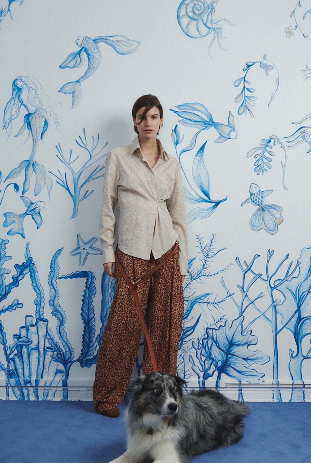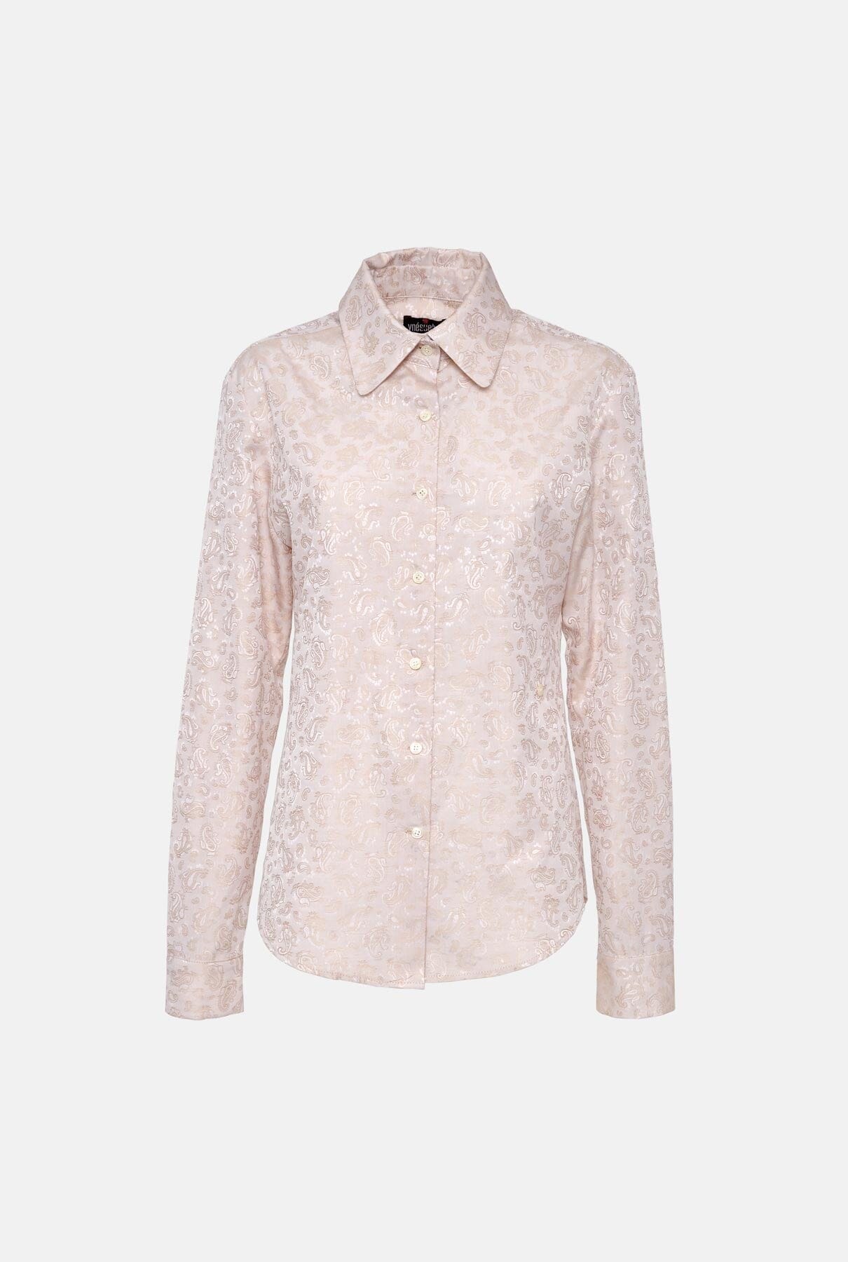 Camisa de algodón con estampado jacquard y doble abotonadura para llevar la camisa como camisa normal o cruzada.