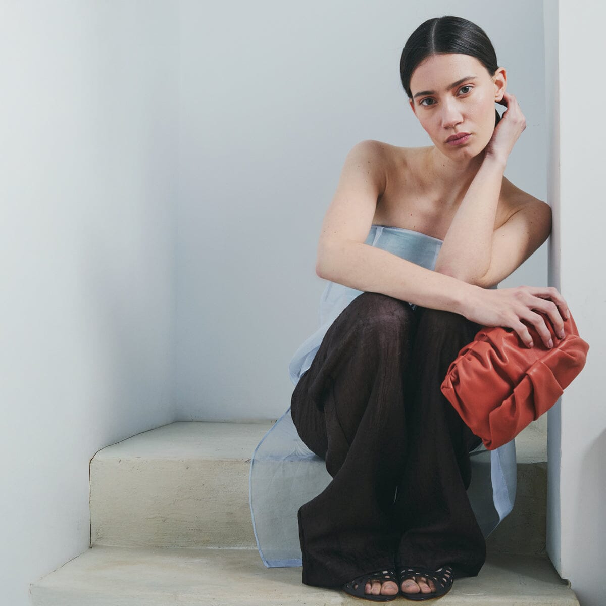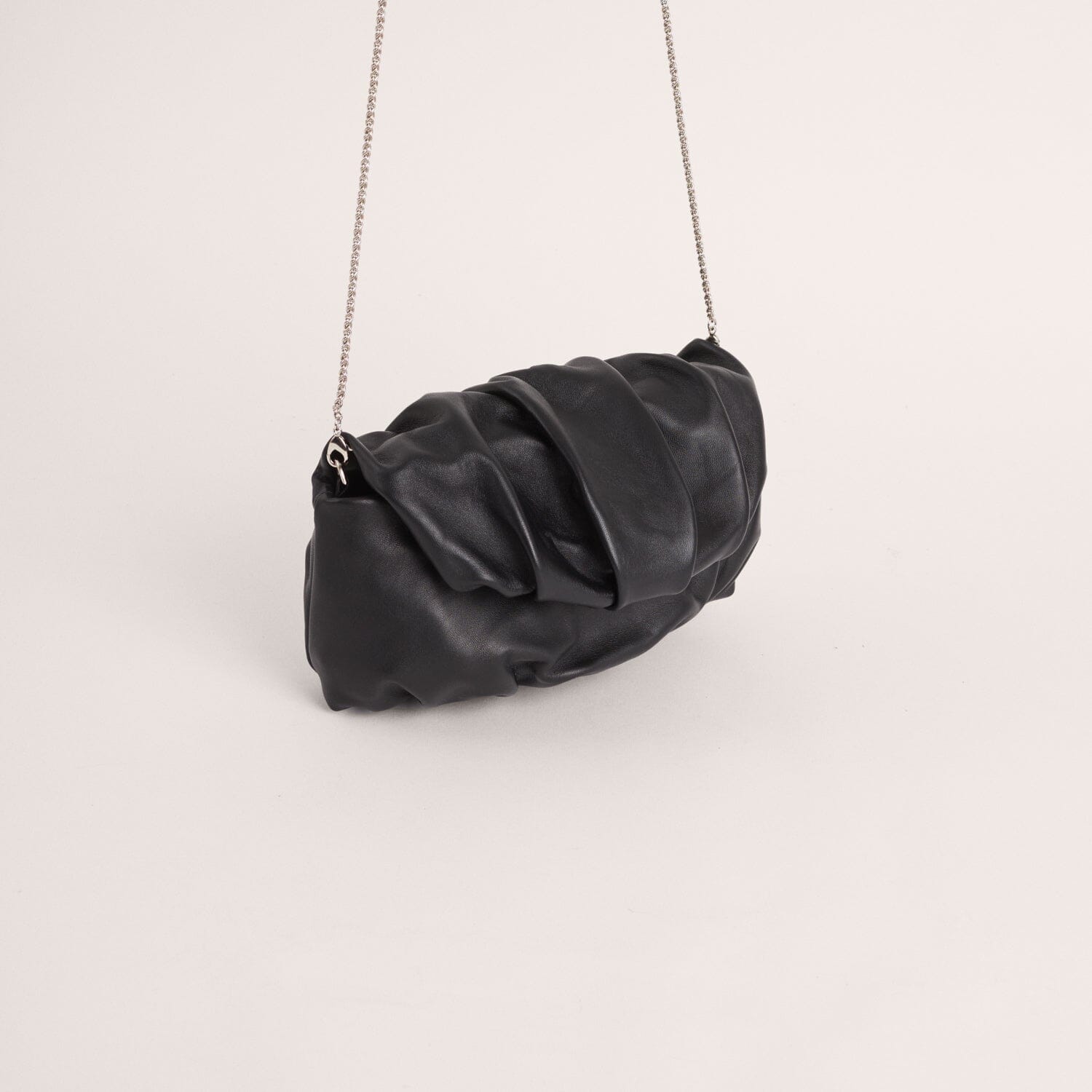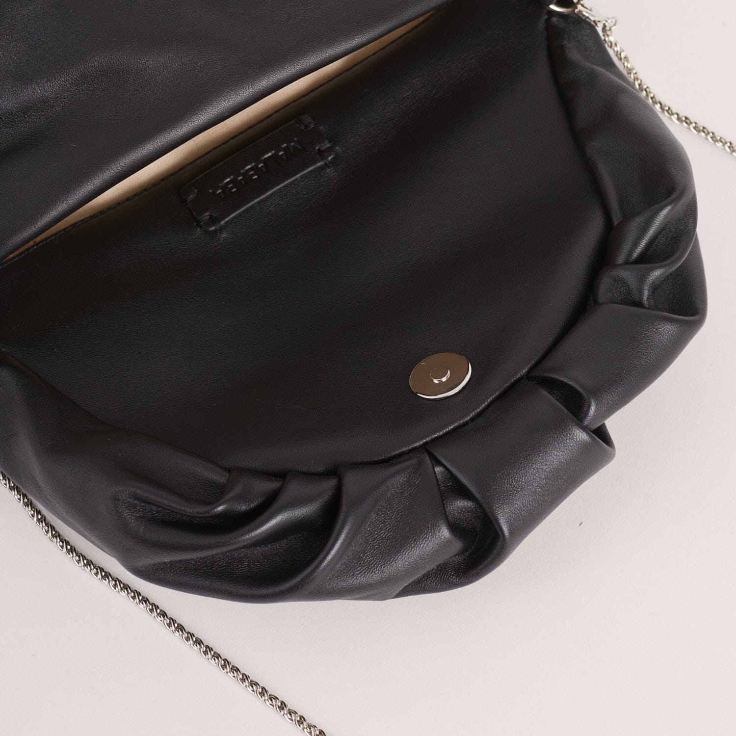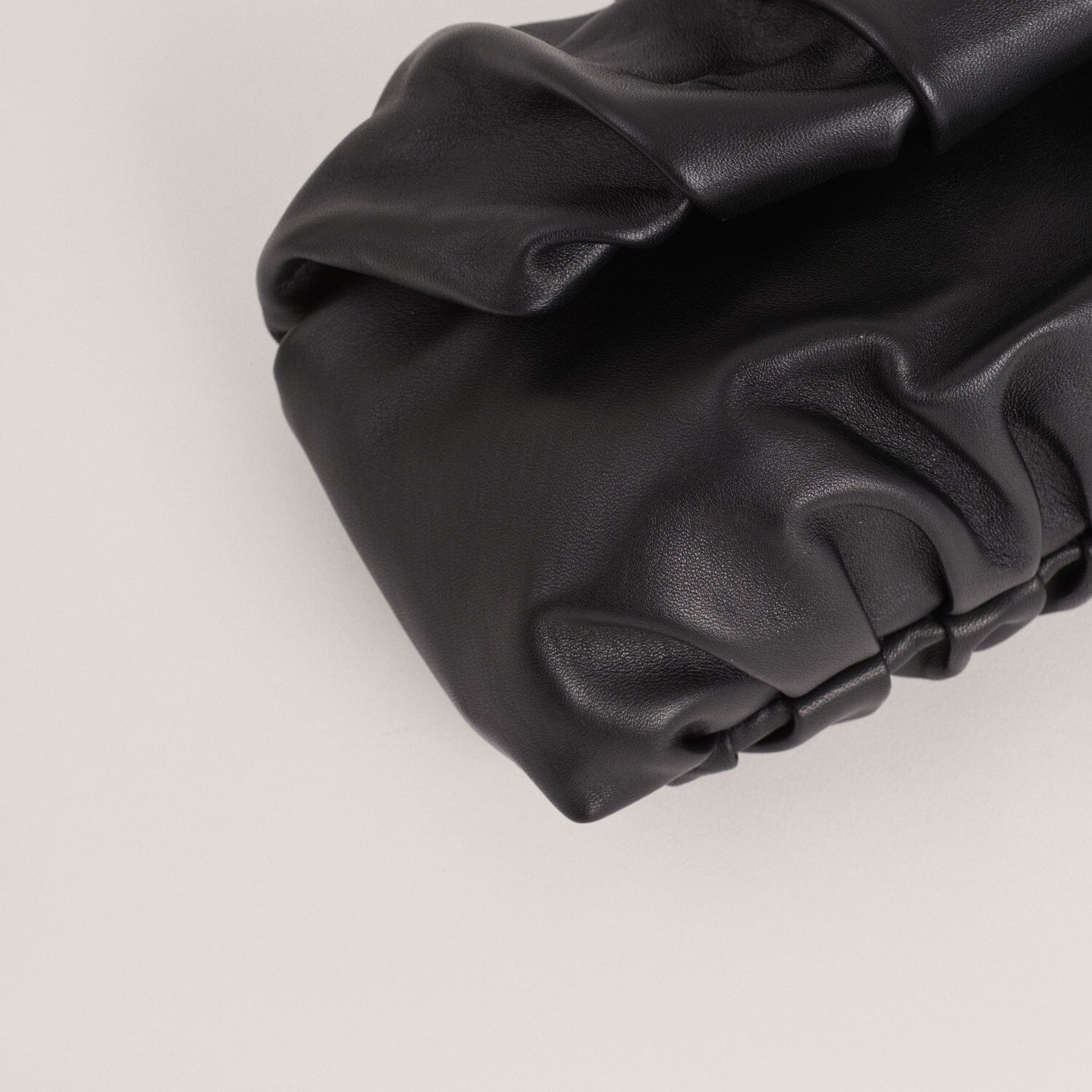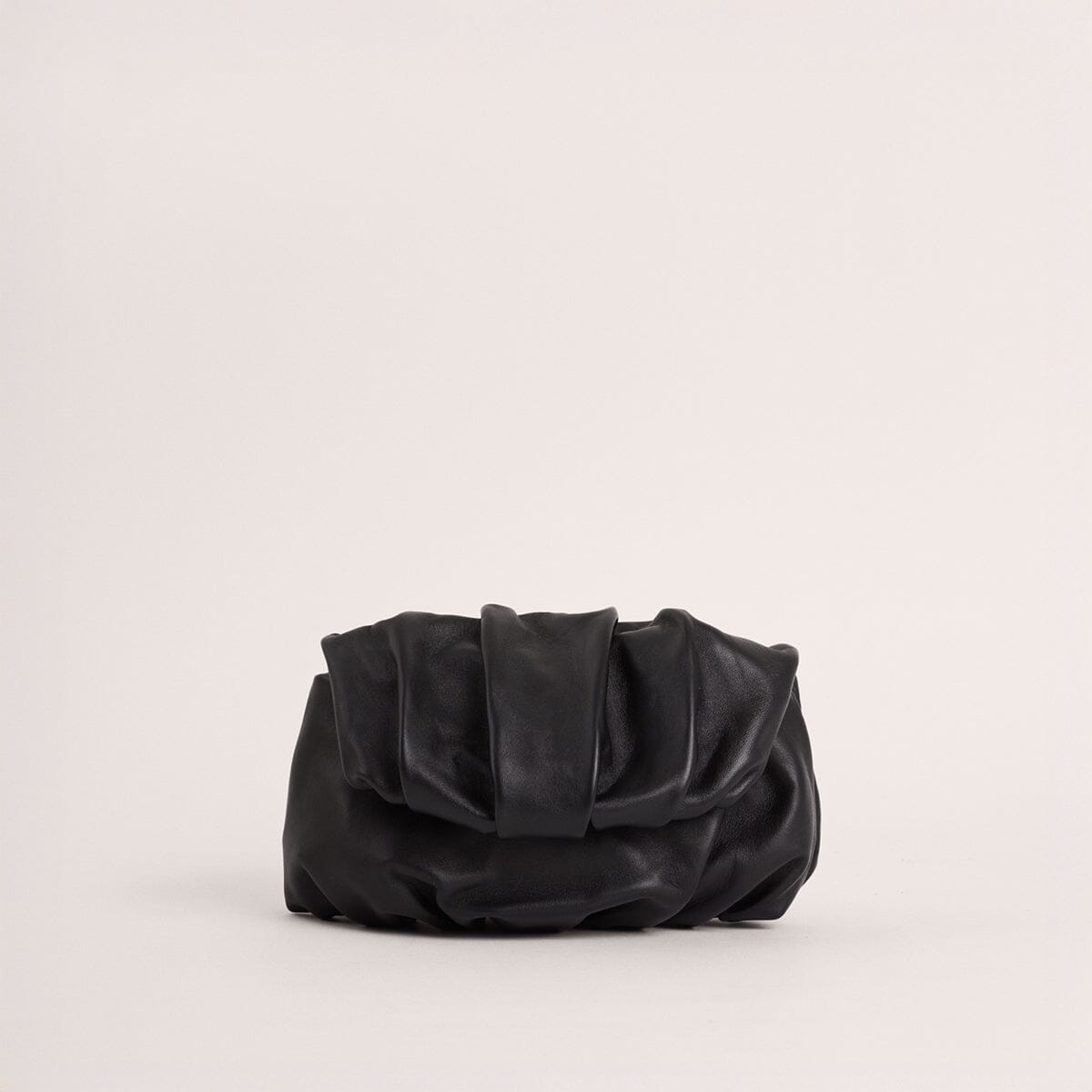 Clutch mediano de estructura fruncida, realizada en napa de cordero extremadamente suave y agradable.