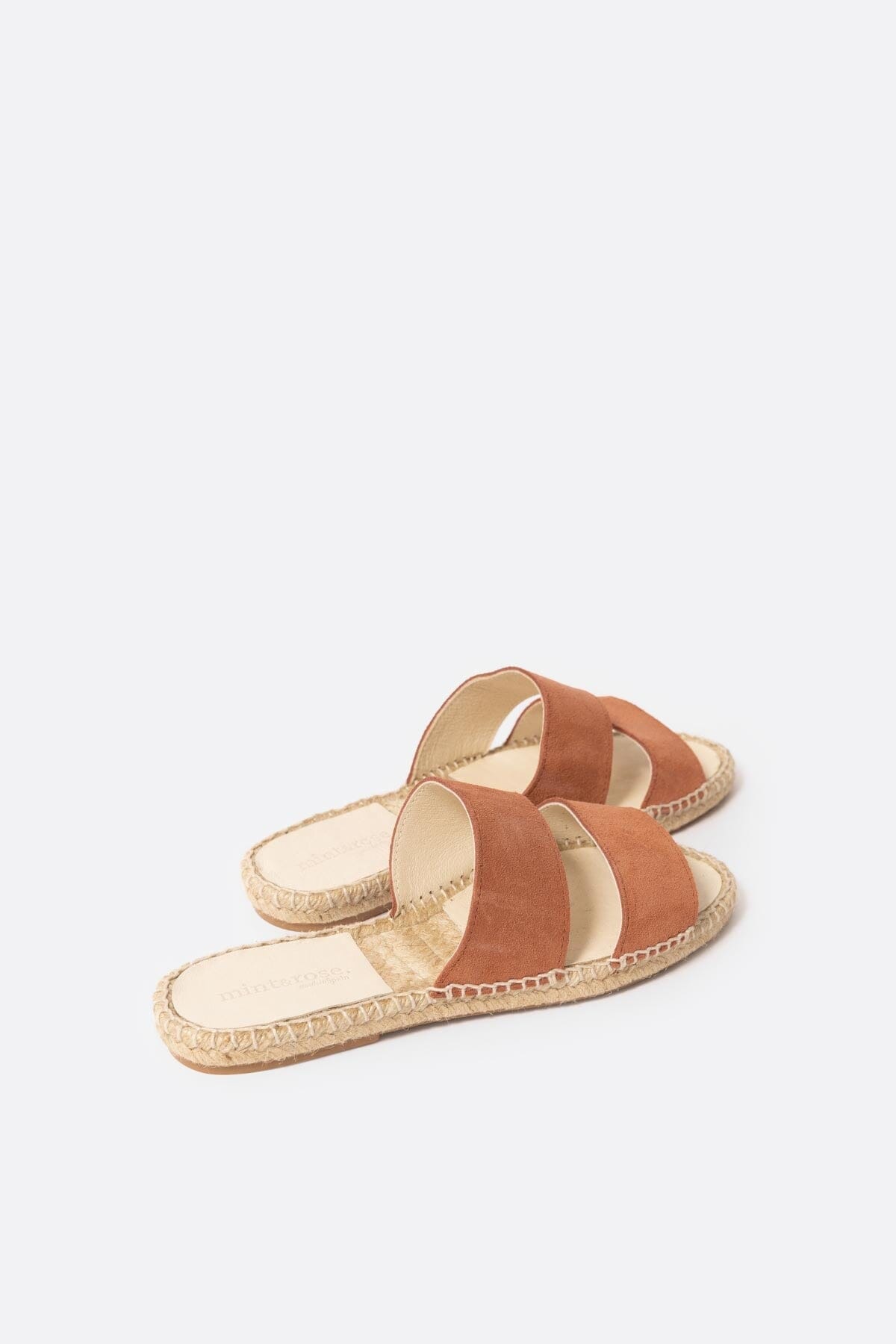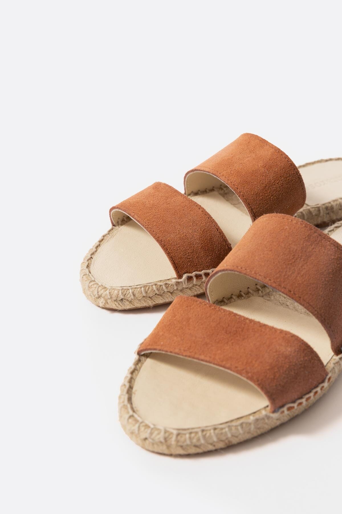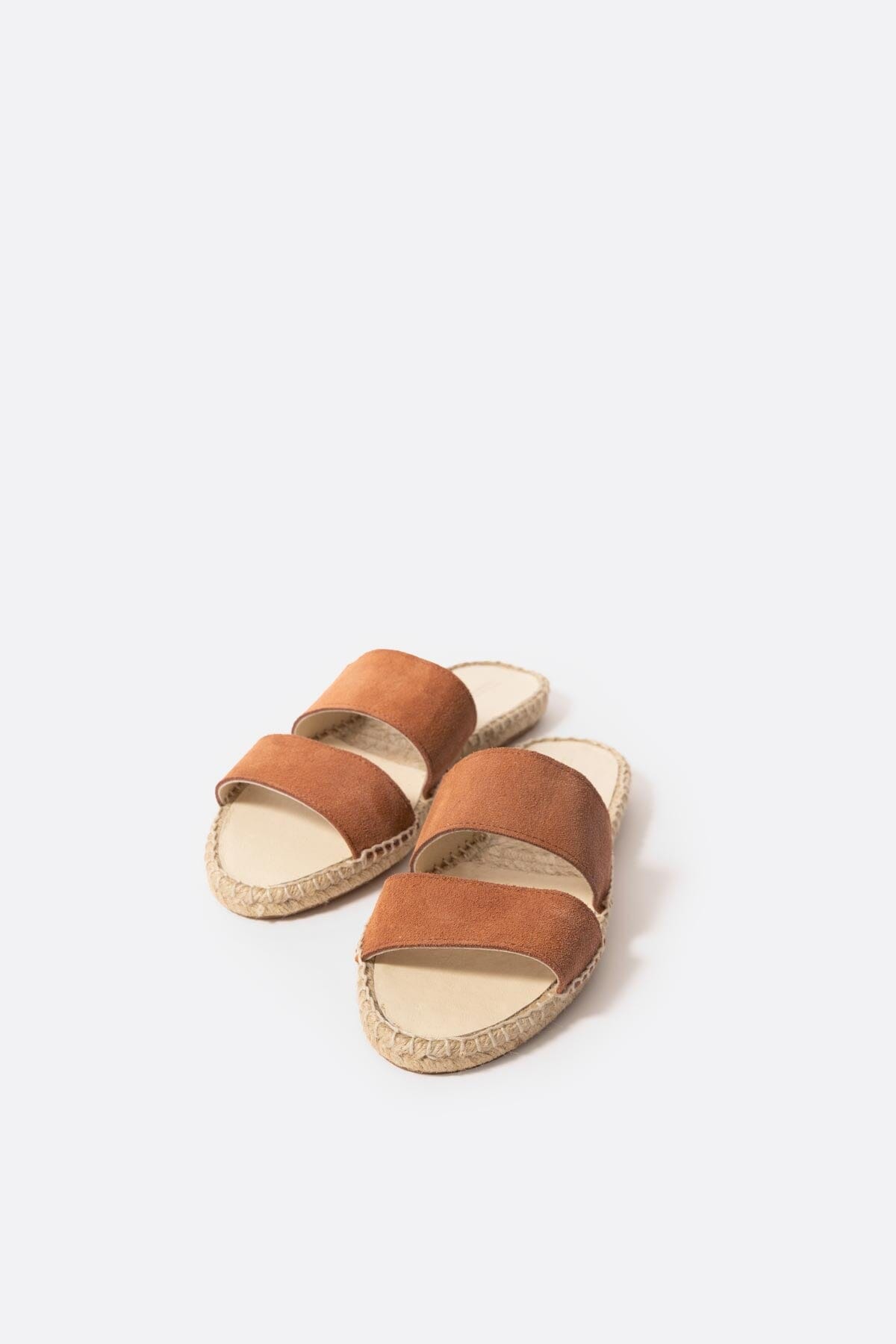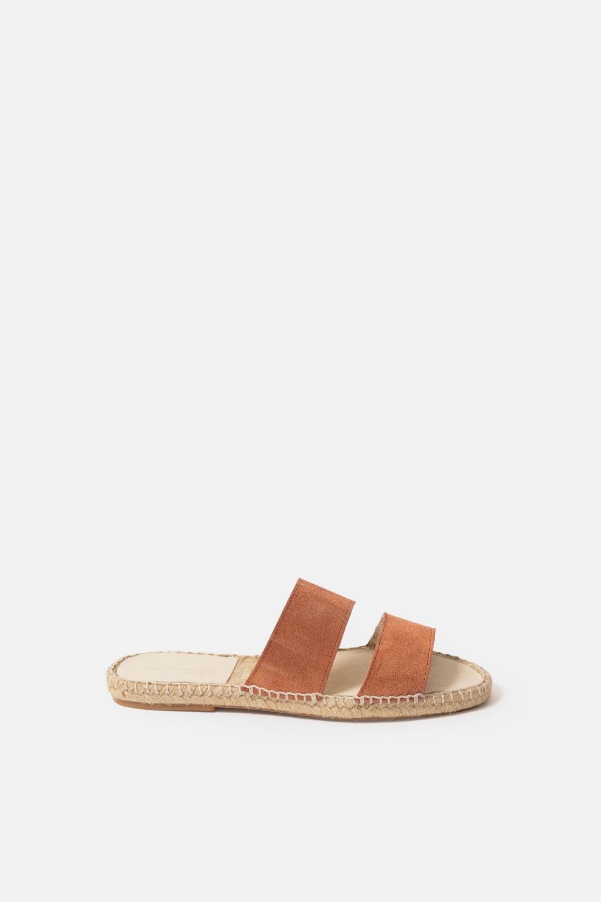 Sus dos tiras forradas envuelven el pie y tienen la puntera completamente abierta. Suela de yute trenzado y caucho de 1,6 cm de altura.