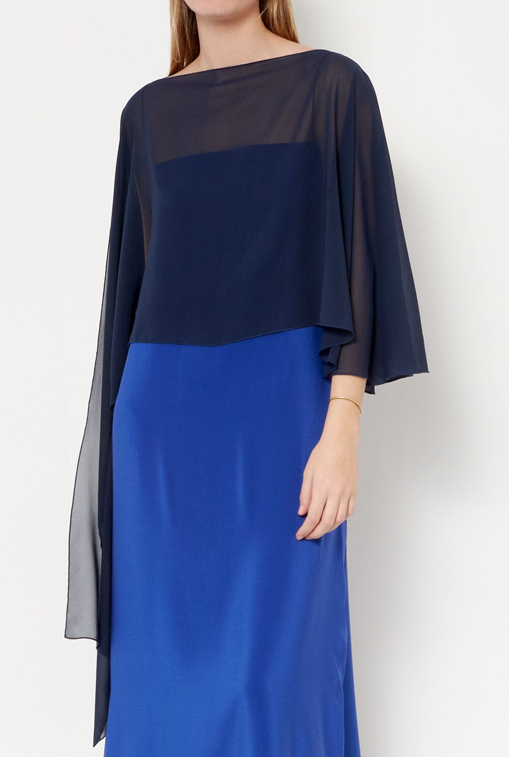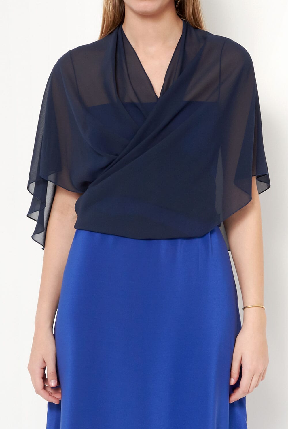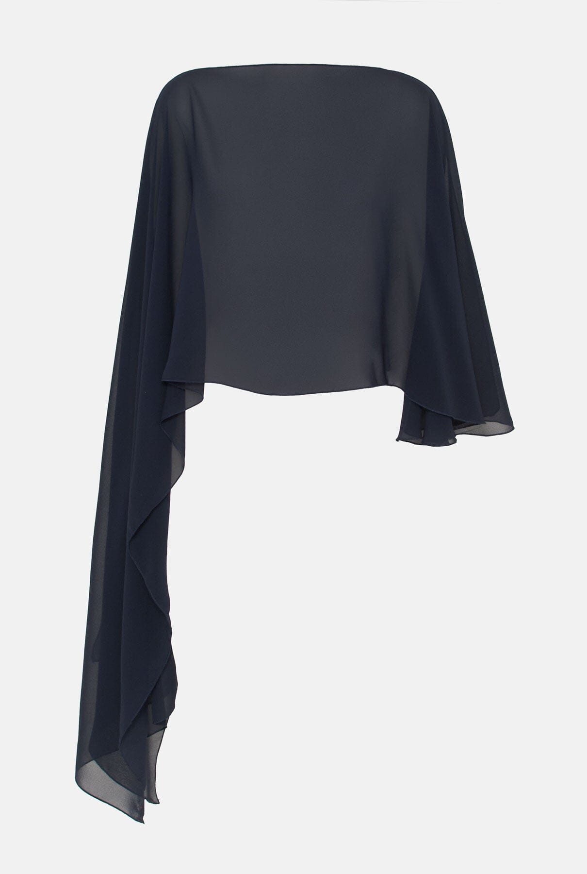 La «Olga» es una capa de crepé 100% seda. Su diseño asimétrico permite anudarla en cualquier parte del cuerpo y utilizarla de muchas formas diferentes.