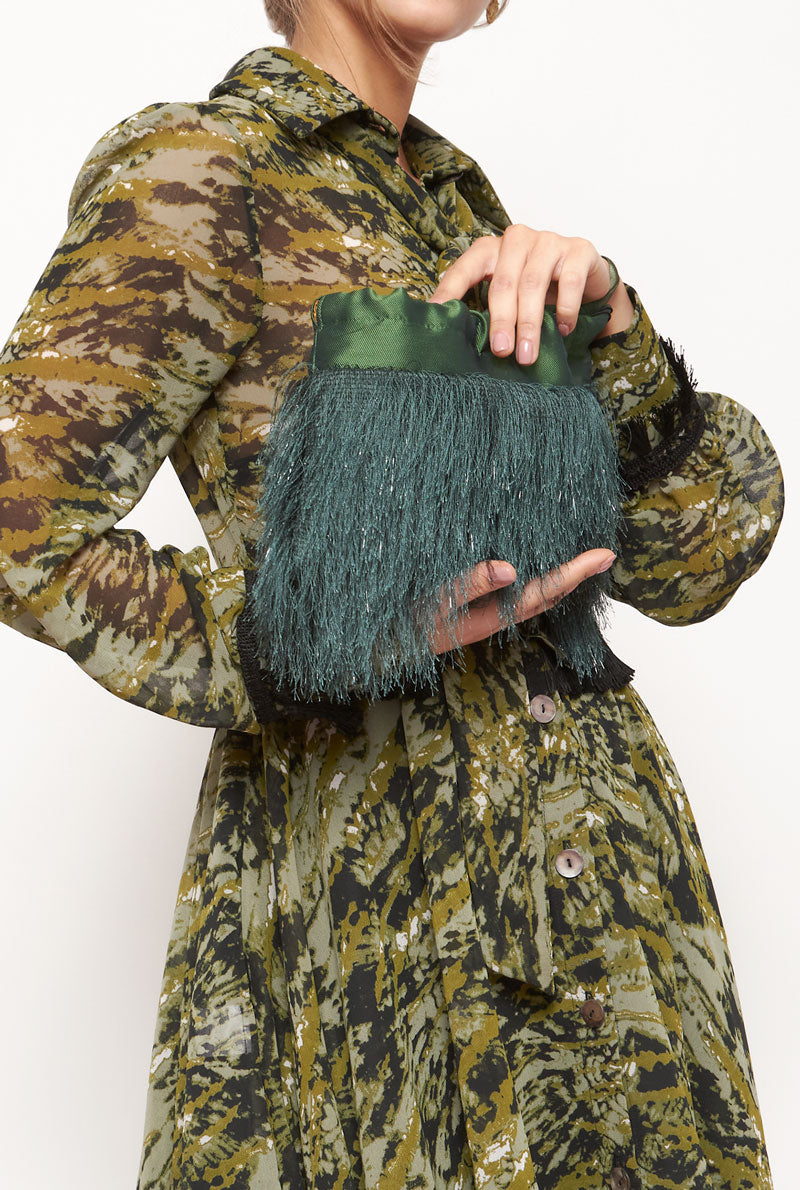Esta tela de flecos utilizada en este estilo particular proviene de la icónica tienda de Barcelona Gratacós. Hay una producción limitada de 20 unidades por estilo y cada artículo está cuidadosamente ensamblado por manos de expertos experimentados.