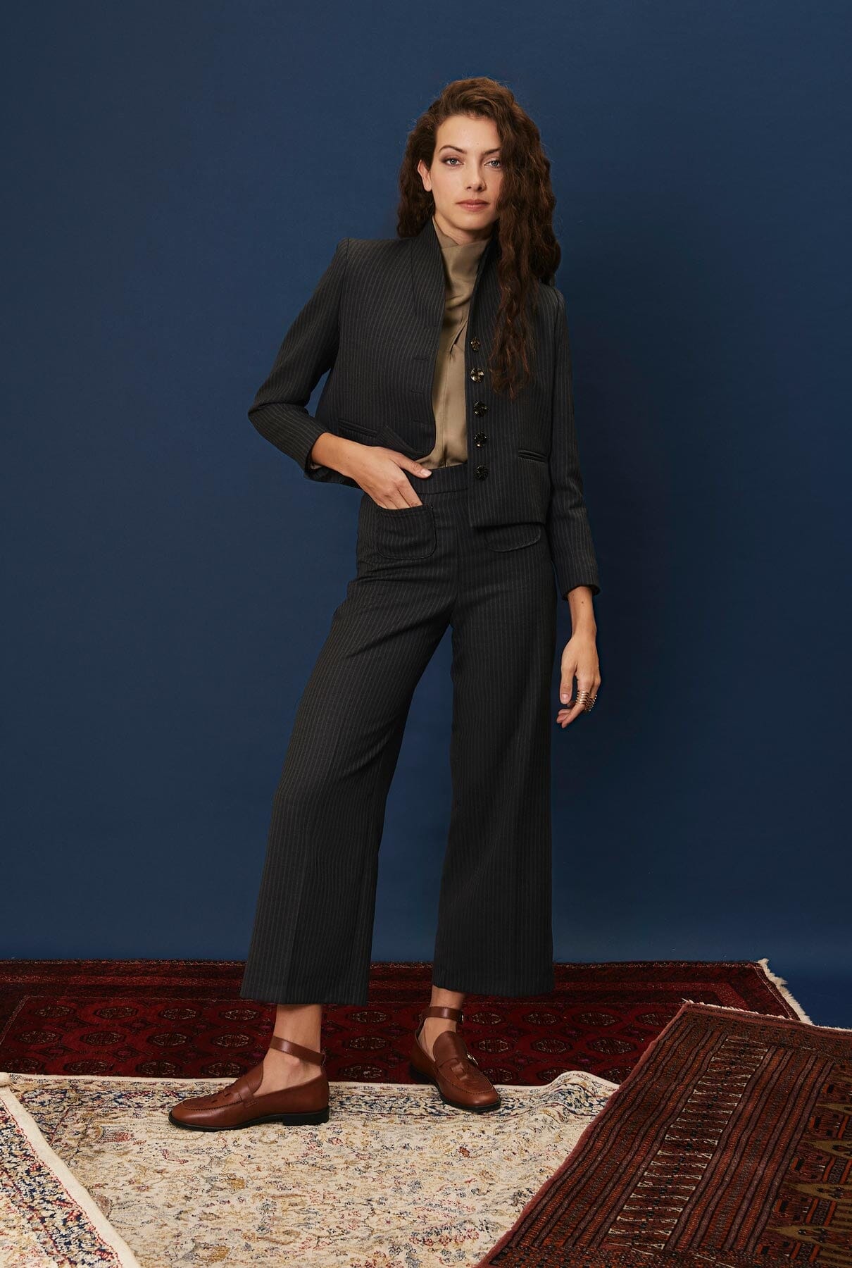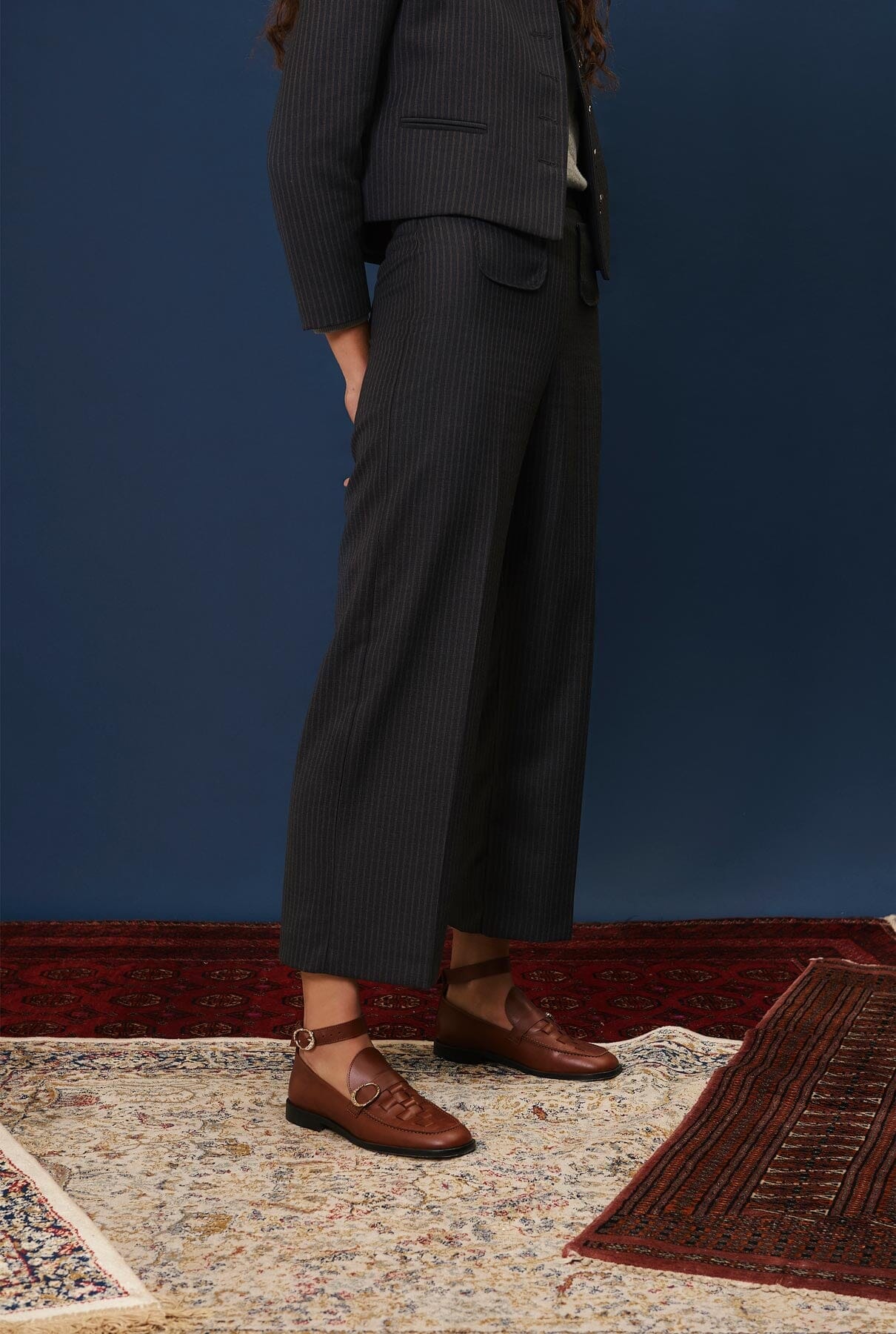 Pantalón ancho con raya y bolsillo de plastrón.