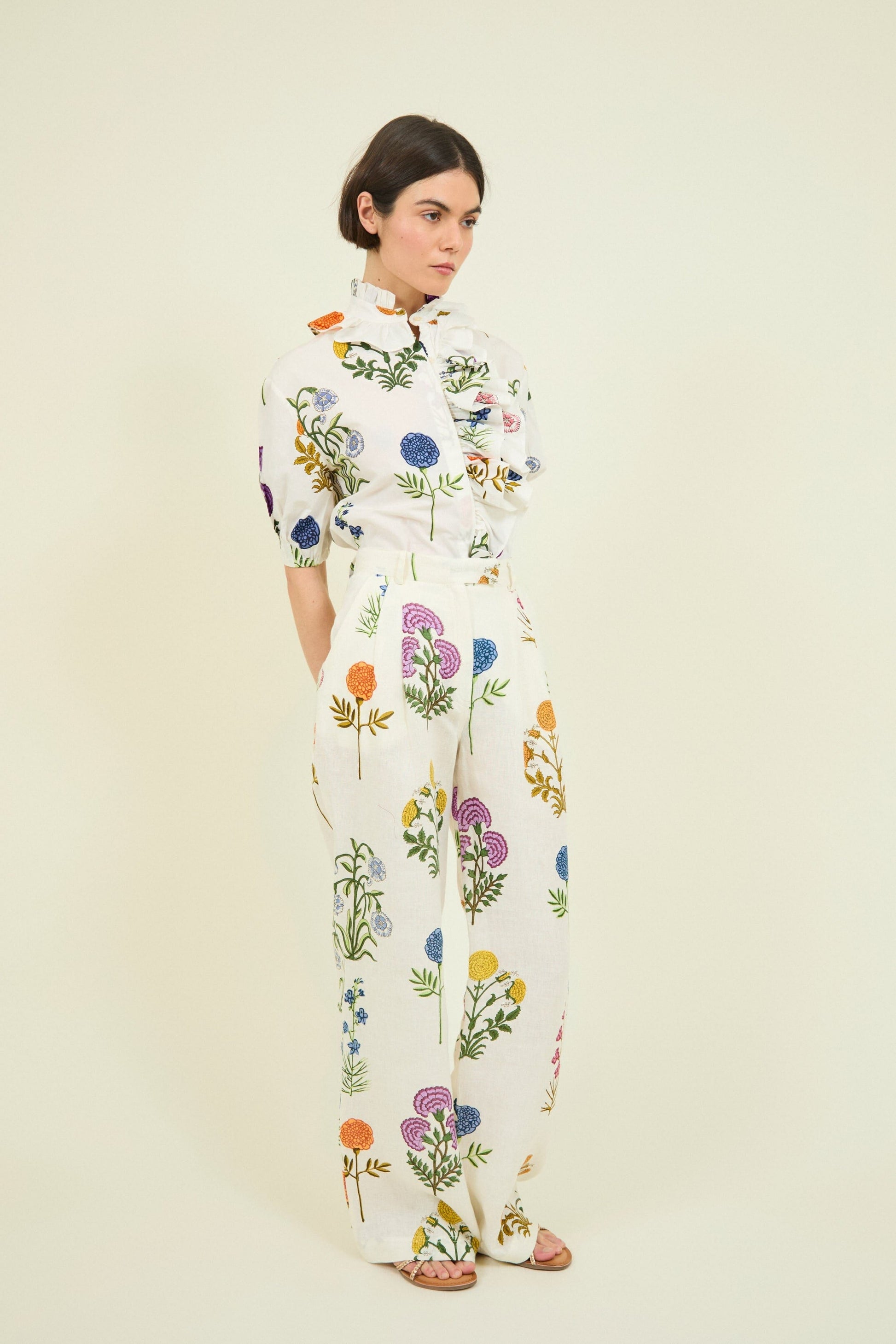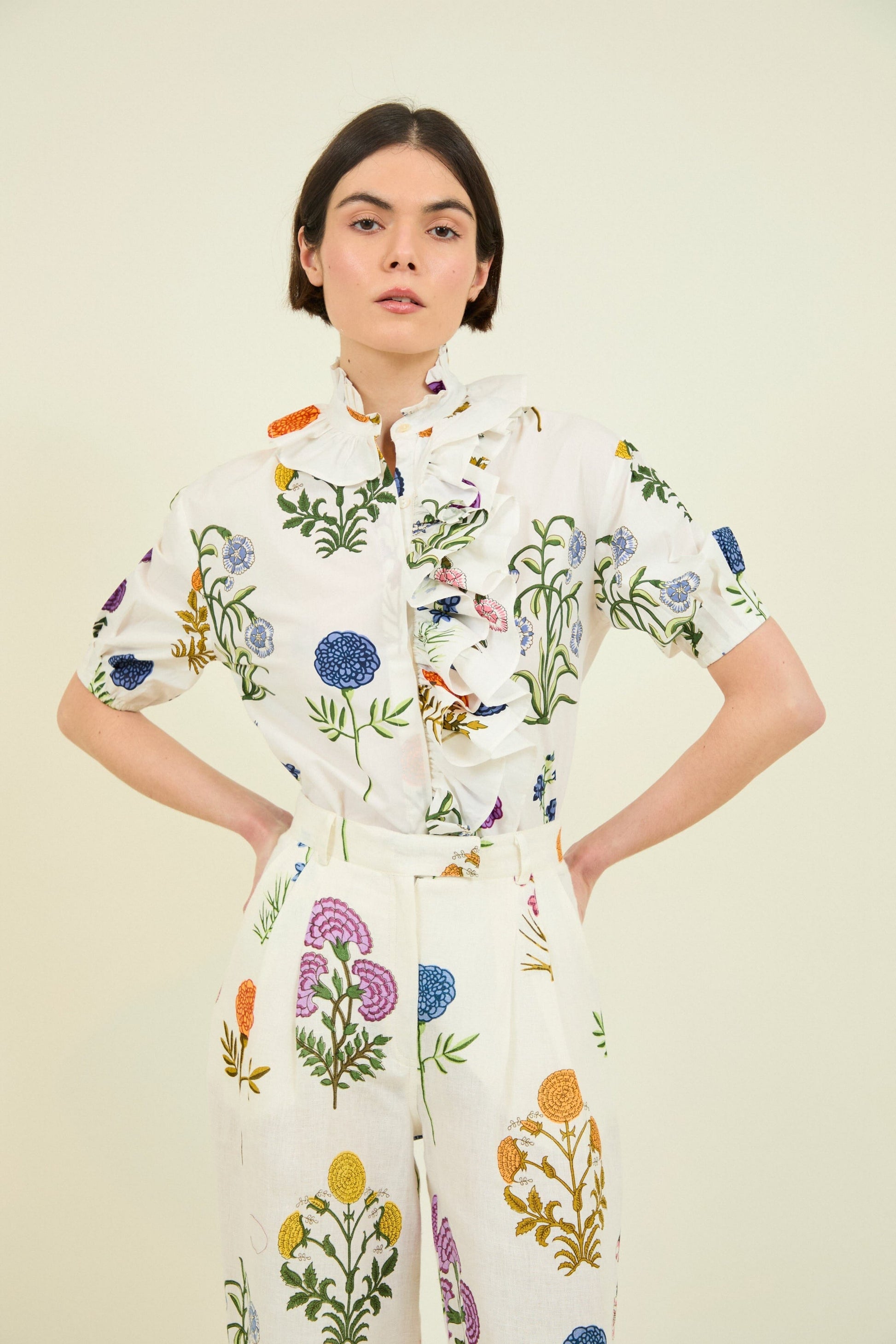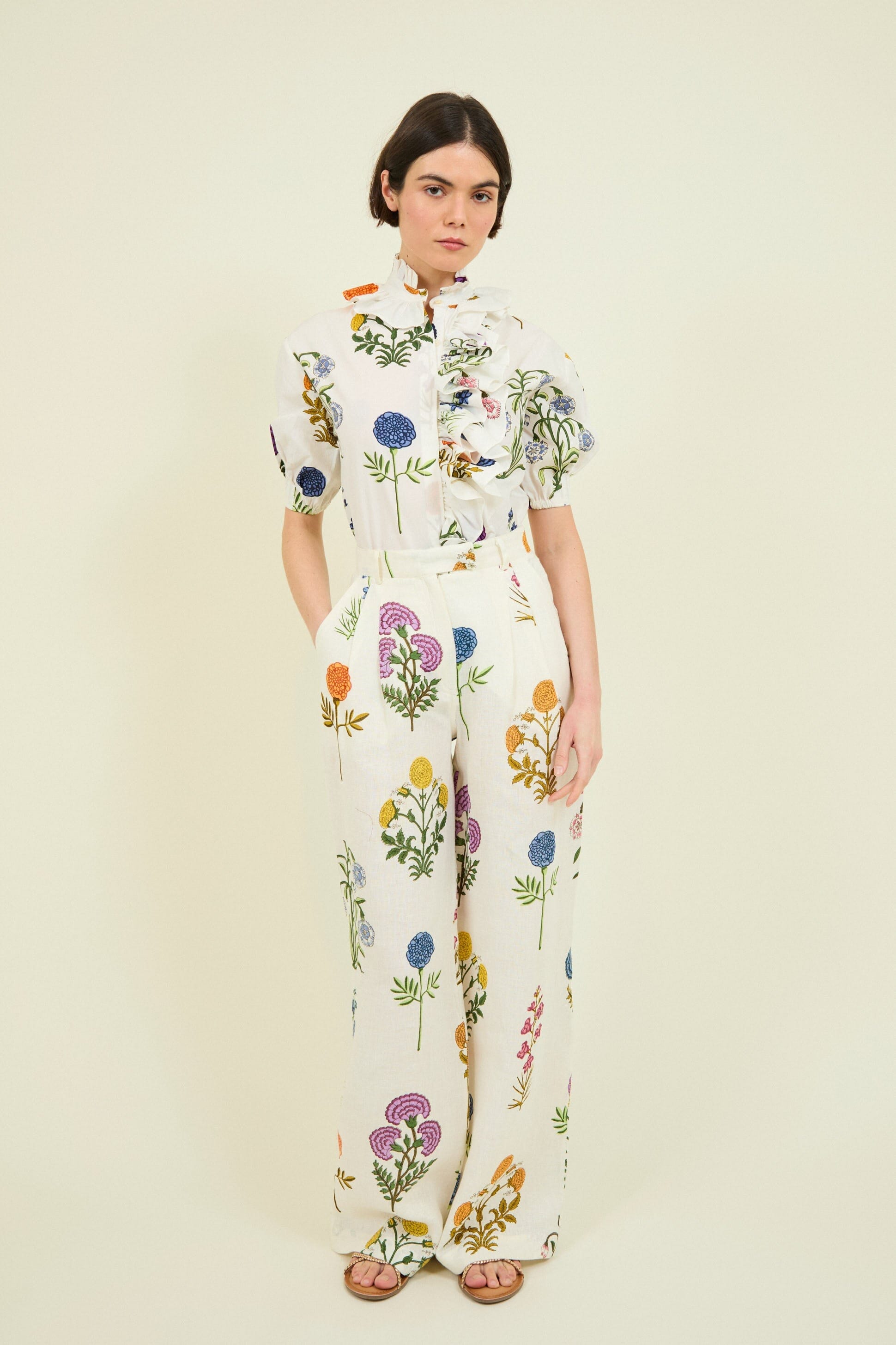 You can combine these trousers with the Aria shirt, part of the set.