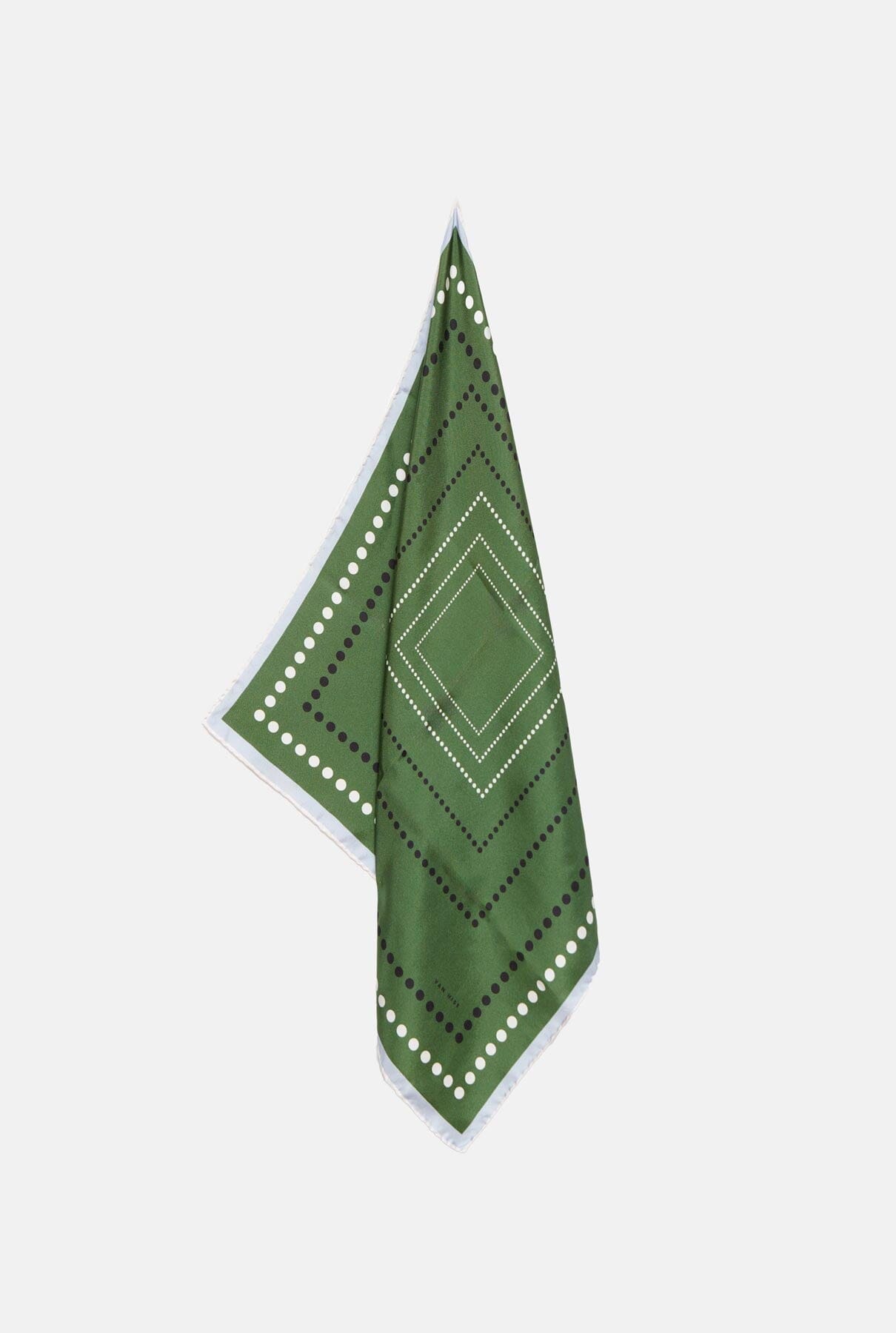 Bufanda de seda de alta calidad. Forma cuadrada y estampado de lunares.