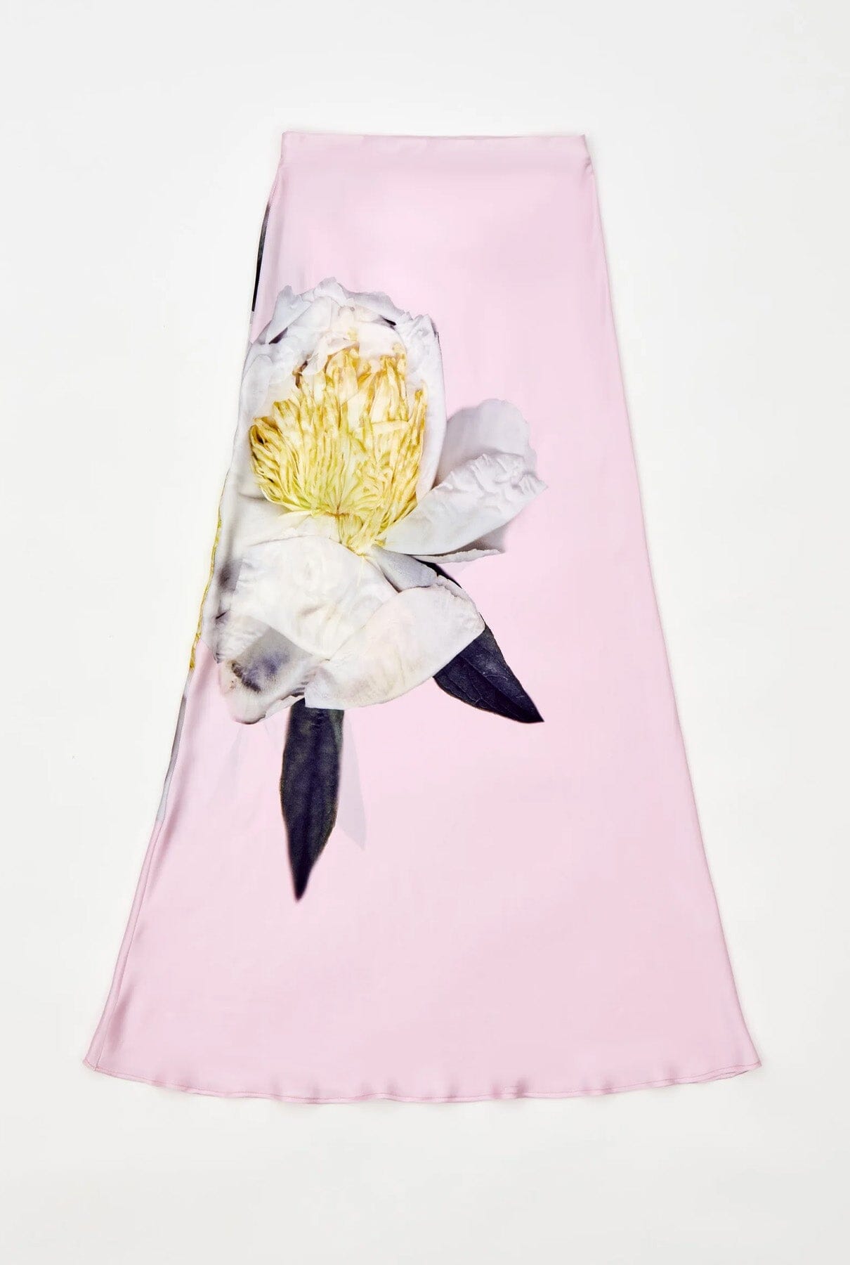 FALDA LENCERIA CORTE AL BIES, LARGA, CON CINTURA ELÁSTICA INTERIOR, ESTAMPADO DE PEONÍAS POSICIONALES.