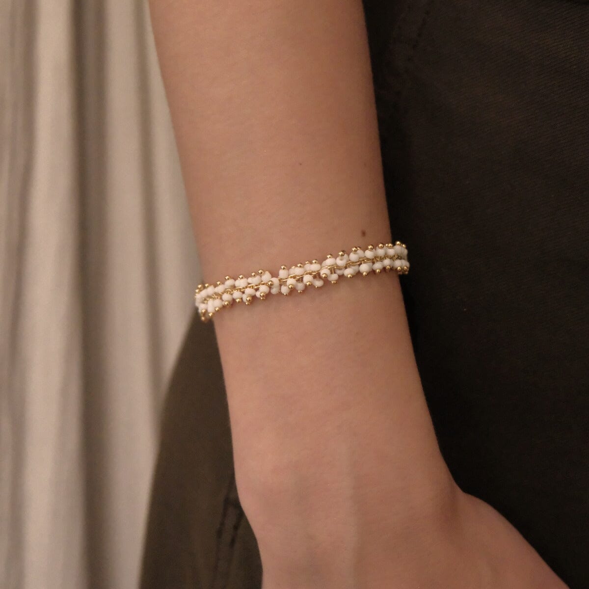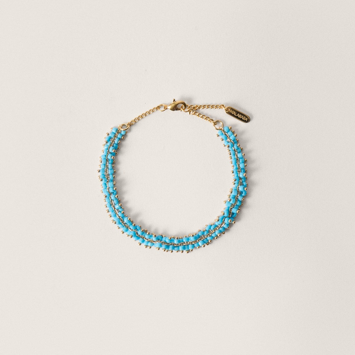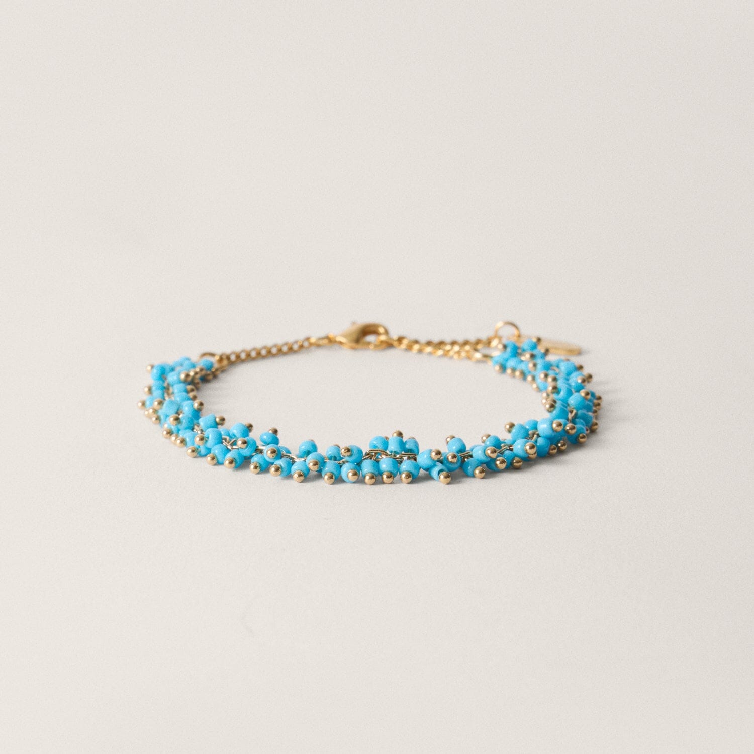 Pulsera sencilla con cadena de cuentas de colores, muy ligera, realizada en latón y bañada en oro de 18kt de 3 micras.