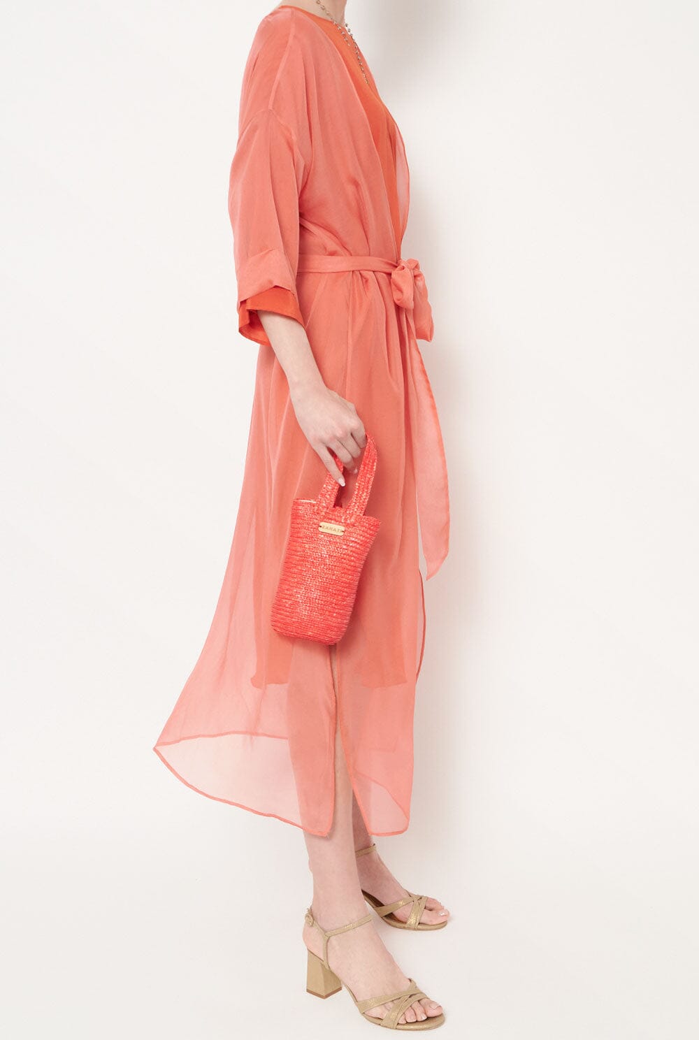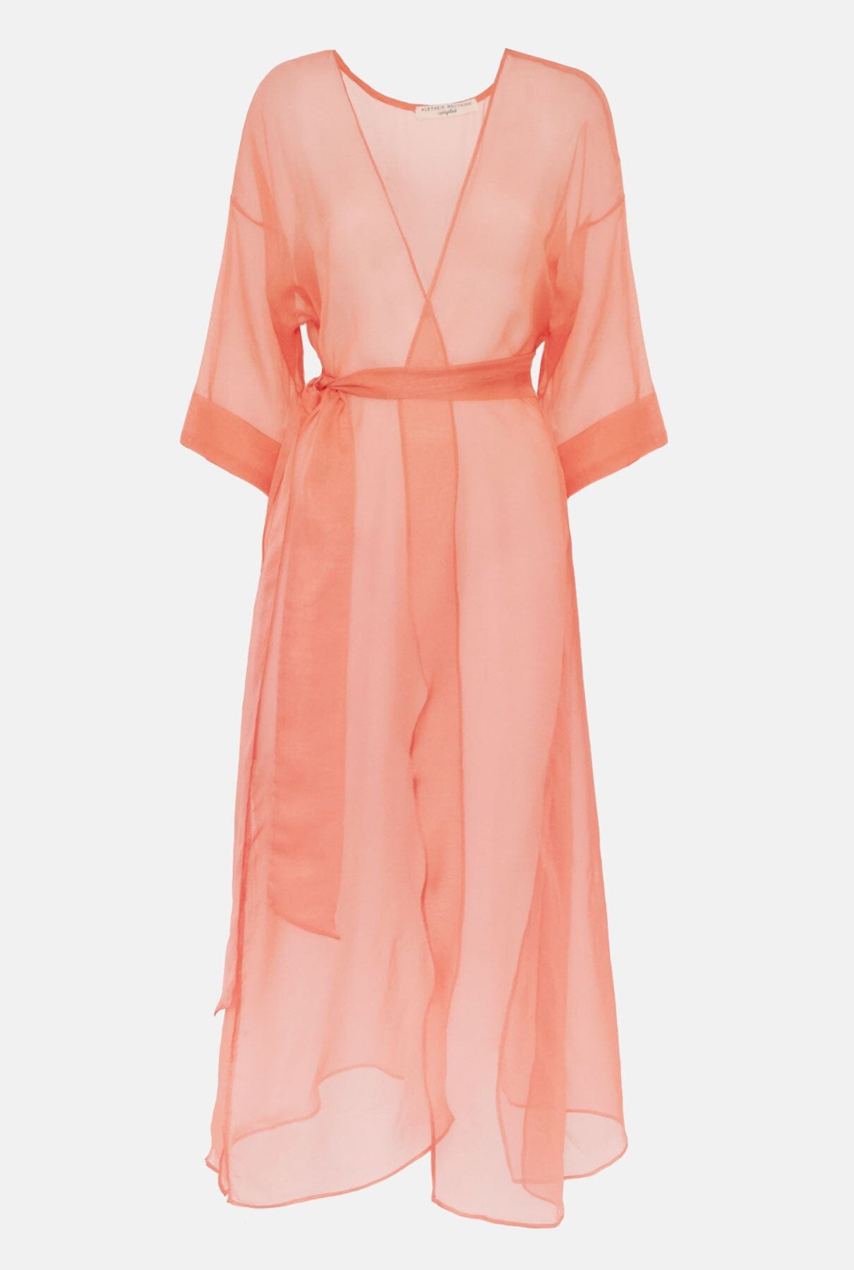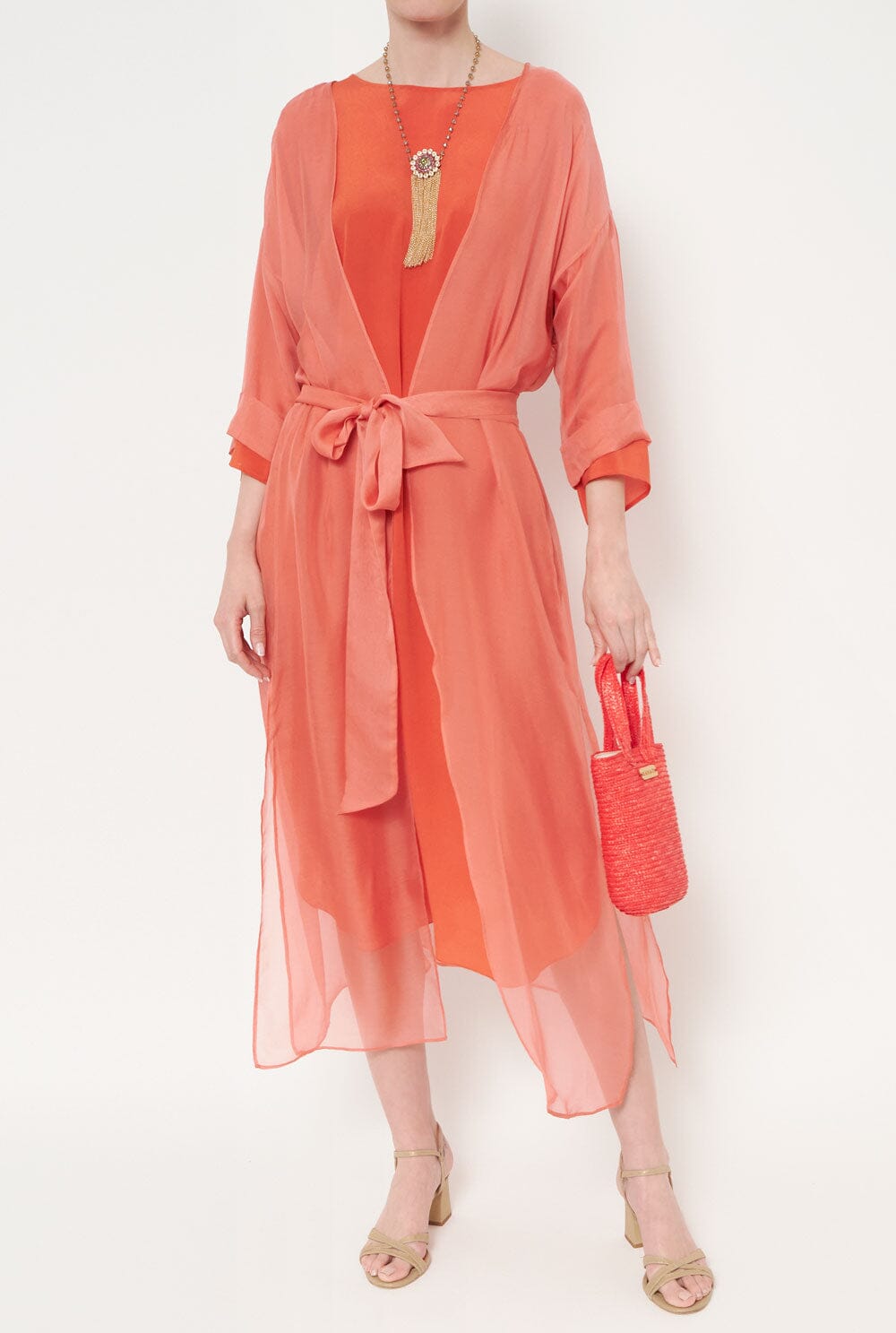 Versátil abrigo de gasa 100% seda con cinturón a juego. Diseñado por Atelier Aletehia.