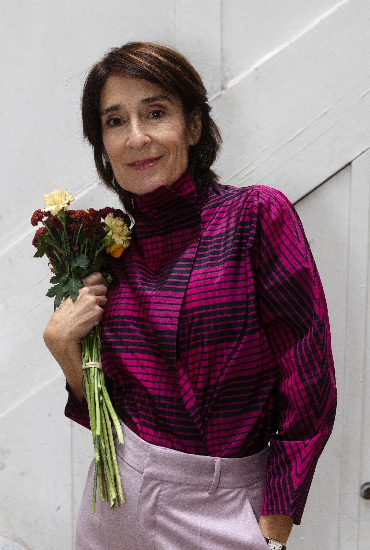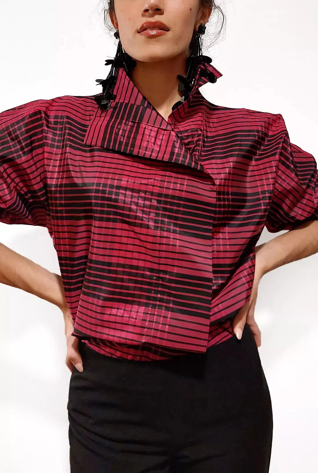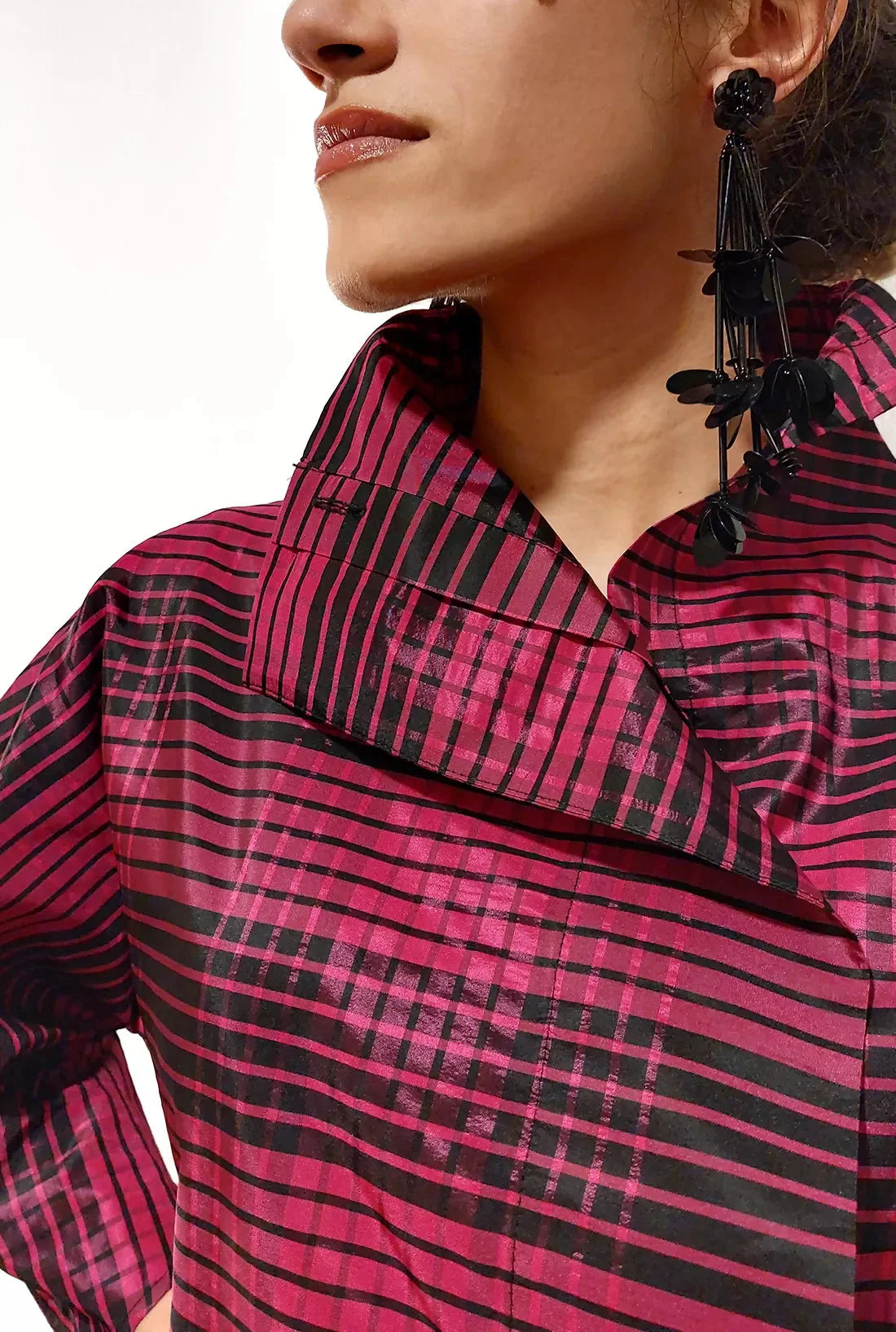 Camisa estampada de cuadros negros y fucsia. Cierre lateral, cuello chimenea y manga japonesa. Botonadura oculta. EDICIÓN LIMITADA.