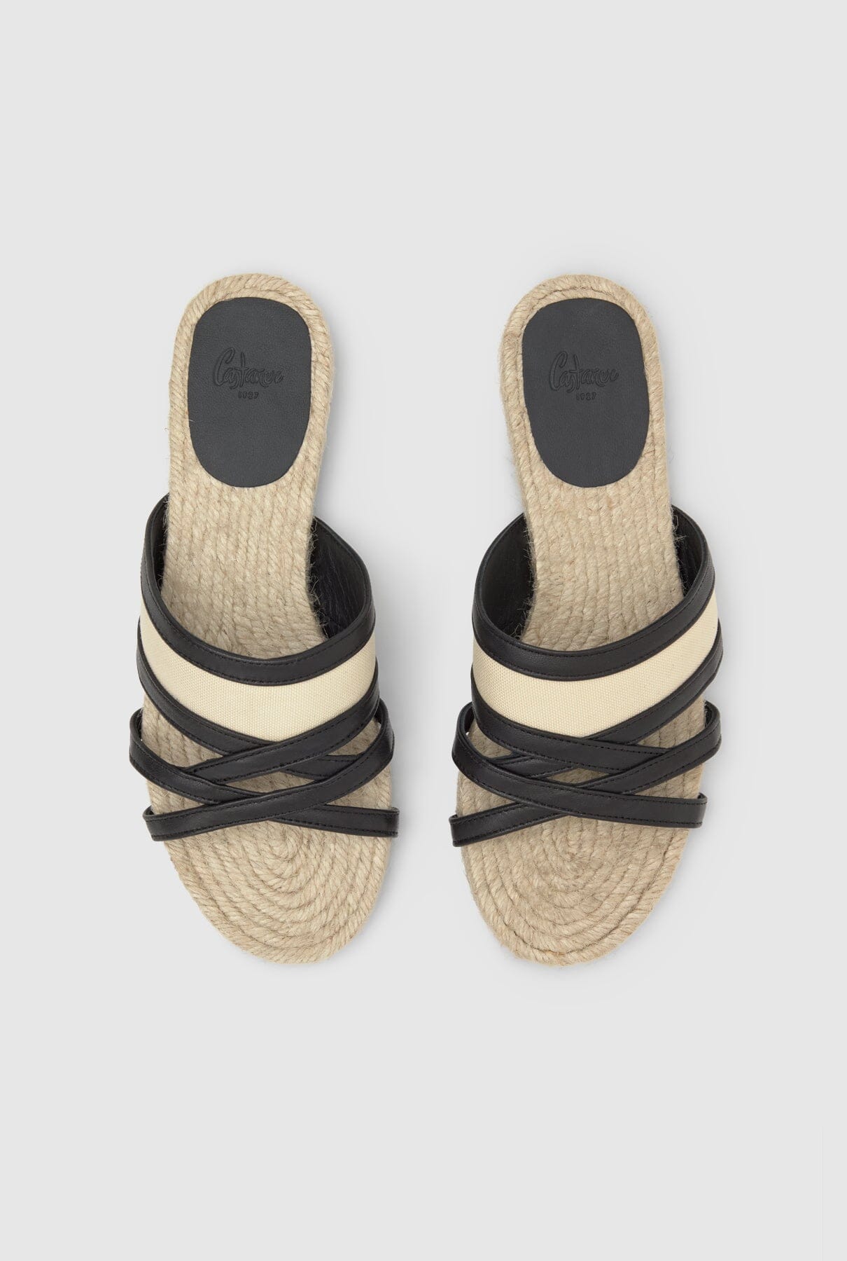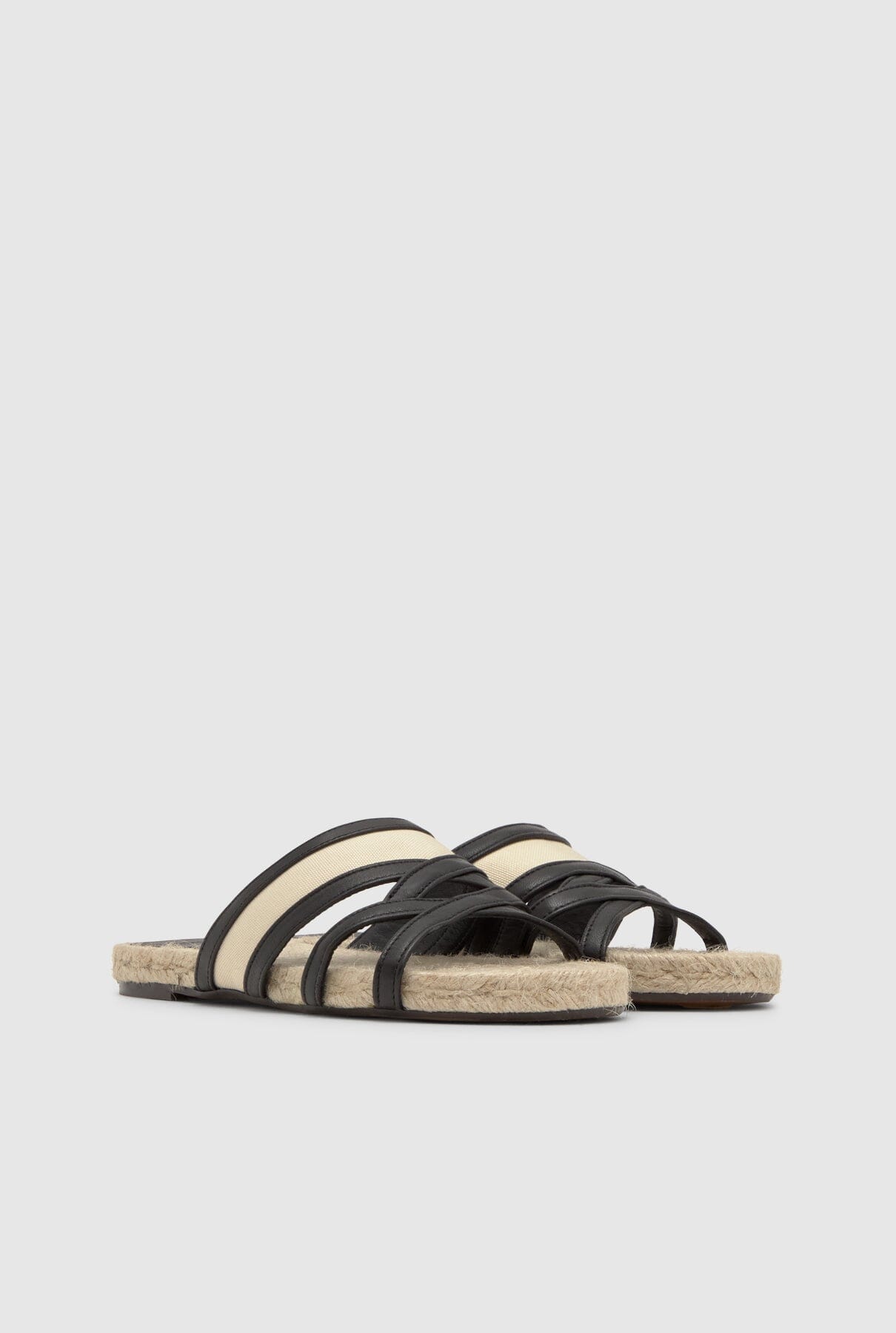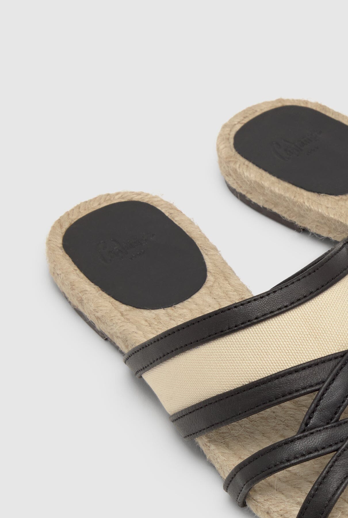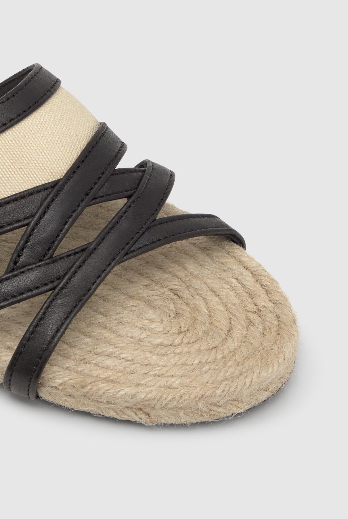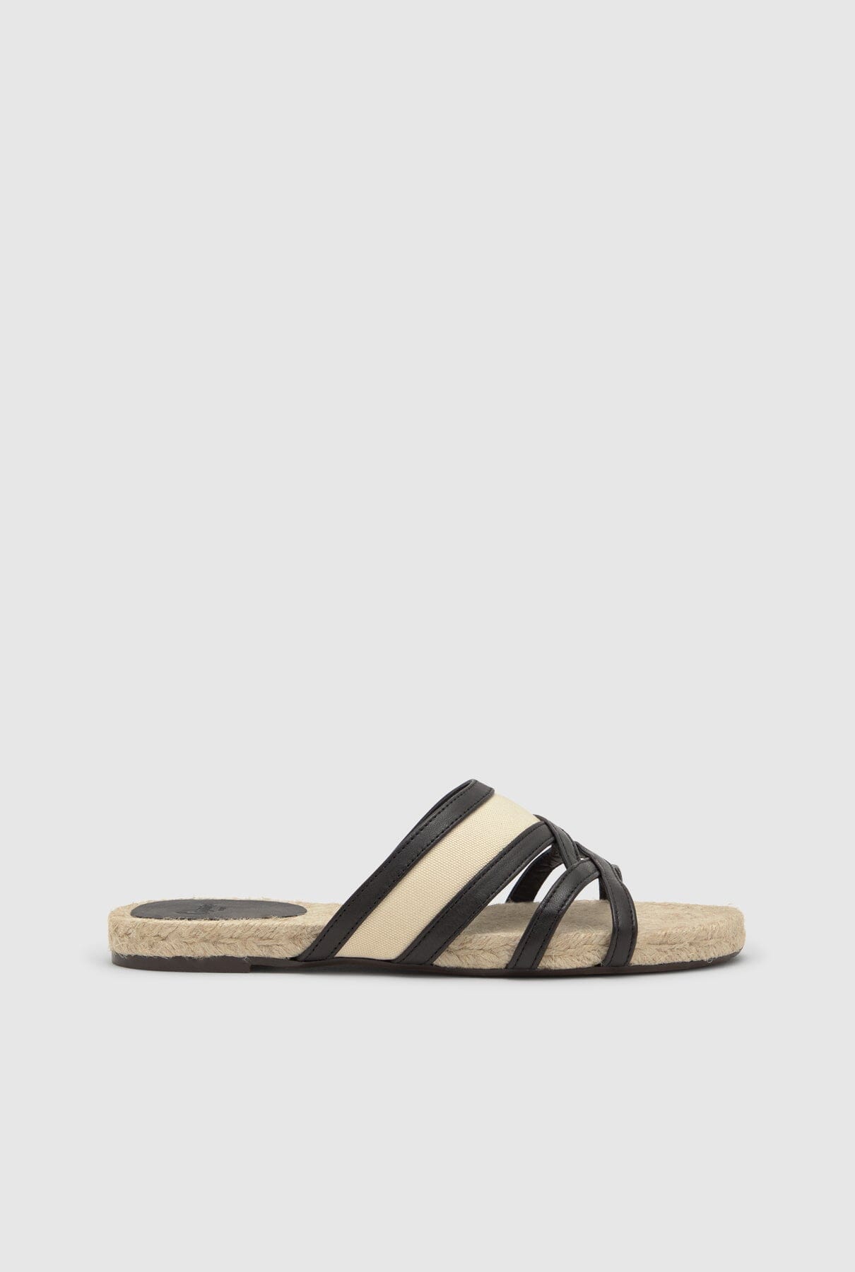 Sandalia plana slip-on Pires en piel napa combinada con algodón orgánico y suela de yute con suela de piel.