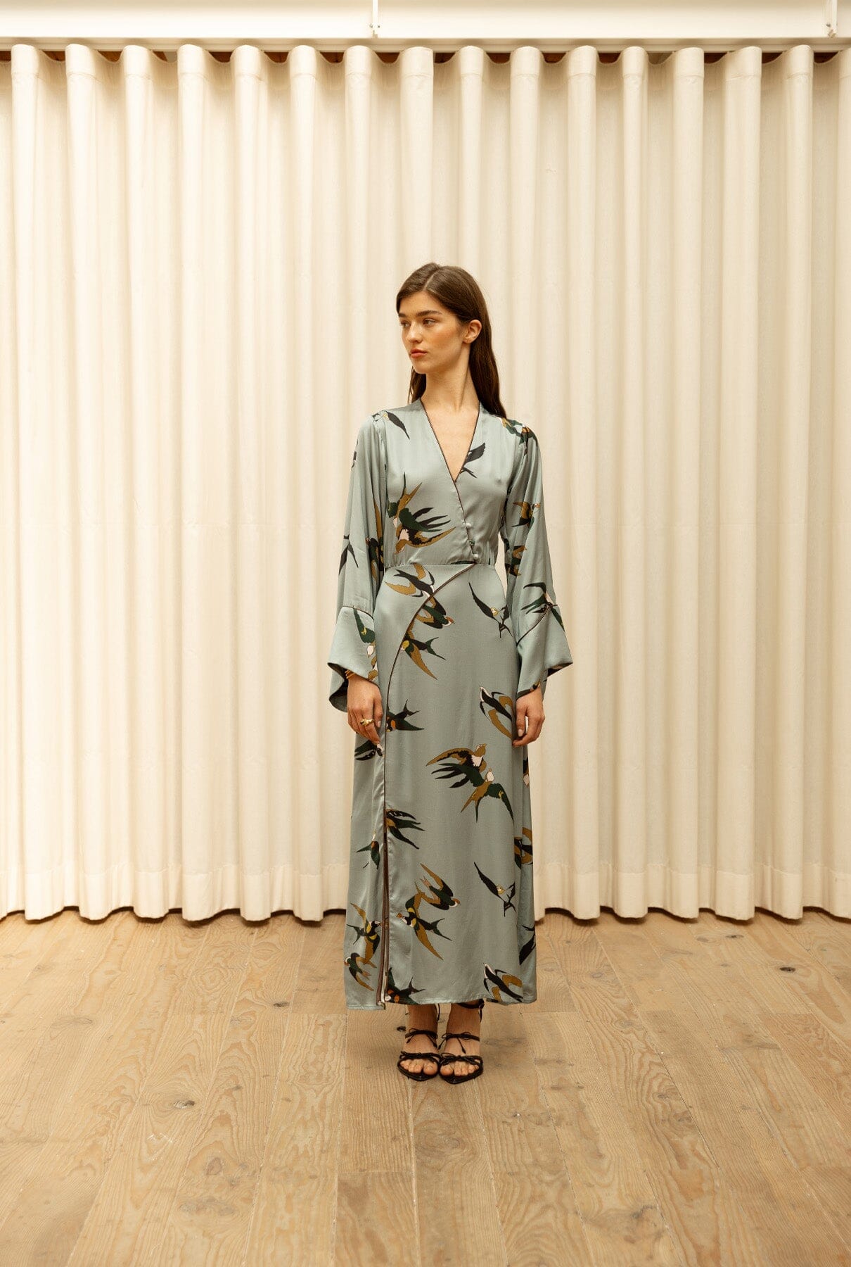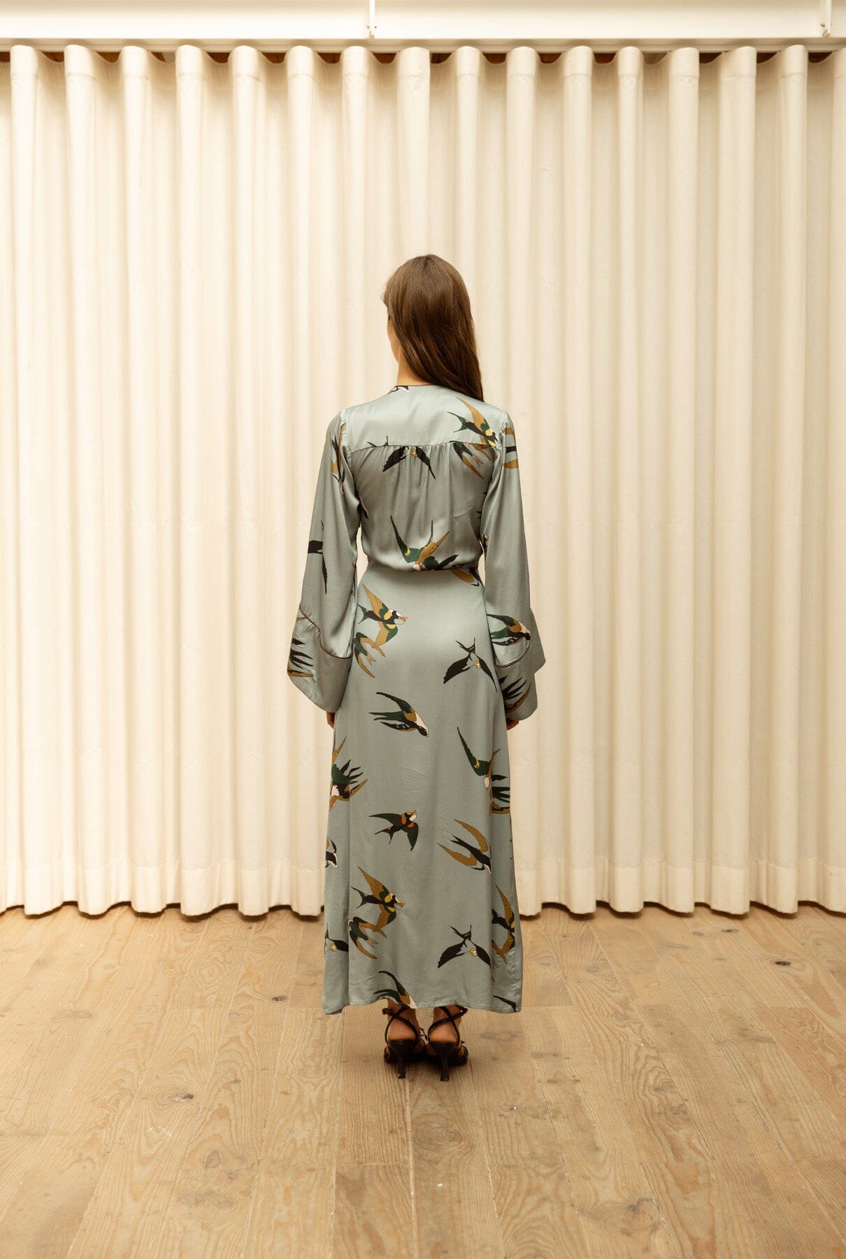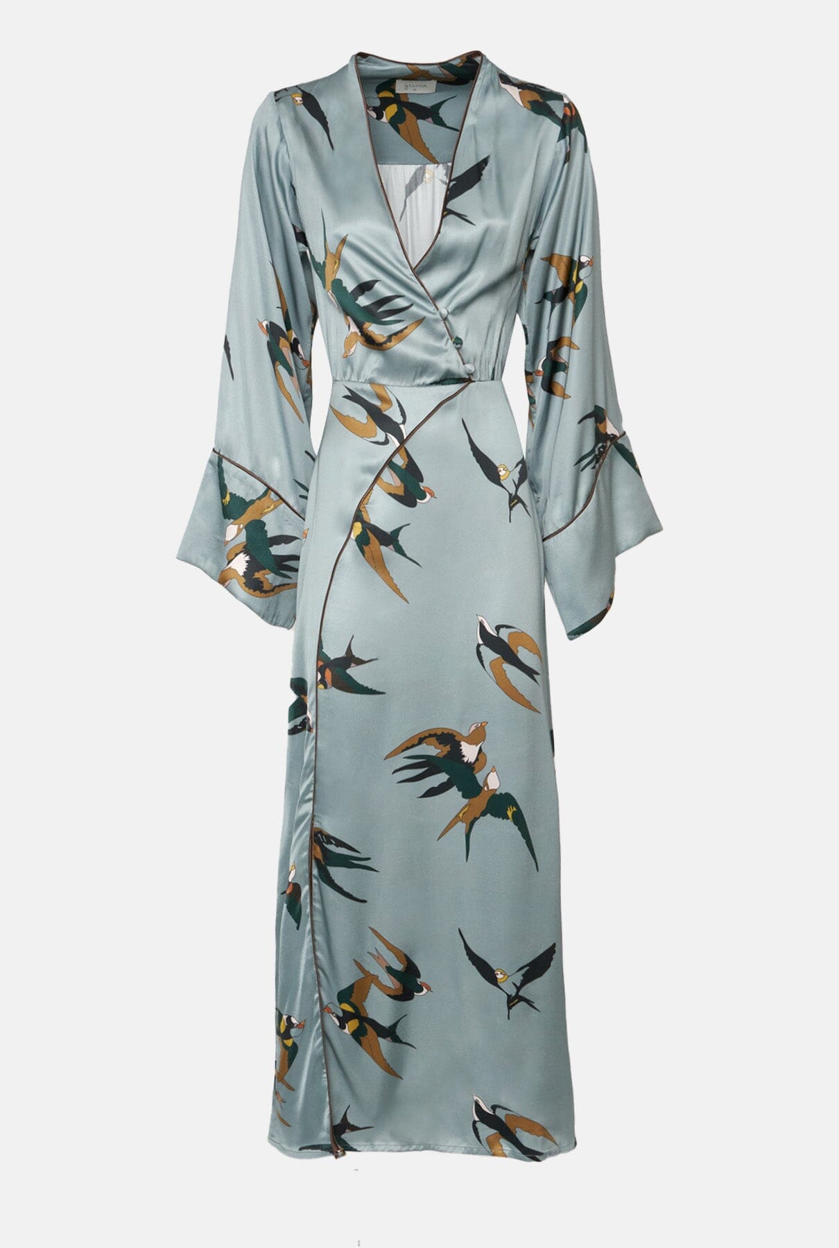 Vestido Cassatti satén pájaro azul-gris