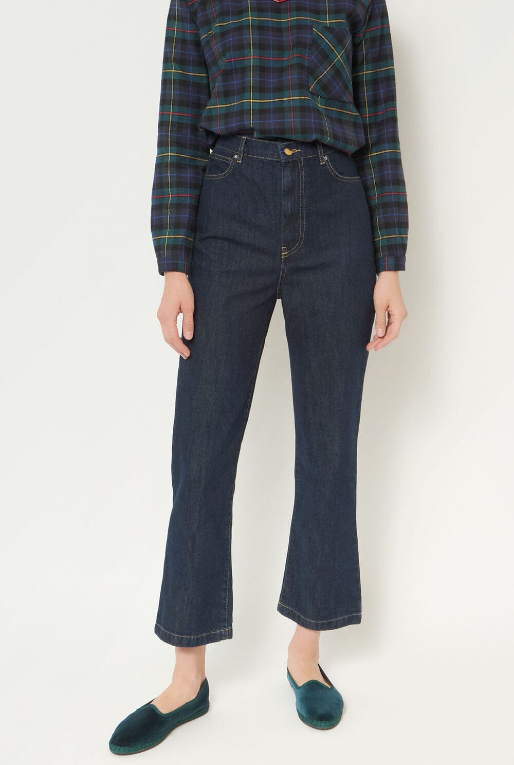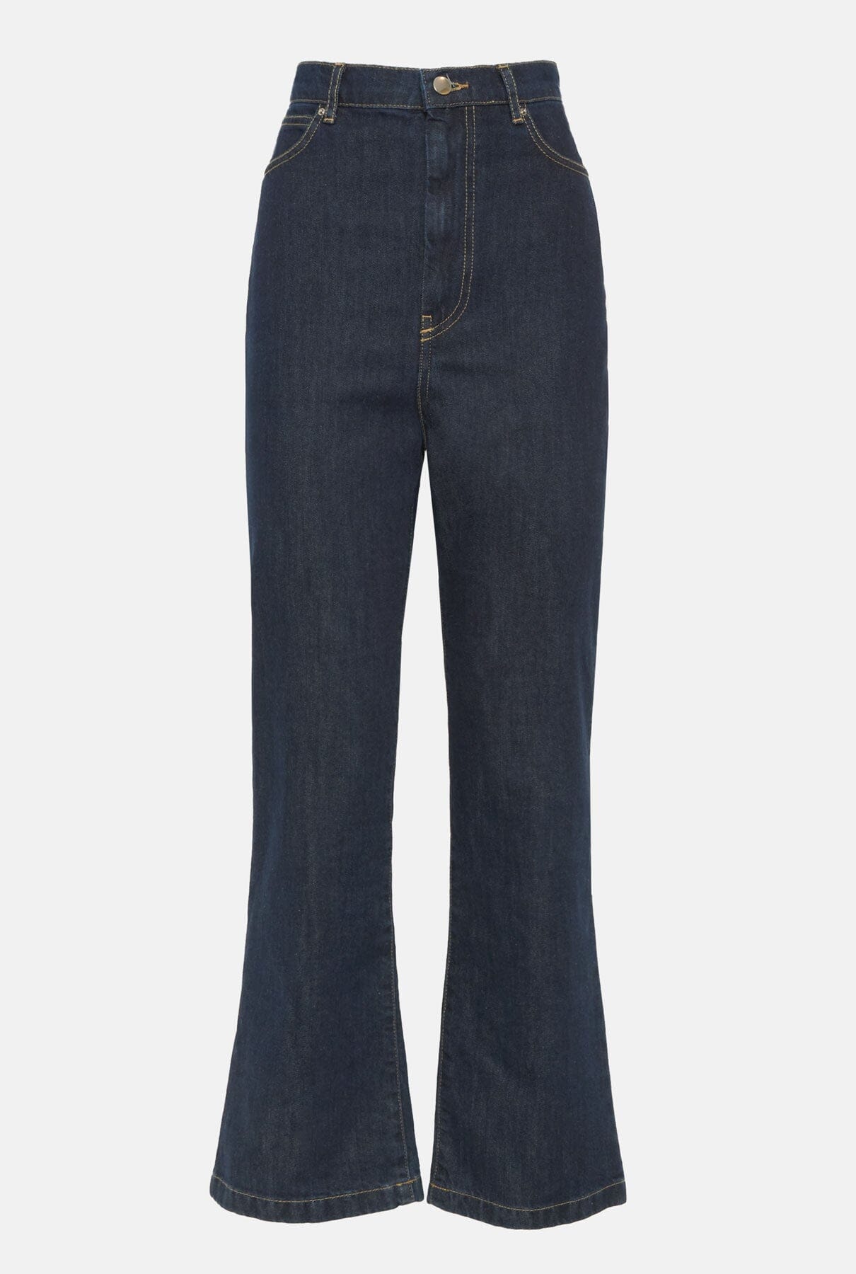 Jeans de tiro alto y pernera recta en denim oscuro. Hecho en España