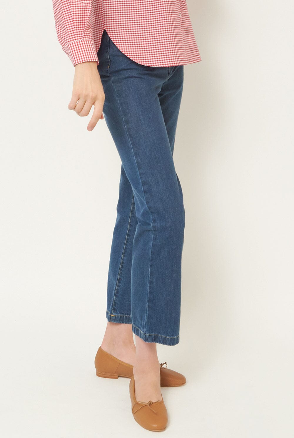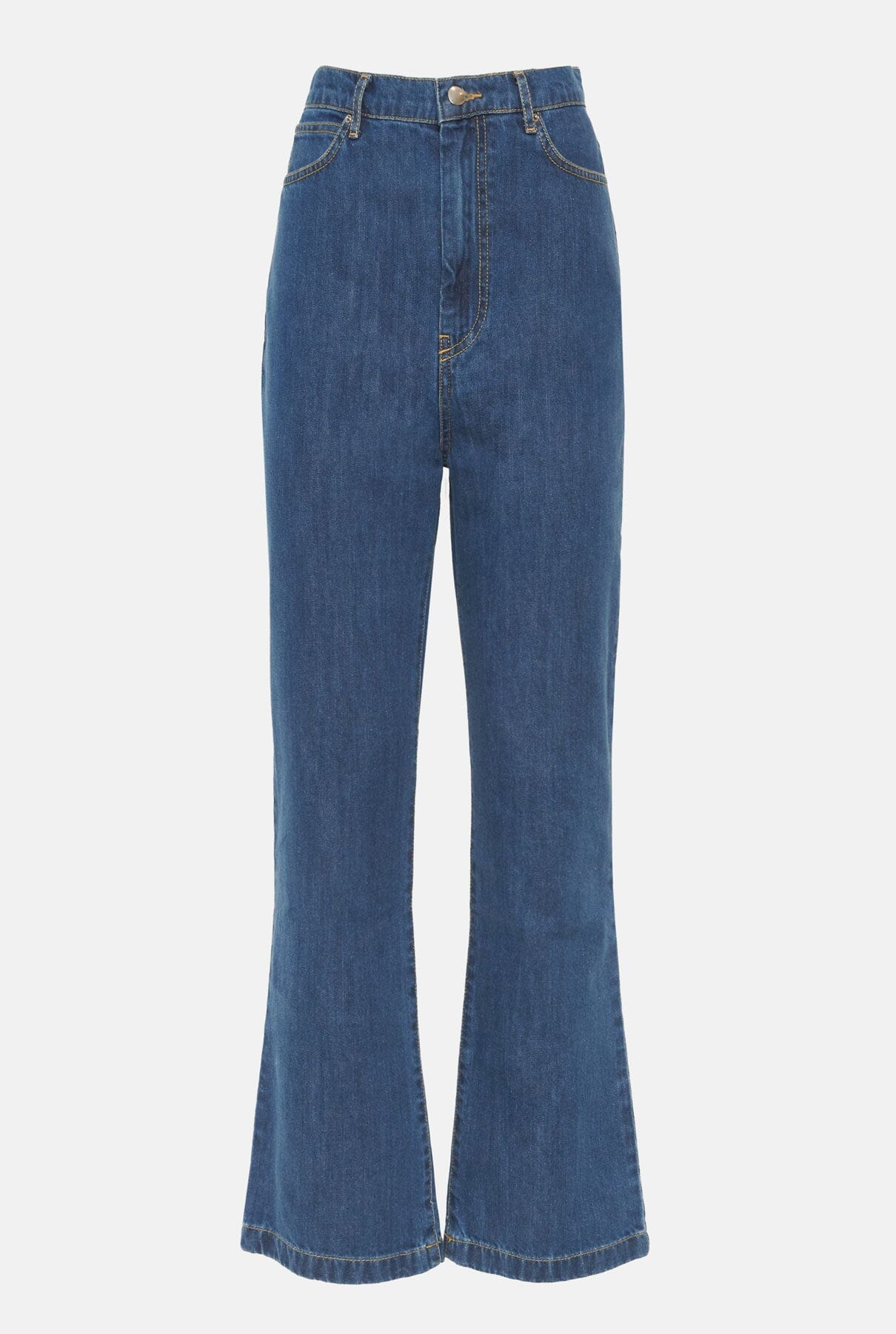 Jeans rectos de tiro alto en color medio, con tiro alto y pierna recta. Diseñado por Kolonaki.