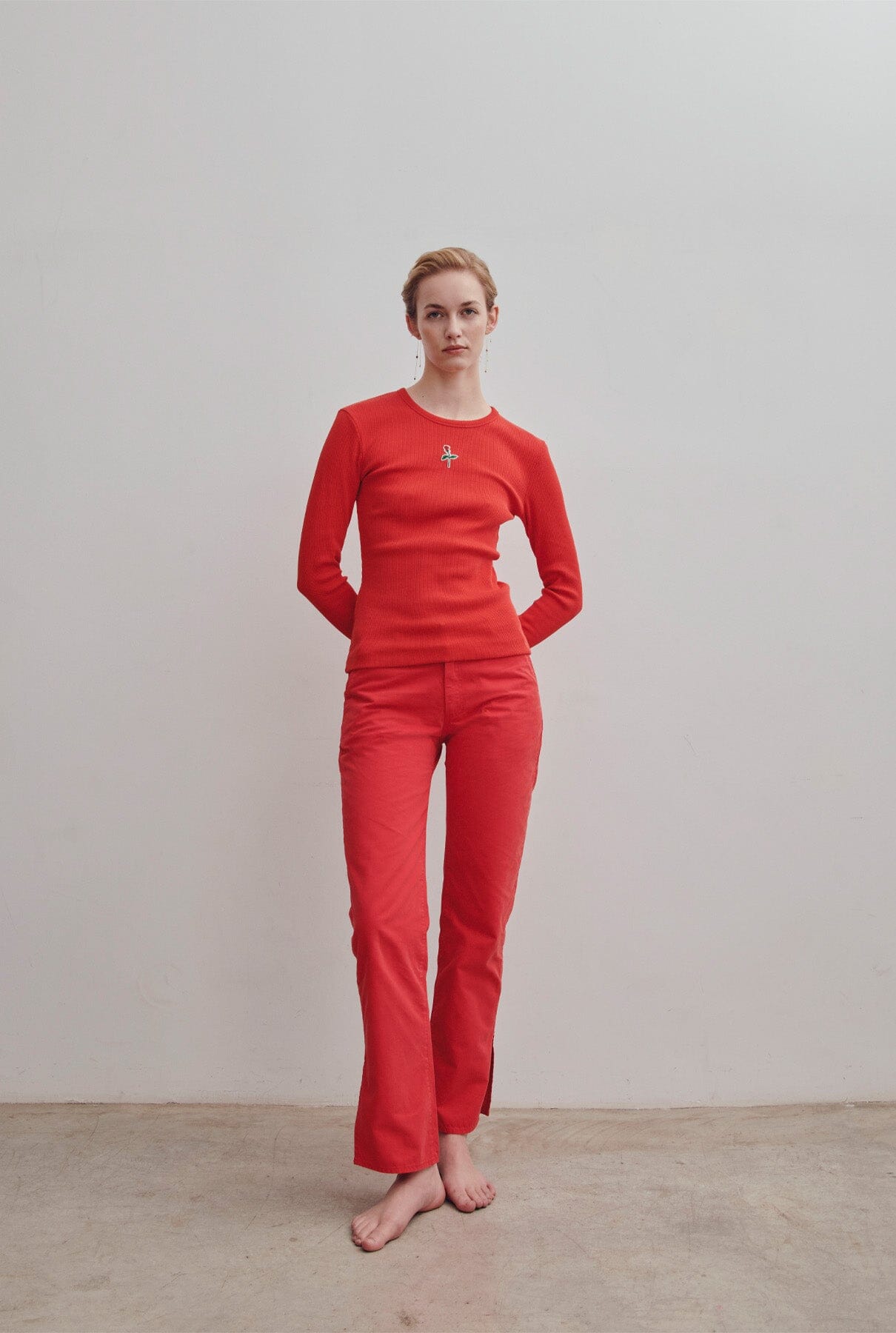 Pantalón Yconic de algodón rosa de tiro medio y pierna recta. Pequeña abertura en la parte inferior exterior del pantalón. Logotipo de Ynesuelves Rose bordado en el bolsillo trasero derecho. Cierre de cremallera.