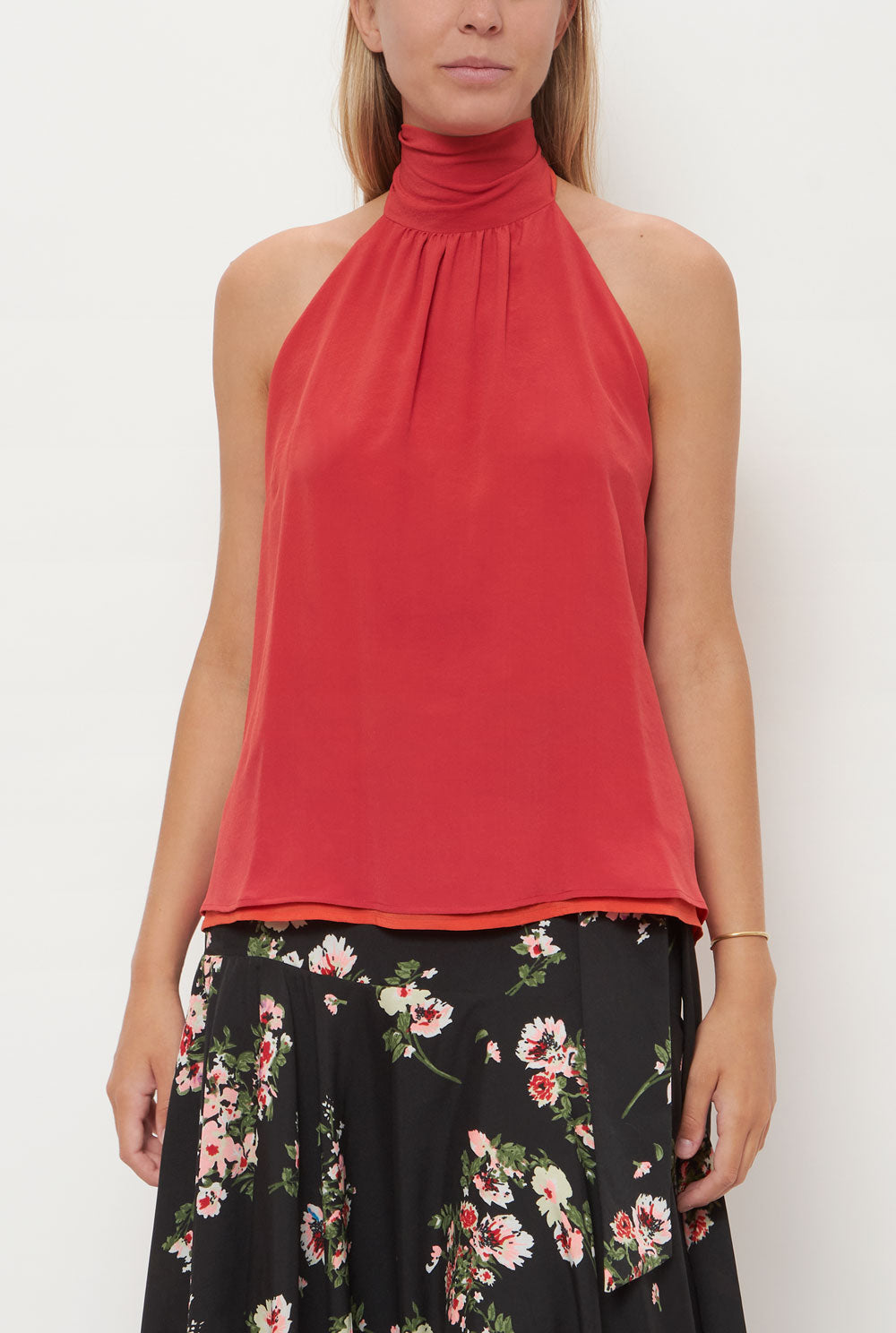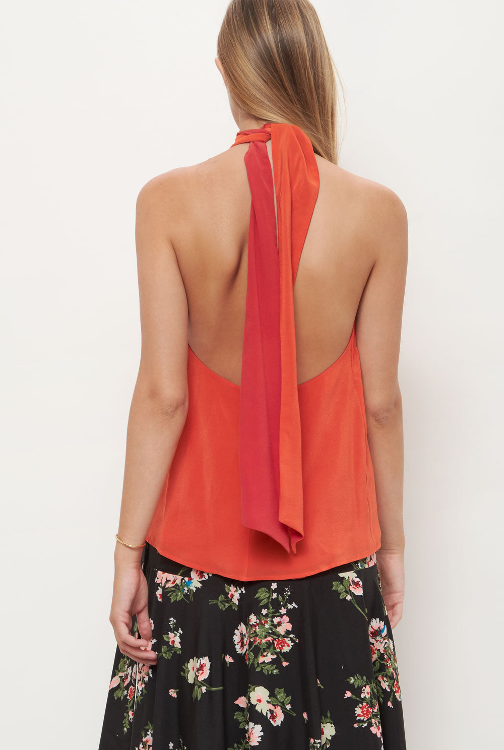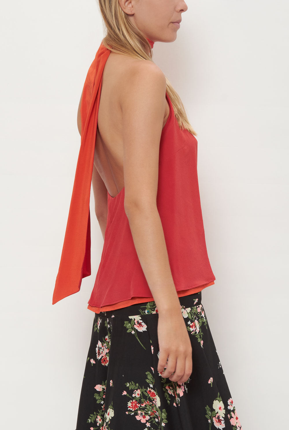 El top Halter es un top reversible de dos tonos que se ata alrededor del cuello, lo que lo convierte en dos tops en uno. Confeccionado 100% en crepe de seda.