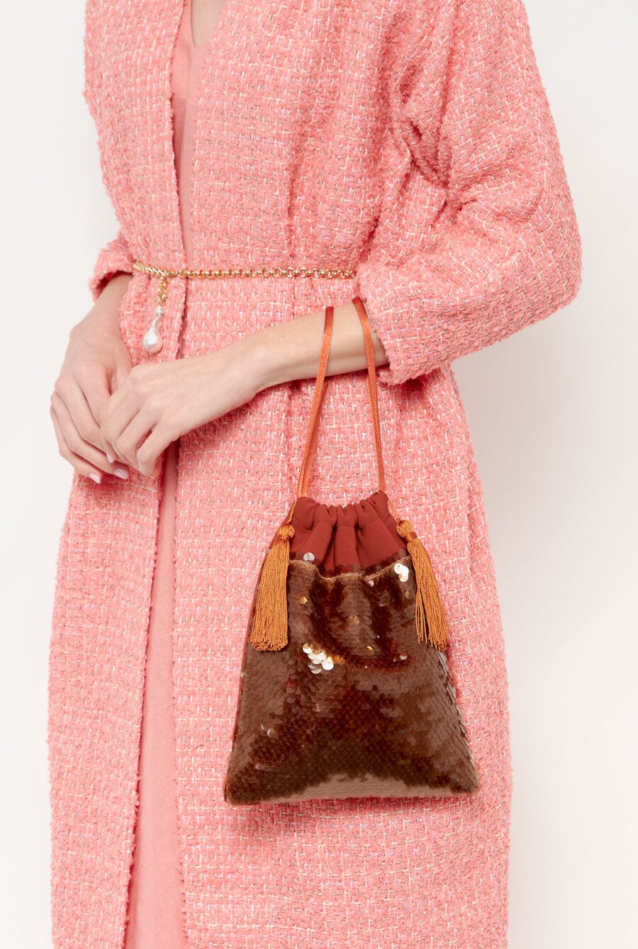 El bolsito de lentejuelas Rocio aportará el toque de glamour nostálgico de los años 20 tanto a tus looks de diario como de fiesta. Fabricados con orgullo en España, los bolsos Laia Alen tienen un tacto suave y una forma natural con cierre de cordón para un cierre fácil.