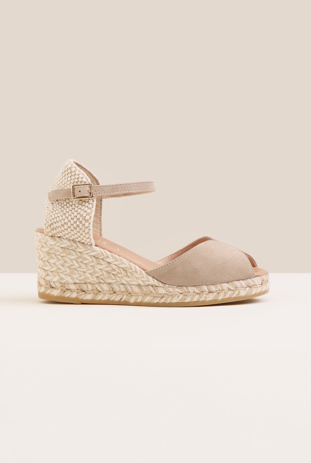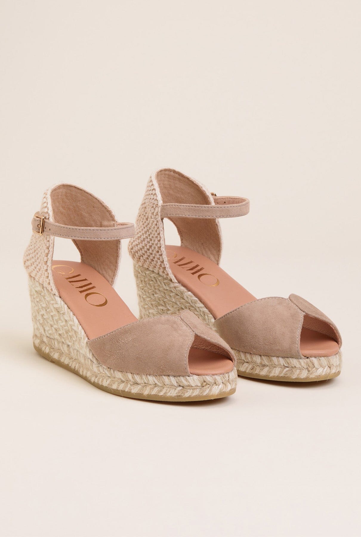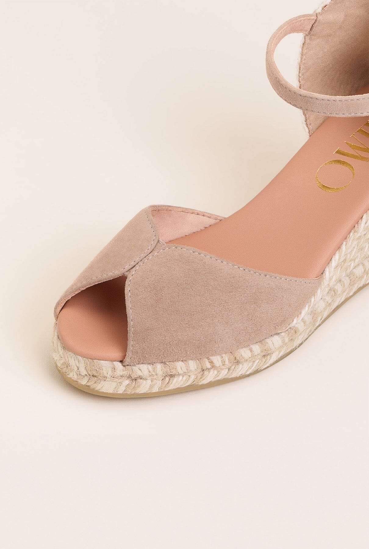 Alpargata de mujer Gaimo en ante. Modelo Ronny con pala abierta, garganta en forma de corazón y tacón con hebilla en el tobillo. Diseñada y confeccionada tradicionalmente en España, nuestra icónica pieza atemporal ha sido reinterpretada en nuevos colores para crear un básico de guardarropa muy cómodo e ideal para cualquier ocasión.