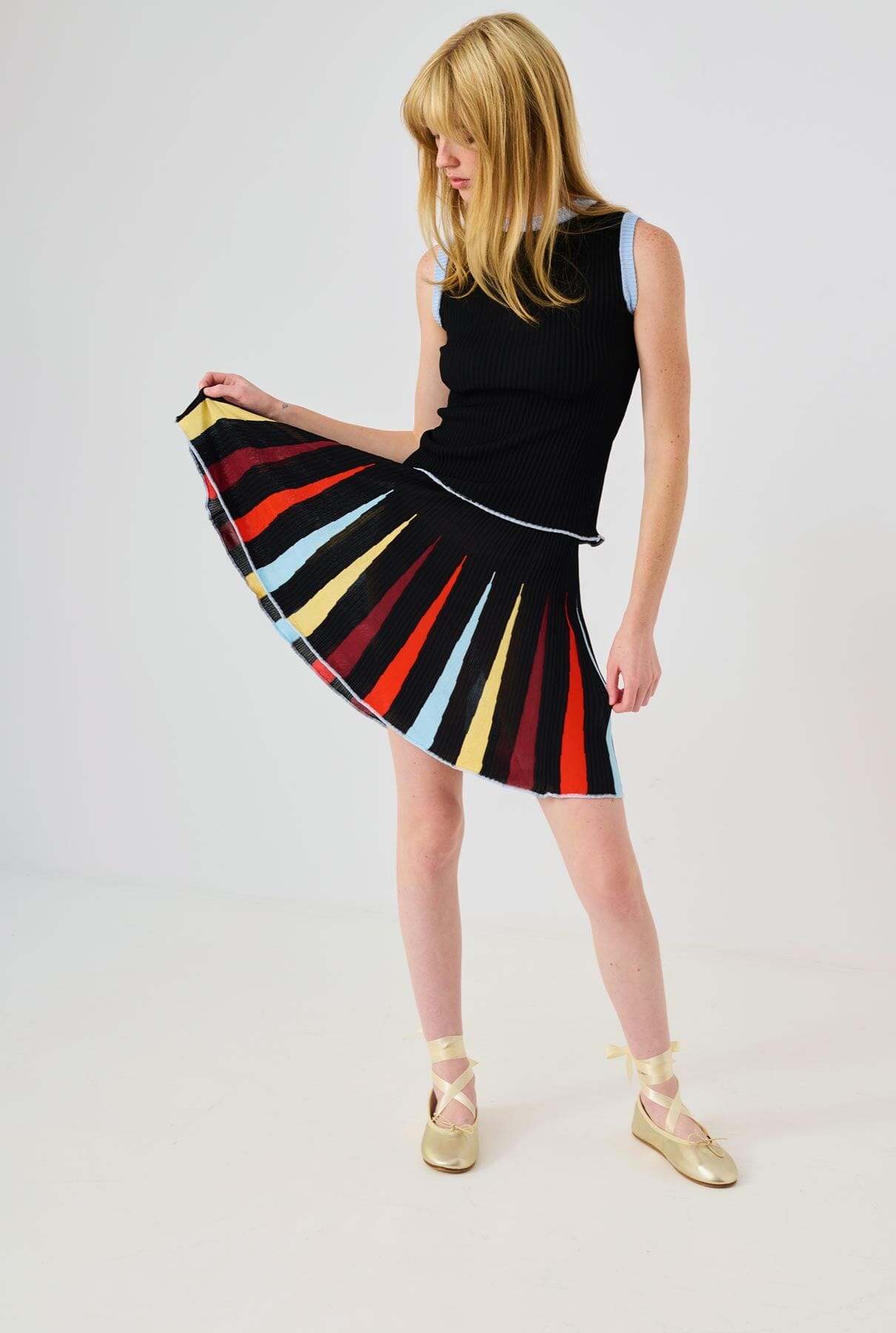 La falda tiene una silueta fluida y es ligera.