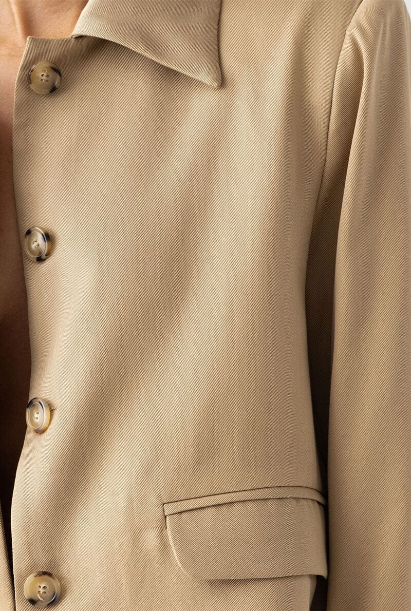 Nuestra chaqueta de tencel está confeccionada con un diseño estructurado que realza la figura de forma elegante y sutil. El tejido 100% tencel cuidadosamente seleccionado le aporta suavidad y calidad.