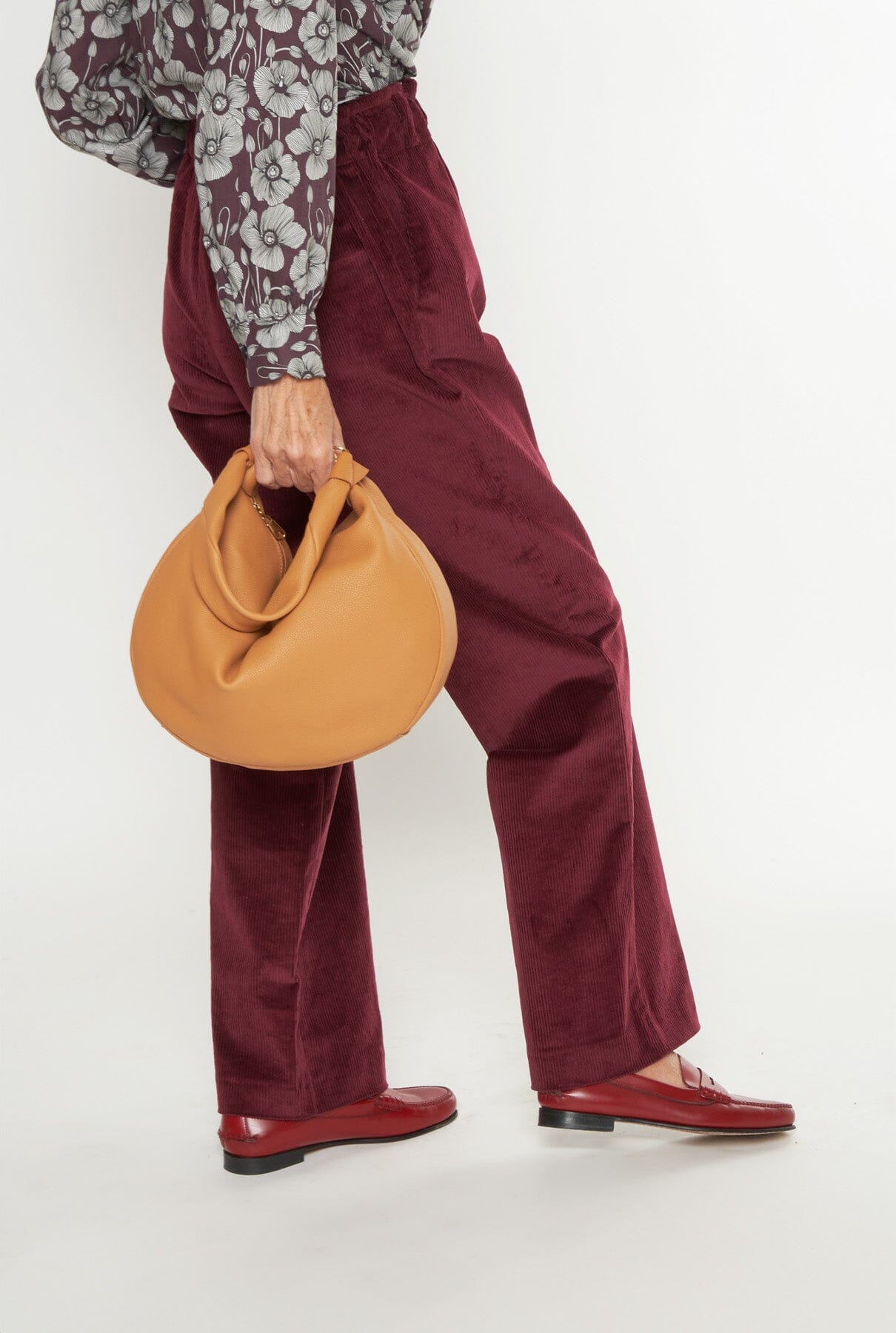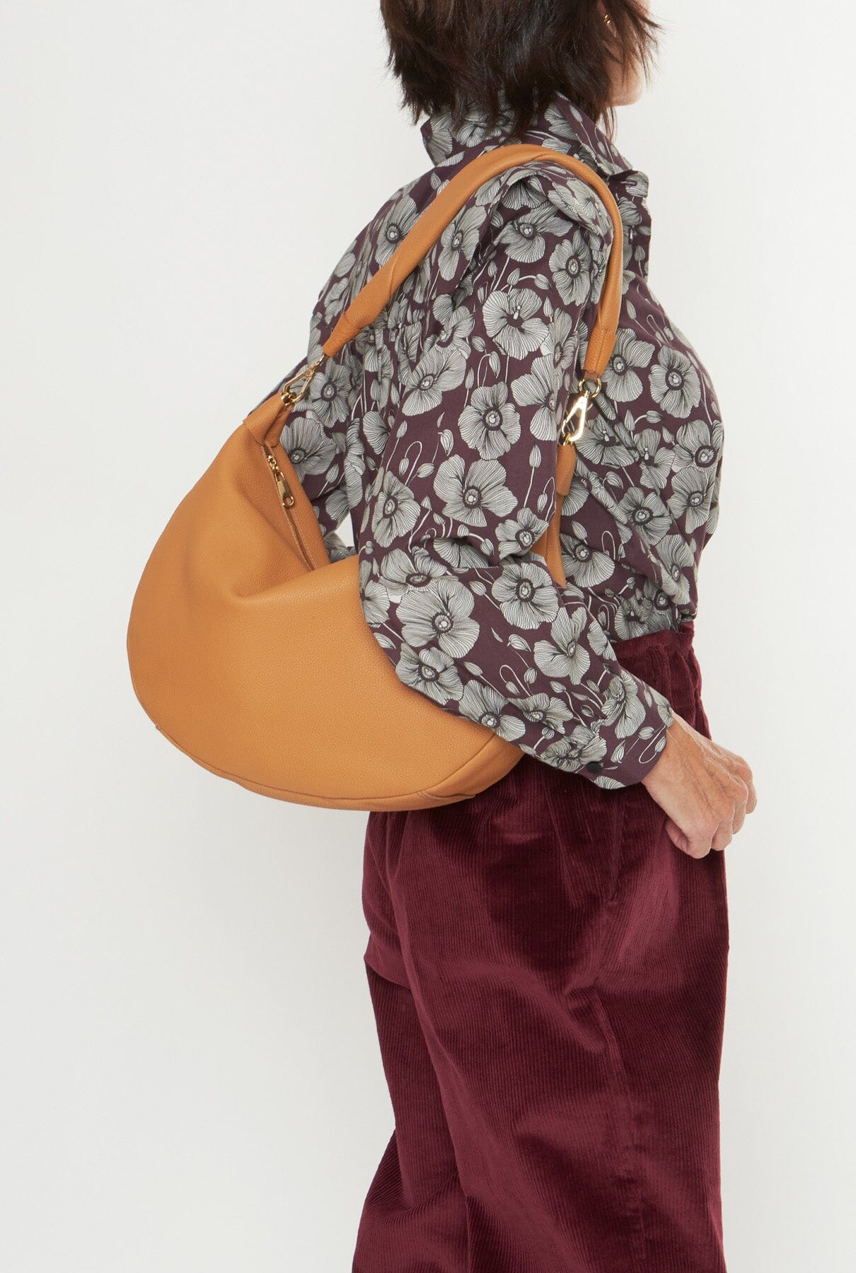 Bolso artesanal de piel flor de vacuno. Bolsillo interior y cierre de cremallera.