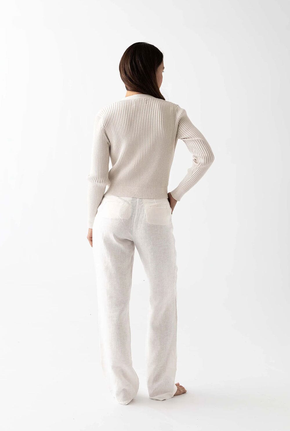 El cárdigan de manga larga tiene una silueta elegante y sencilla. Corte entallado en busto y cintura con un favorecedor escote en pico. Apertura frontal con cierre de botón.