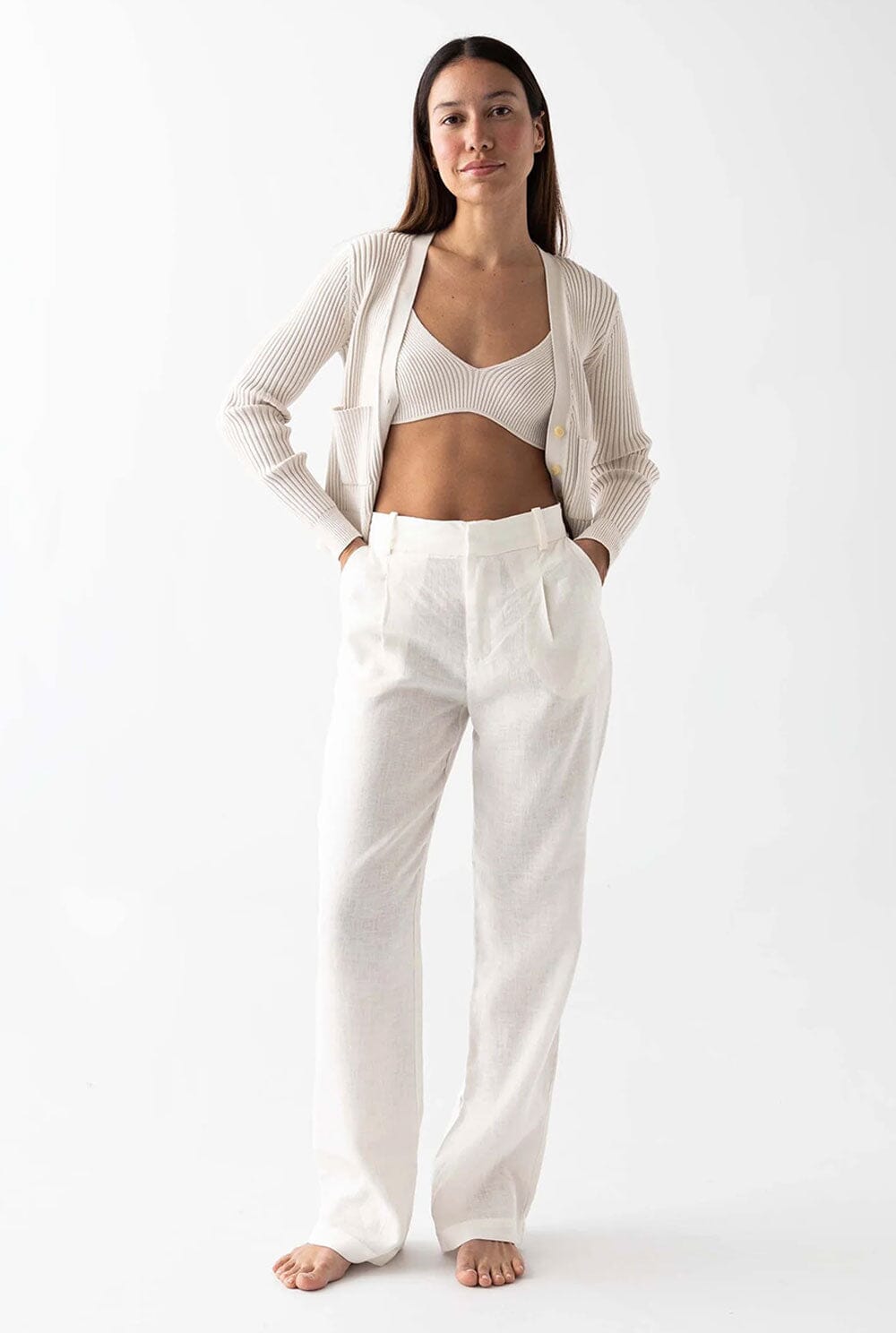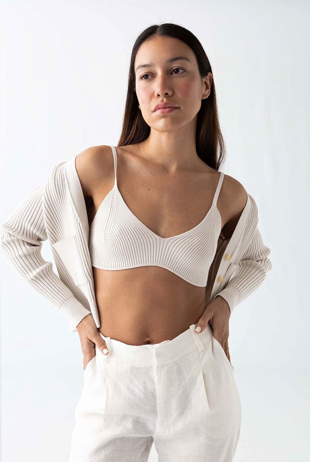 Se compone de dos piezas, top y cárdigan. Top de punto triangular con tirantes finos y corte muy favorecedor, perfecto para combinar con un cardigan o cualquier tipo de chaqueta.