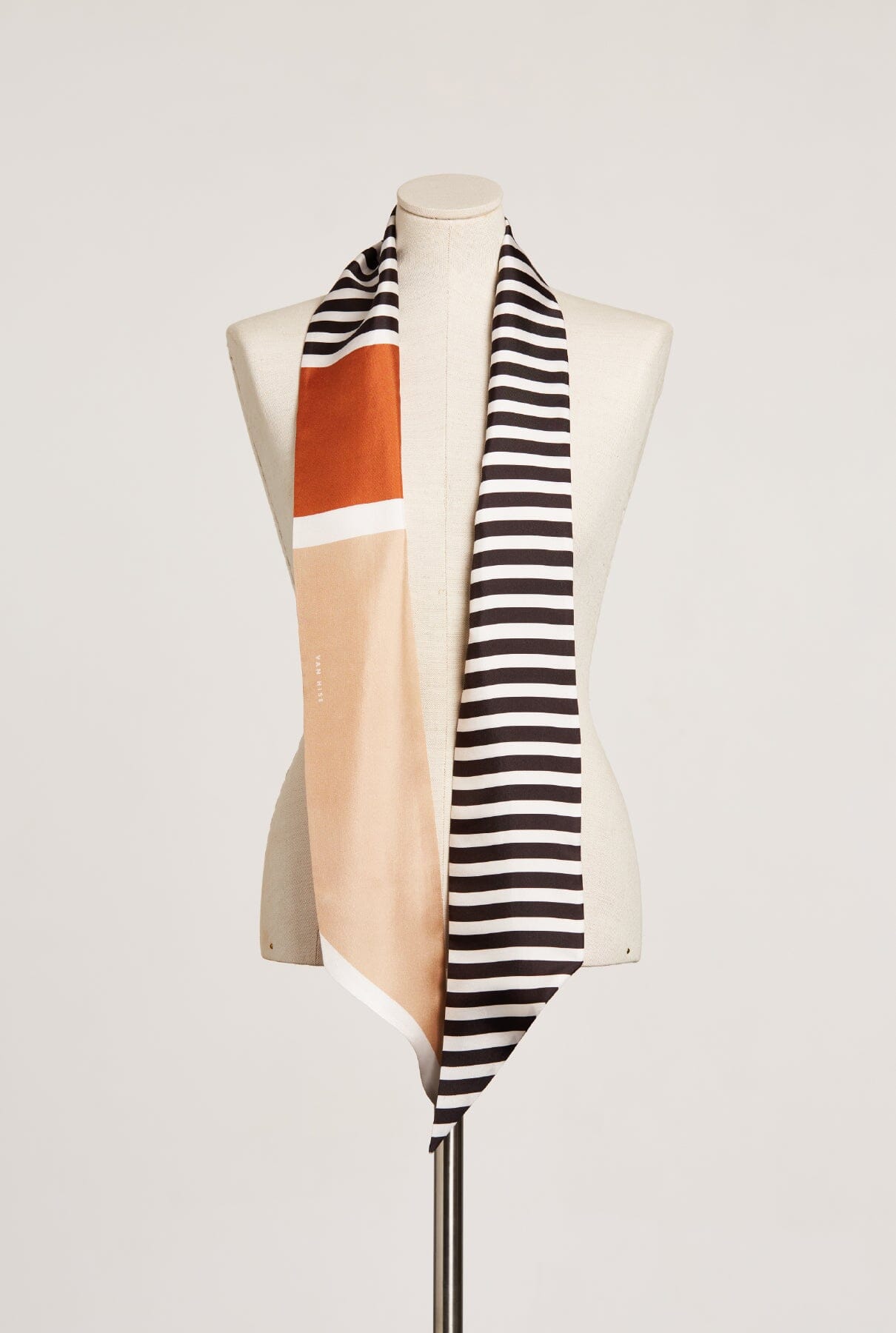 | Nuestro clásico pañuelo Med Stripe reinventado en un formato largo y estrecho. Pañuelo largo de seda doble estampado con bloques de color y motivo de rayas inspirado en las sombrillas tradicionales que bordean la costa mediterránea. El pañuelo Med se puede usar como pañuelo para el cuello, pañuelo para la cabeza o como cinturón. Edición limitada diseñada por Carrie Van Hise. Sarga de seda 100 % 12 x 180 cm Fabricado en España |