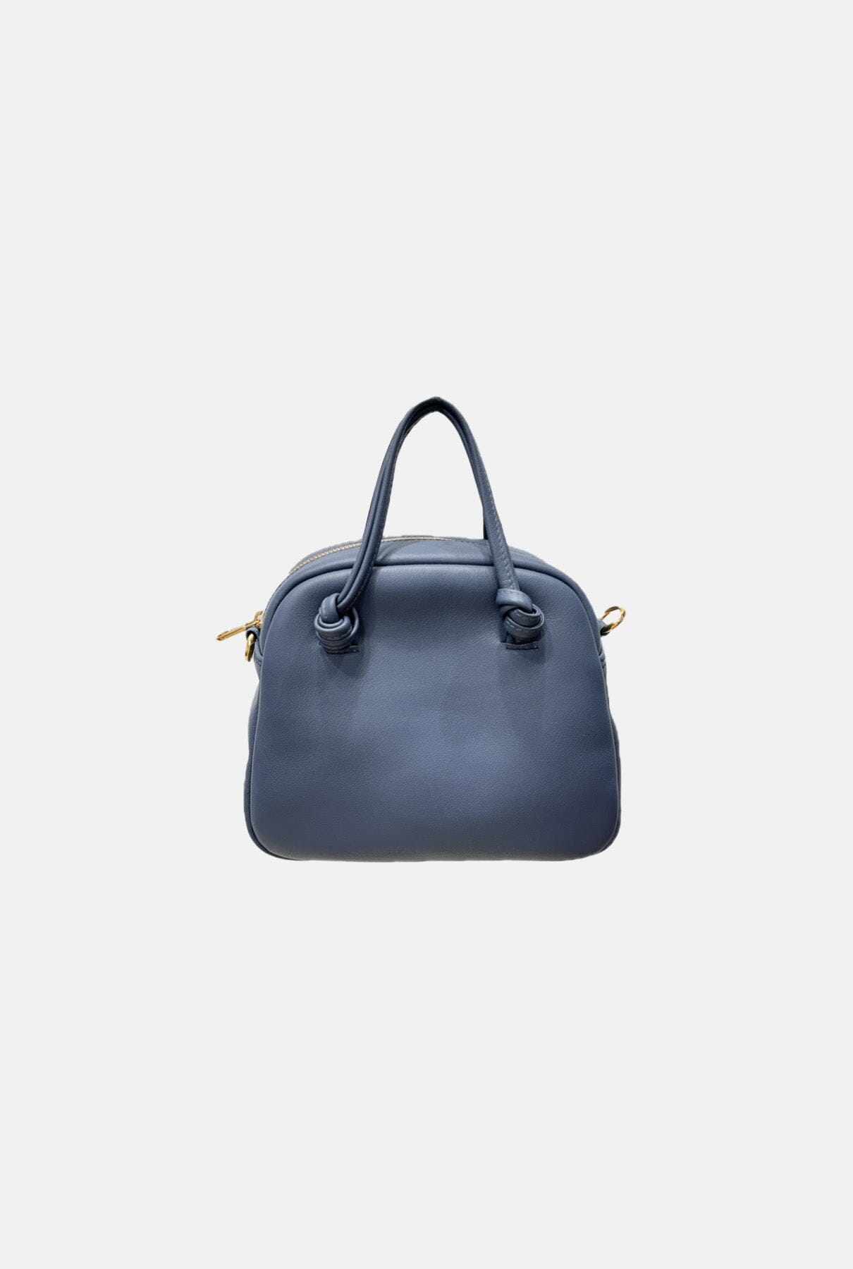 Bolso bowling de piel con cremallera y 2 asas. Forro y bolsillo interior. Diseñado y fabricado artesanalmente en España.