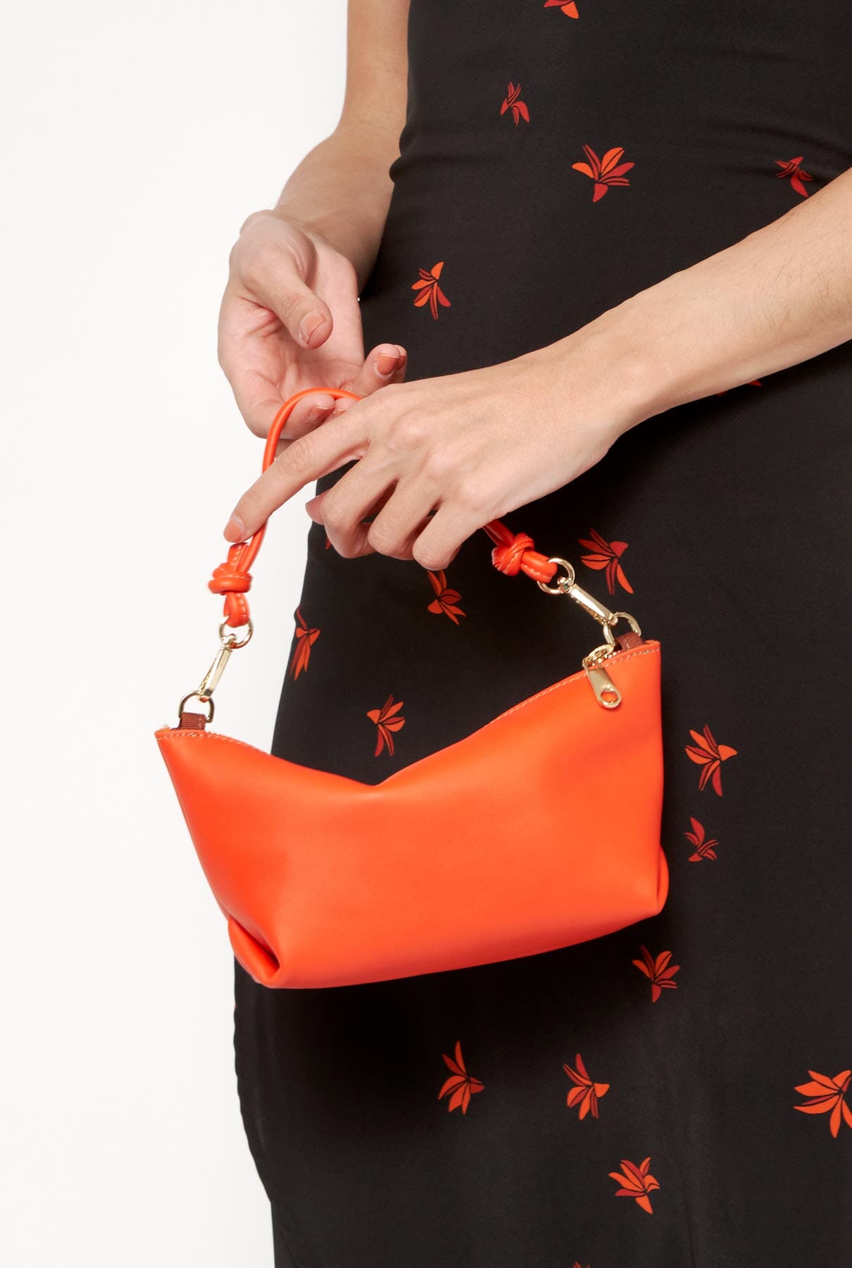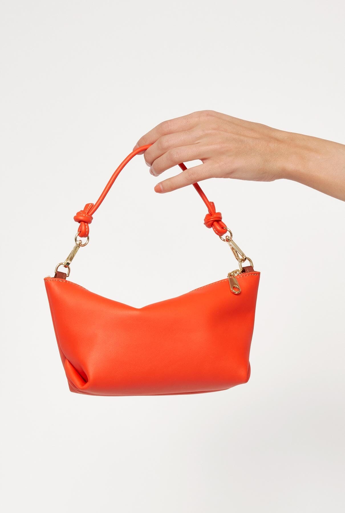 Bolso elaborado artesanalmente con piel de vacuno, cierre de cremallera y asa de piel.