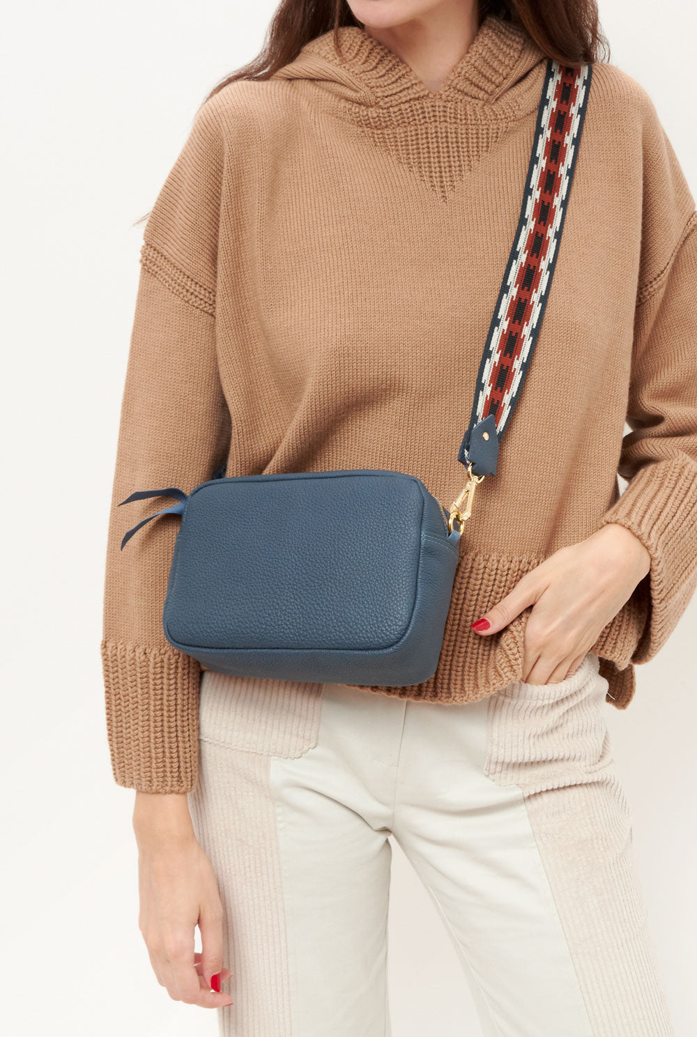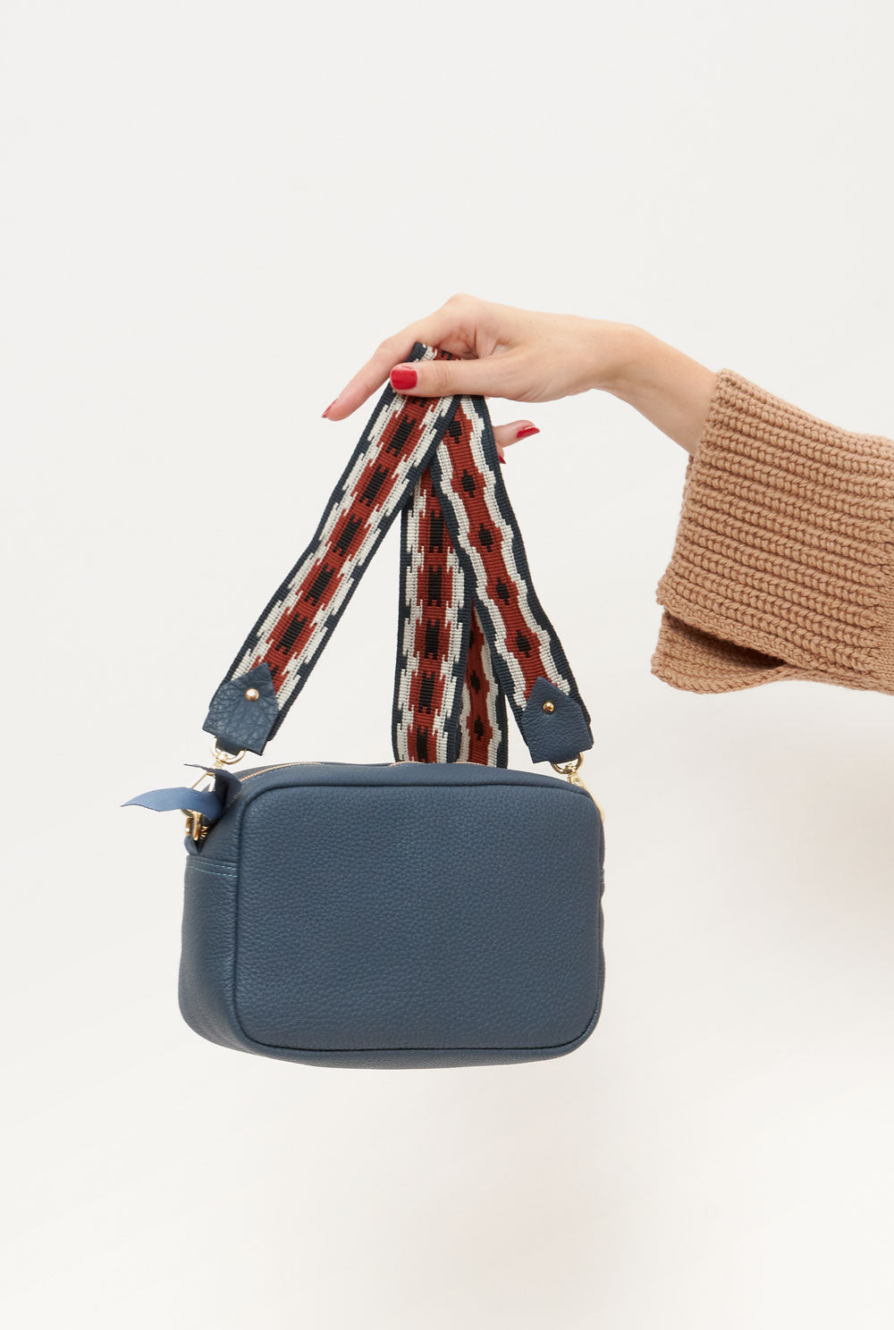 Bolso bandolera artesanal con cremallera realizado en piel flor de vacuno. Bolsillo interior. Bandolera multicolor con 2 enganches. Diseñado por The Bag Lab.