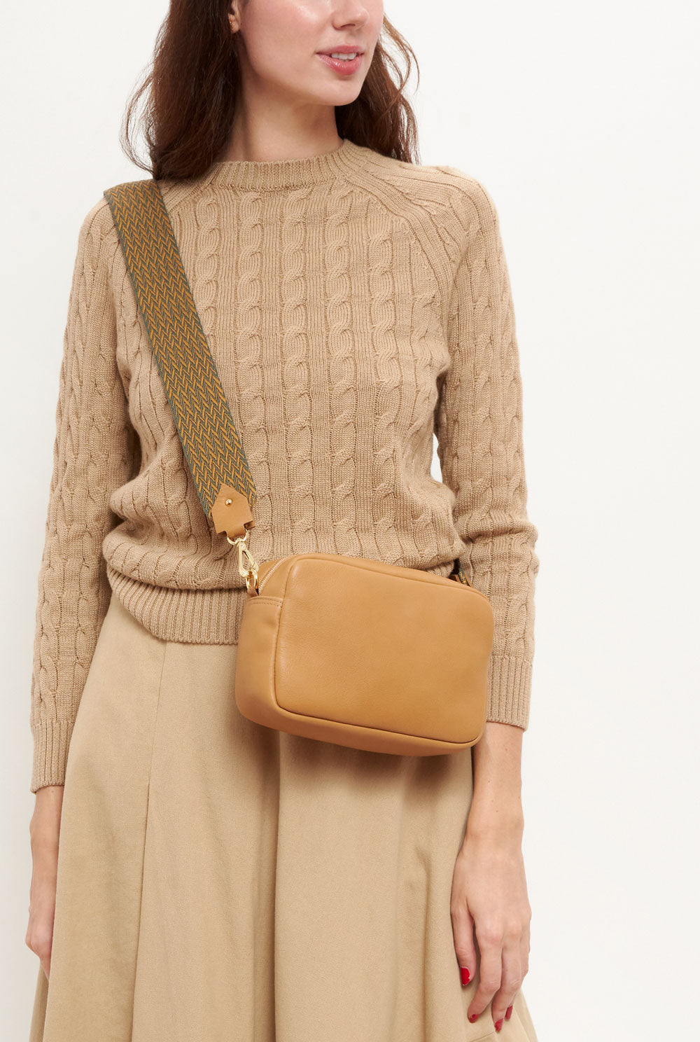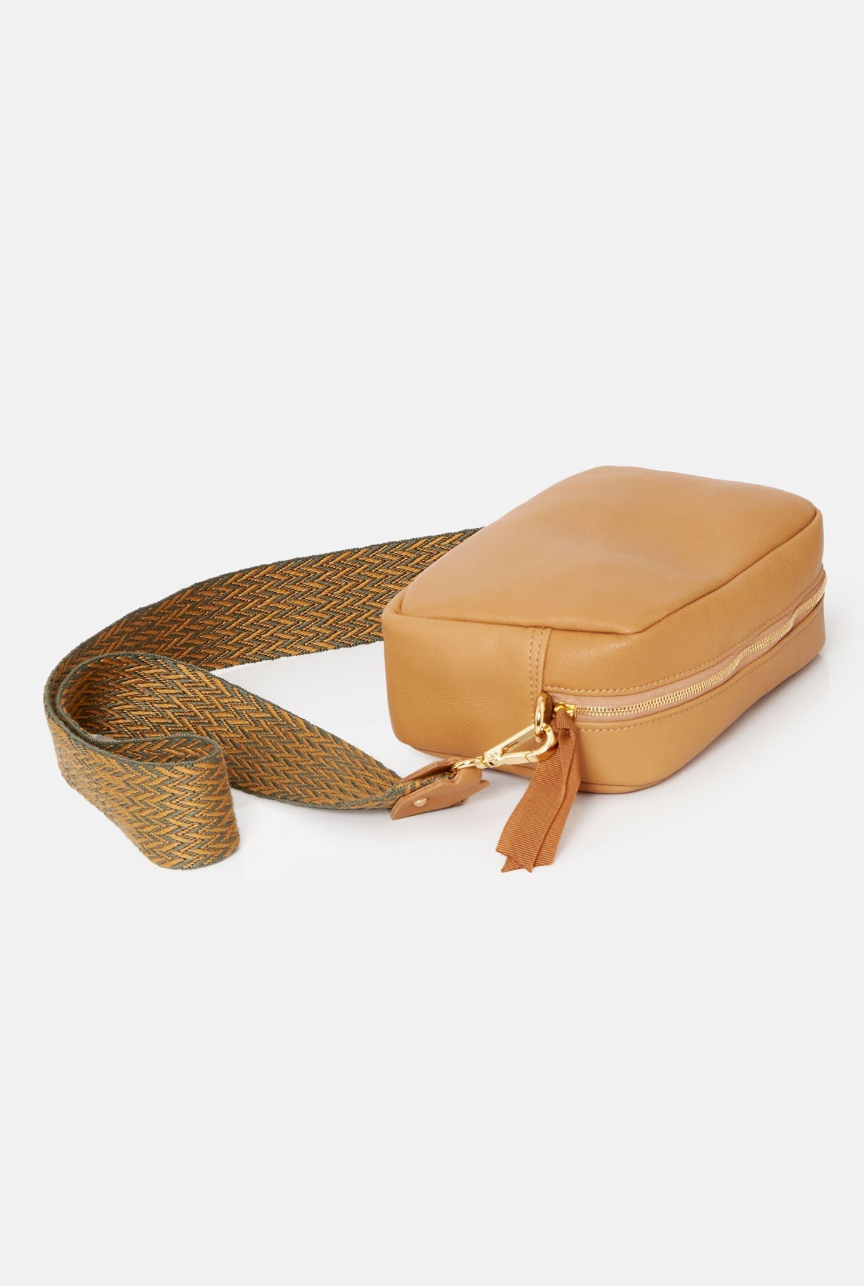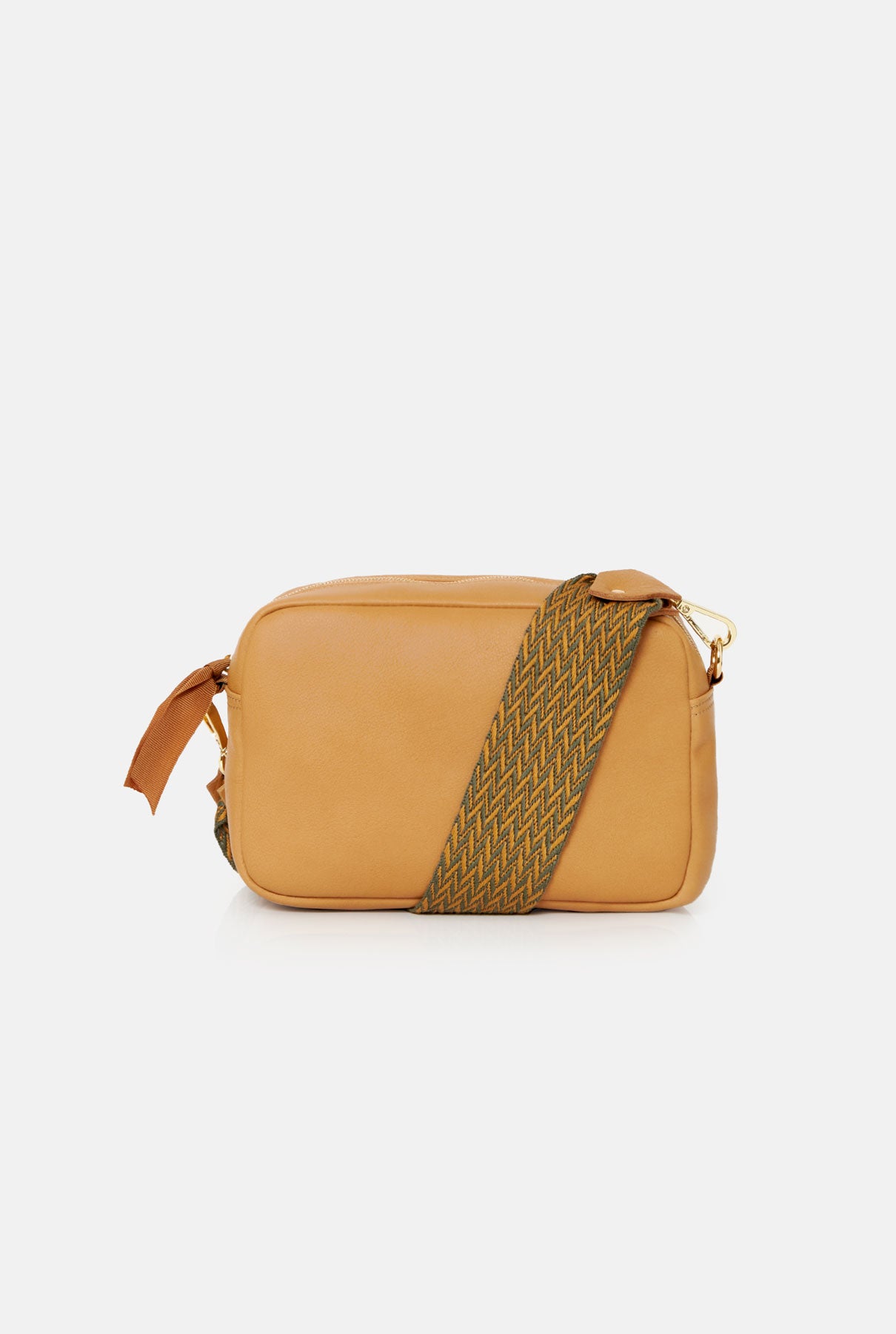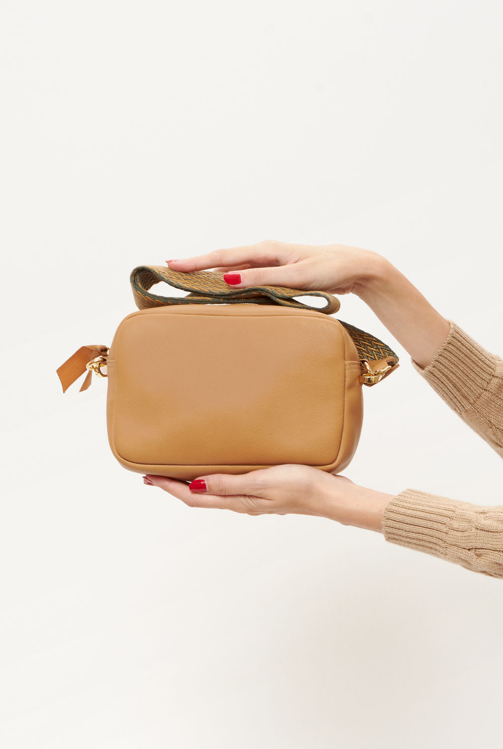 Bolso bandolera artesanal con cremallera elaborado con piel flor vacuno. Bolsillo interior. Bandolera multicolor con 2 ganchos. Diseñado por The Bag Lab.