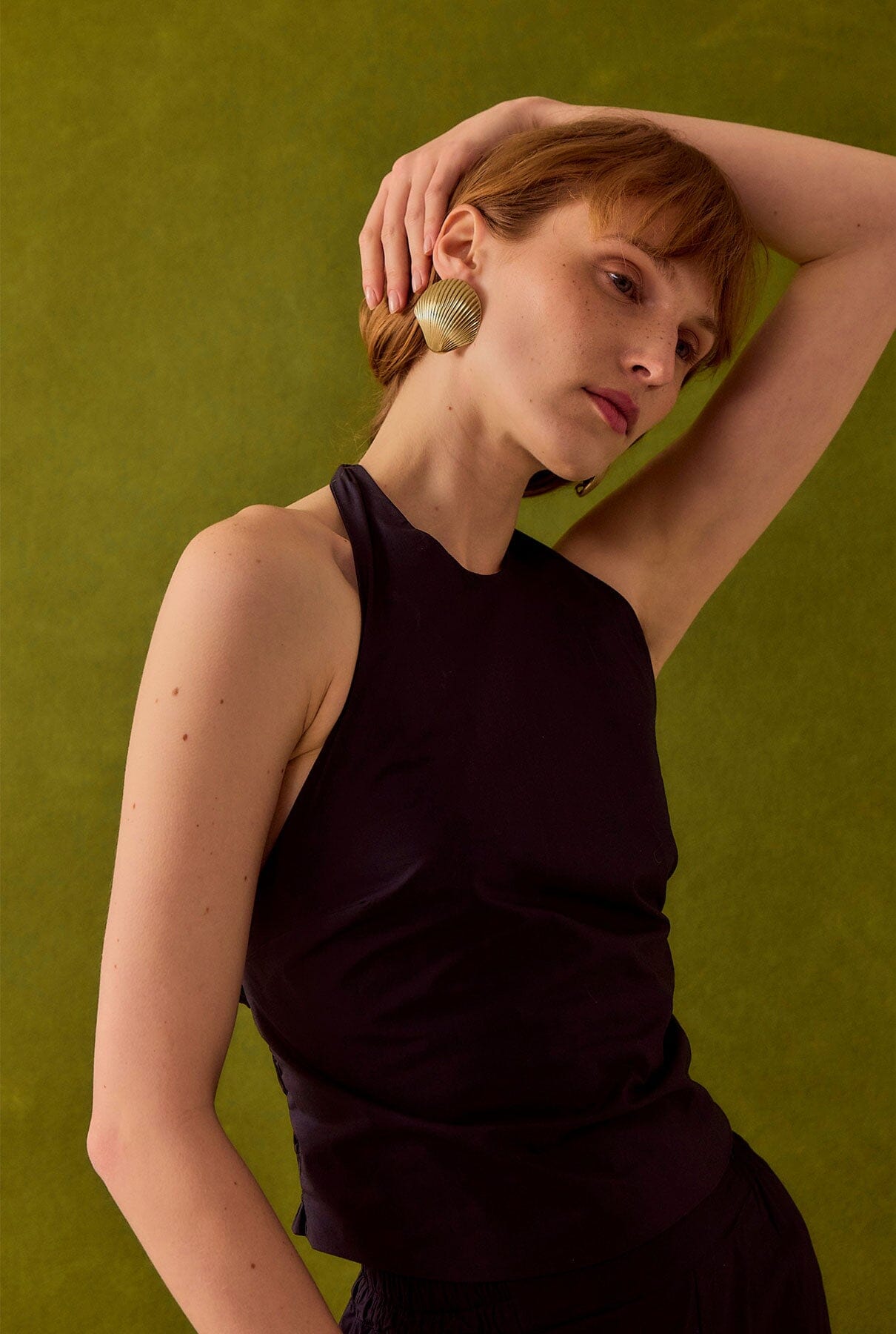 Shell shaped earrings, made of brass with protection. Button clasp.