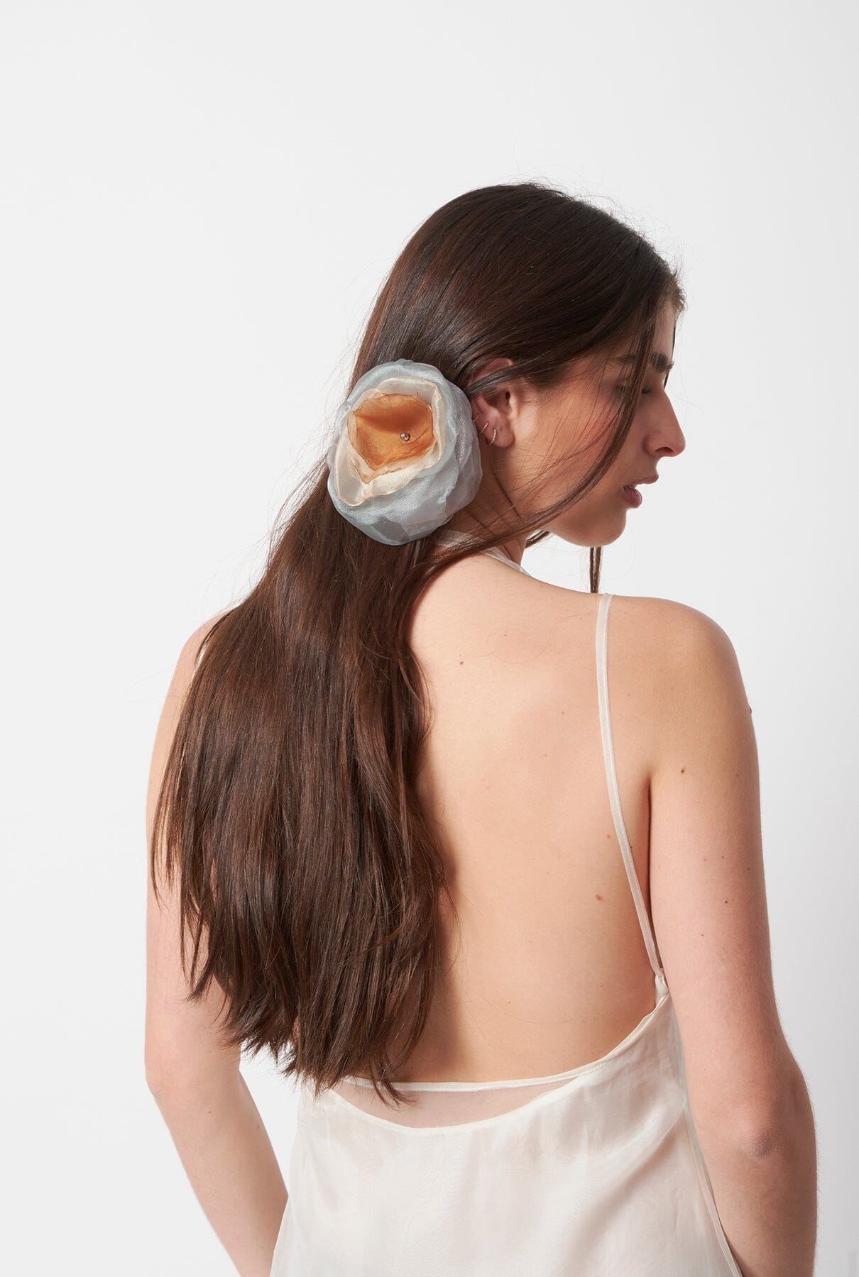 TOCADO BROCHE FLOR DE ORGANZA VERDE CRISTAL