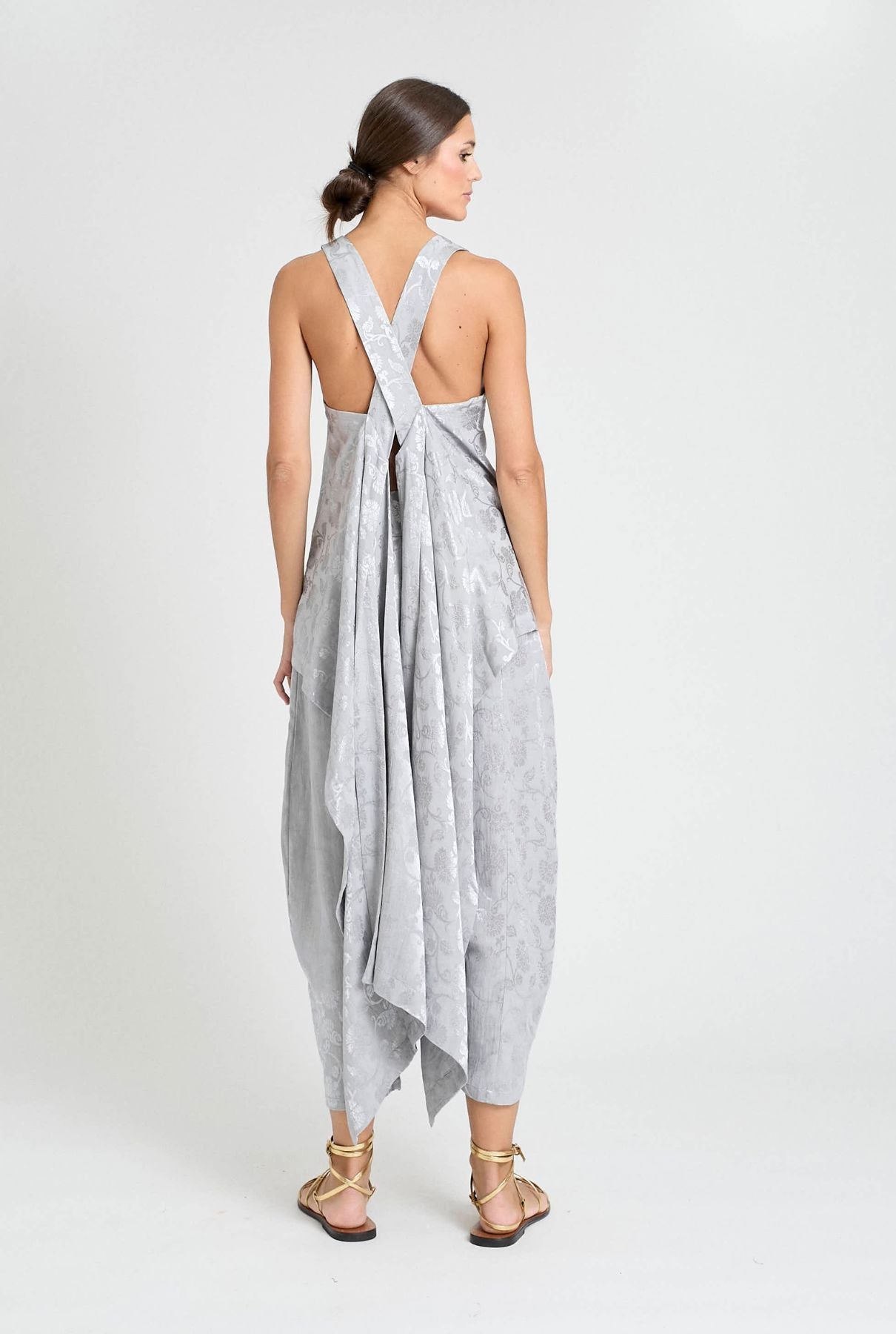 Top estampado del mismo tejido con tirantes cruzados en la espalda.