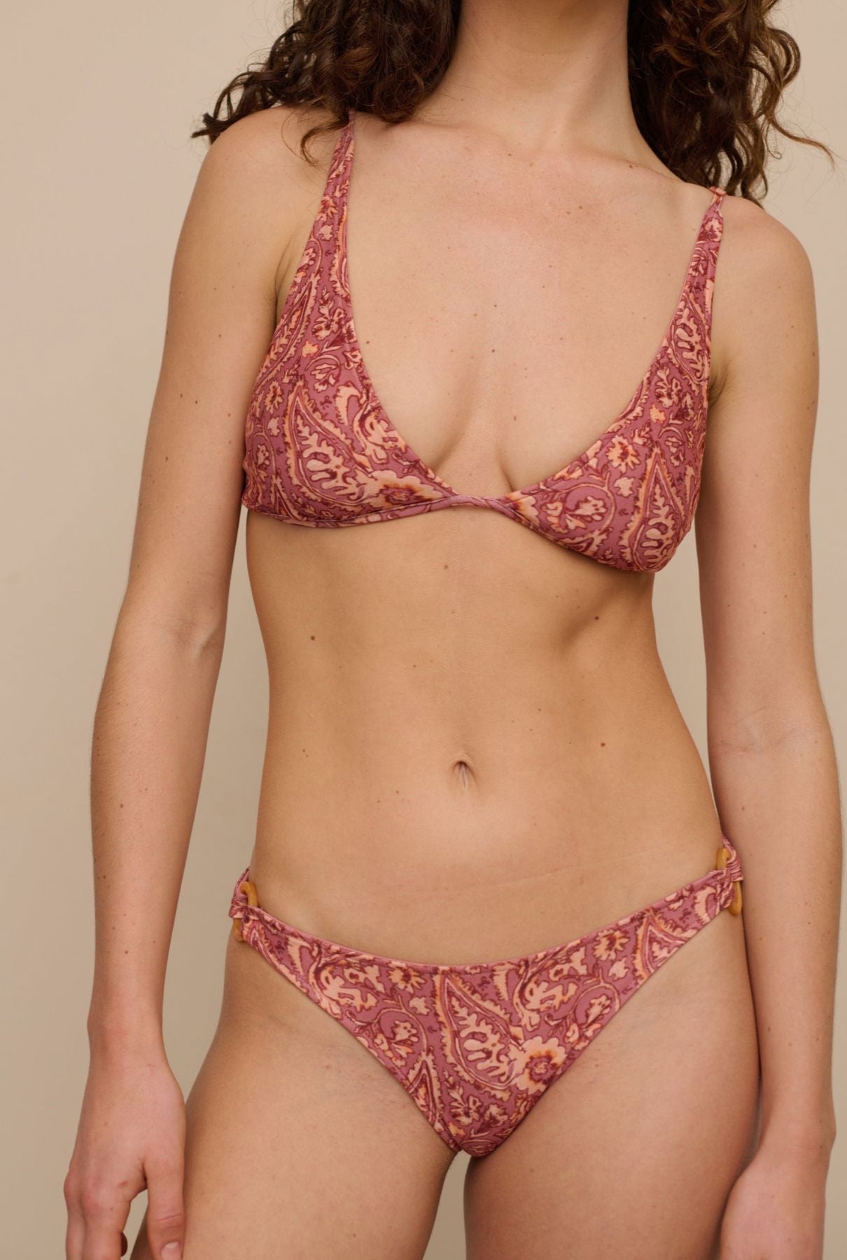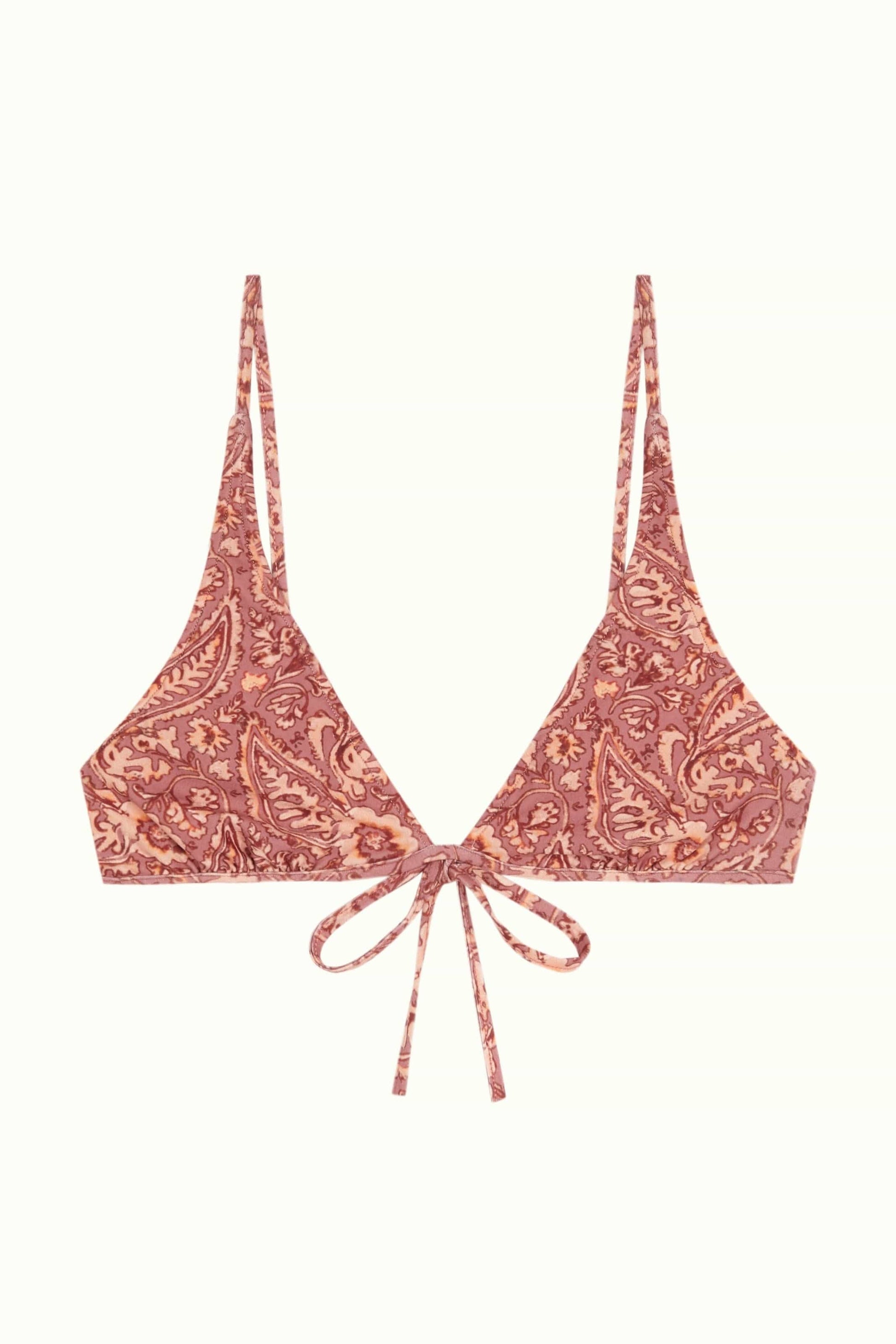 Top de escote en pico con tirantes totalmente ajustables y contorno anudado en la espalda.