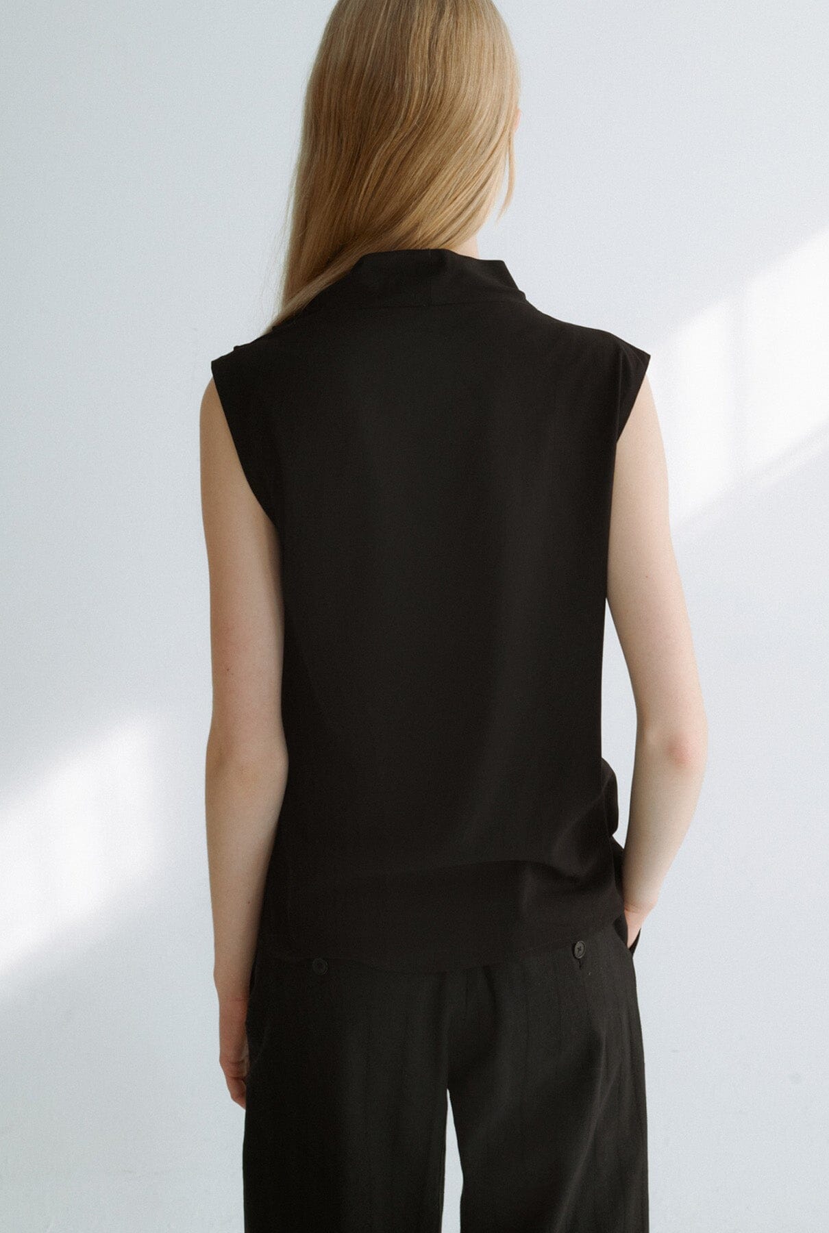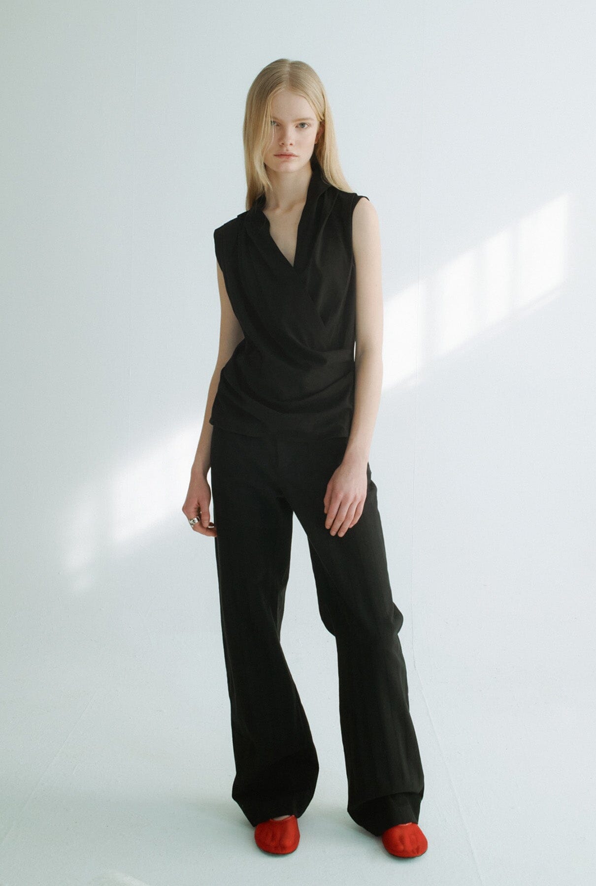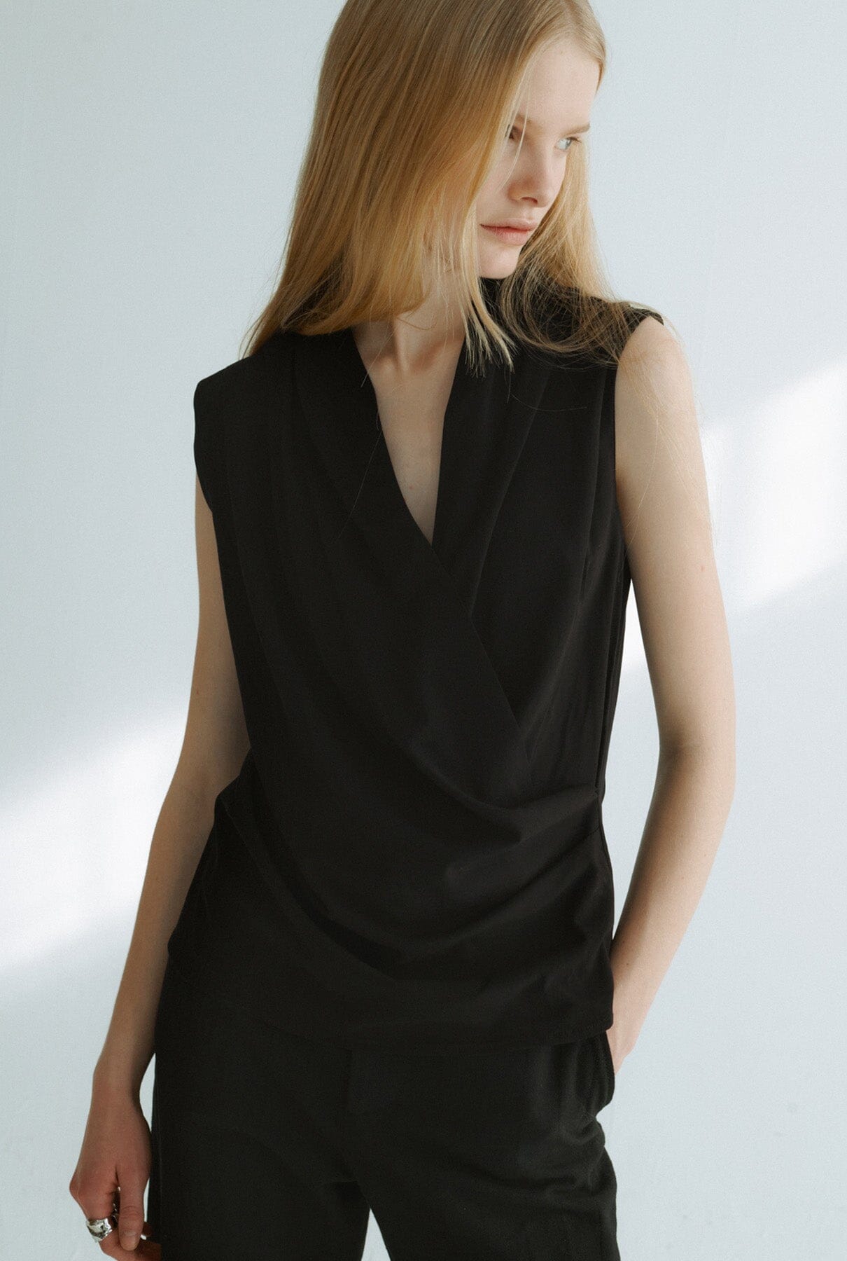 Top drapeado de Miguel Marinero en algodón negro. Completa tu guardarropa con este básico de guardarropa, una opción versátil para reuniones elegantes o un look más informal. Fácil de llevar por dentro de pantalones de cintura alta o vaqueros gracias al dobladillo ligero.