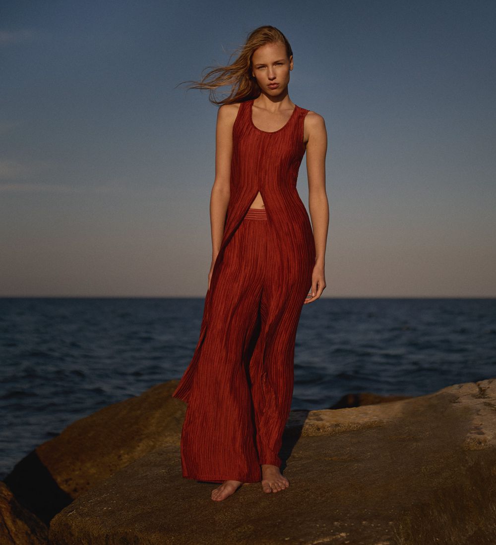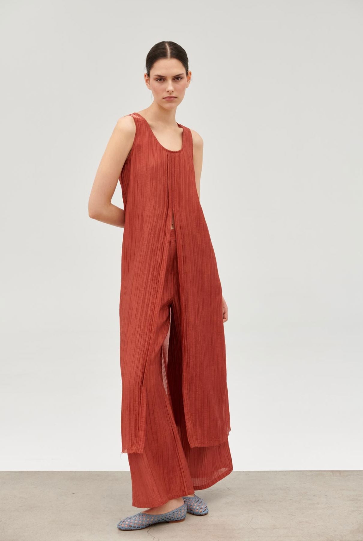 Conjunto de top largo con abertura central. Incluye pantalón a juego opcional.