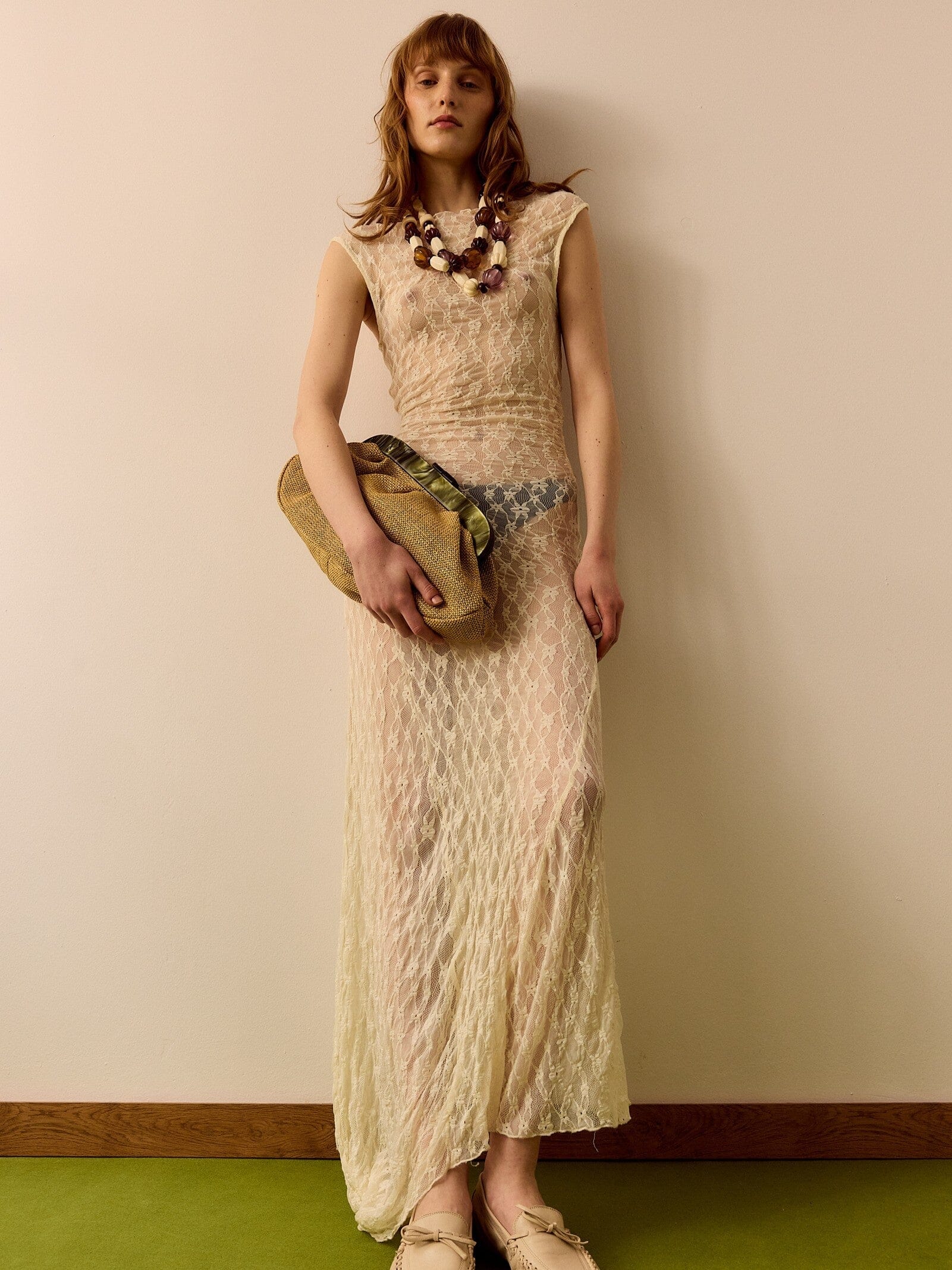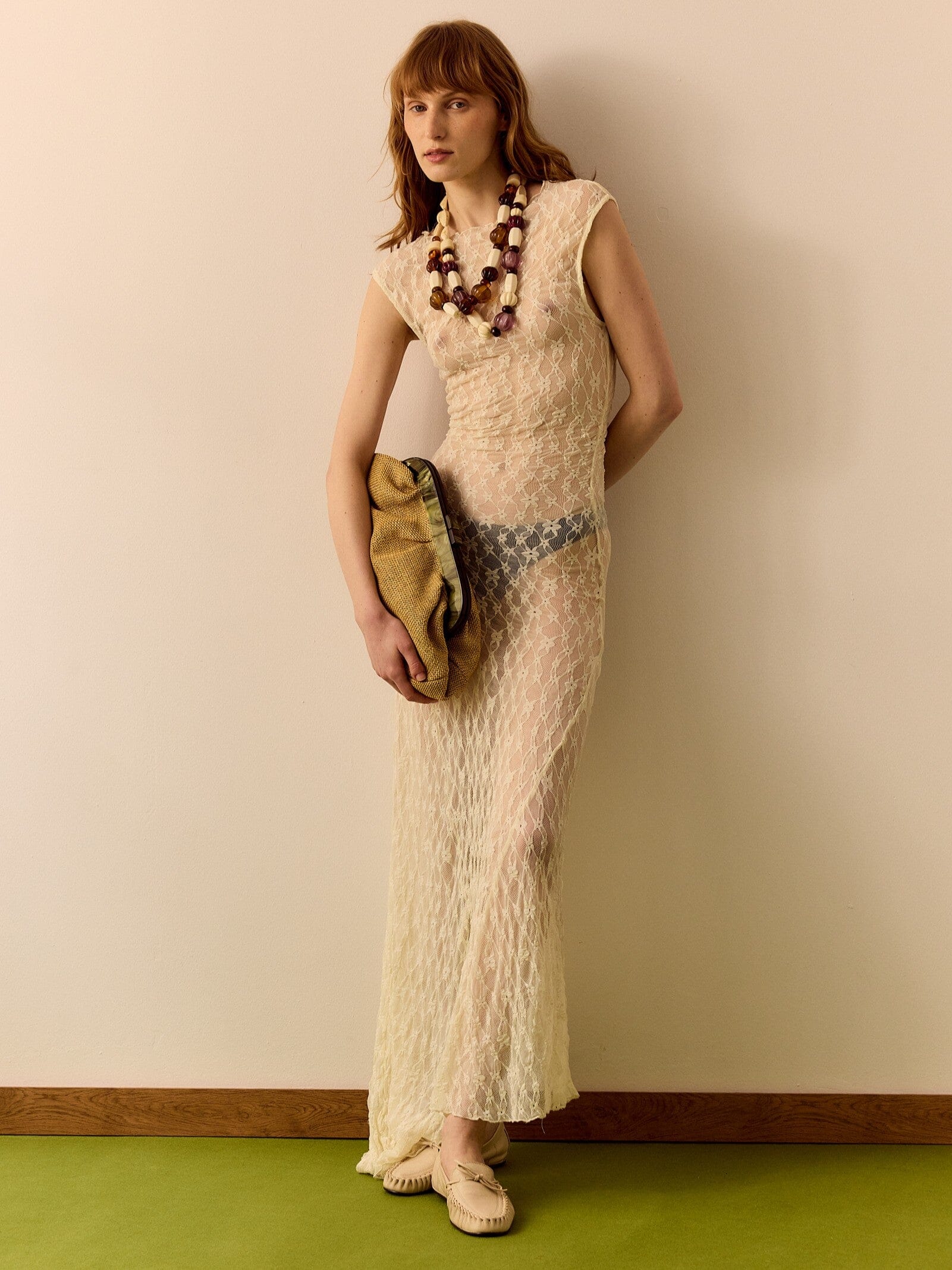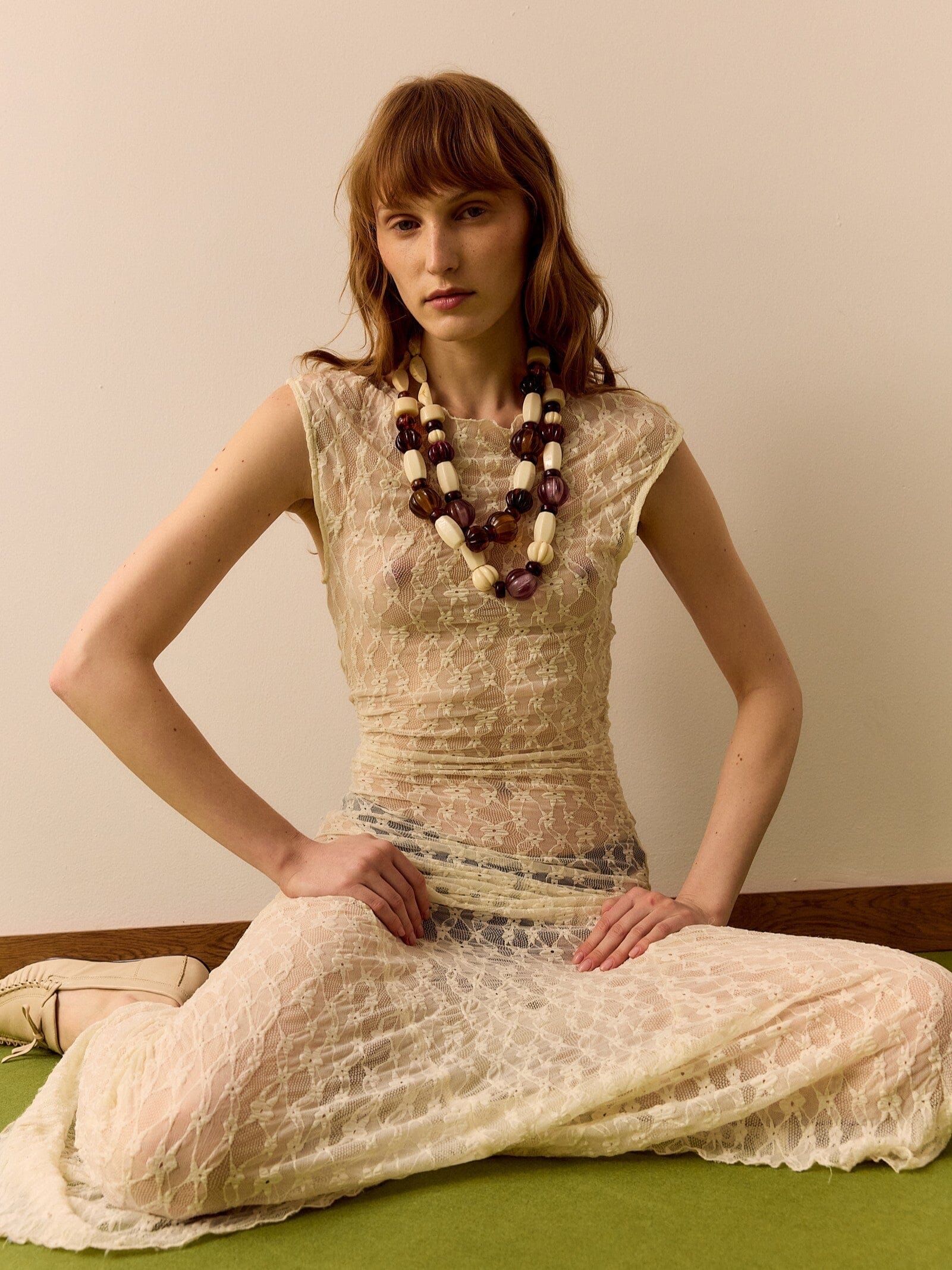 Half chest necklace, made with tubes, balls and discs, made of multicoloured resin.