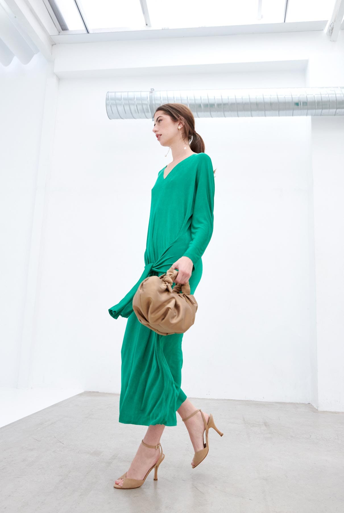 ESCOTE EN V, CORDÓN AJUSTABLE EN LA CADERA, TEÑIDO