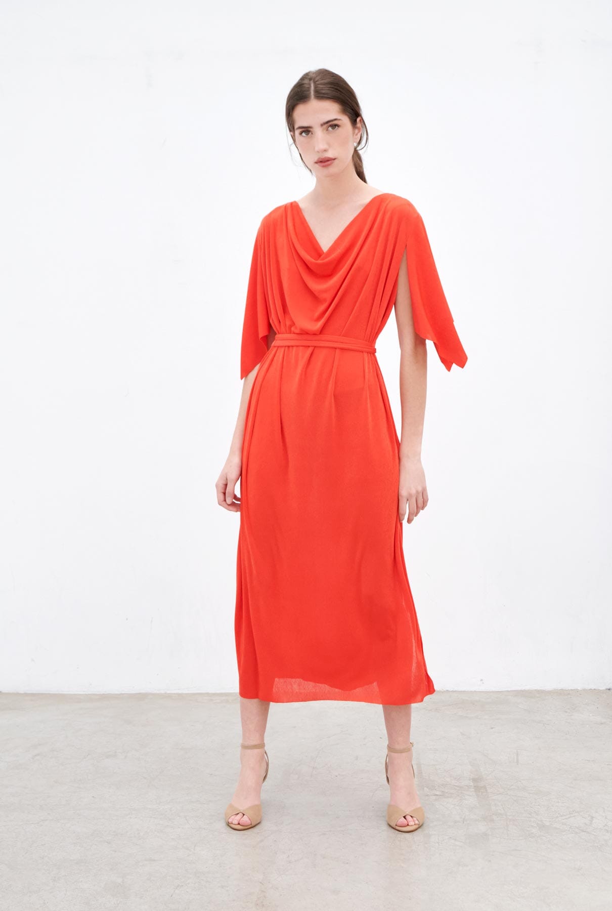 VESTIDO TÚNICA ESCOTE DRAPEADO
