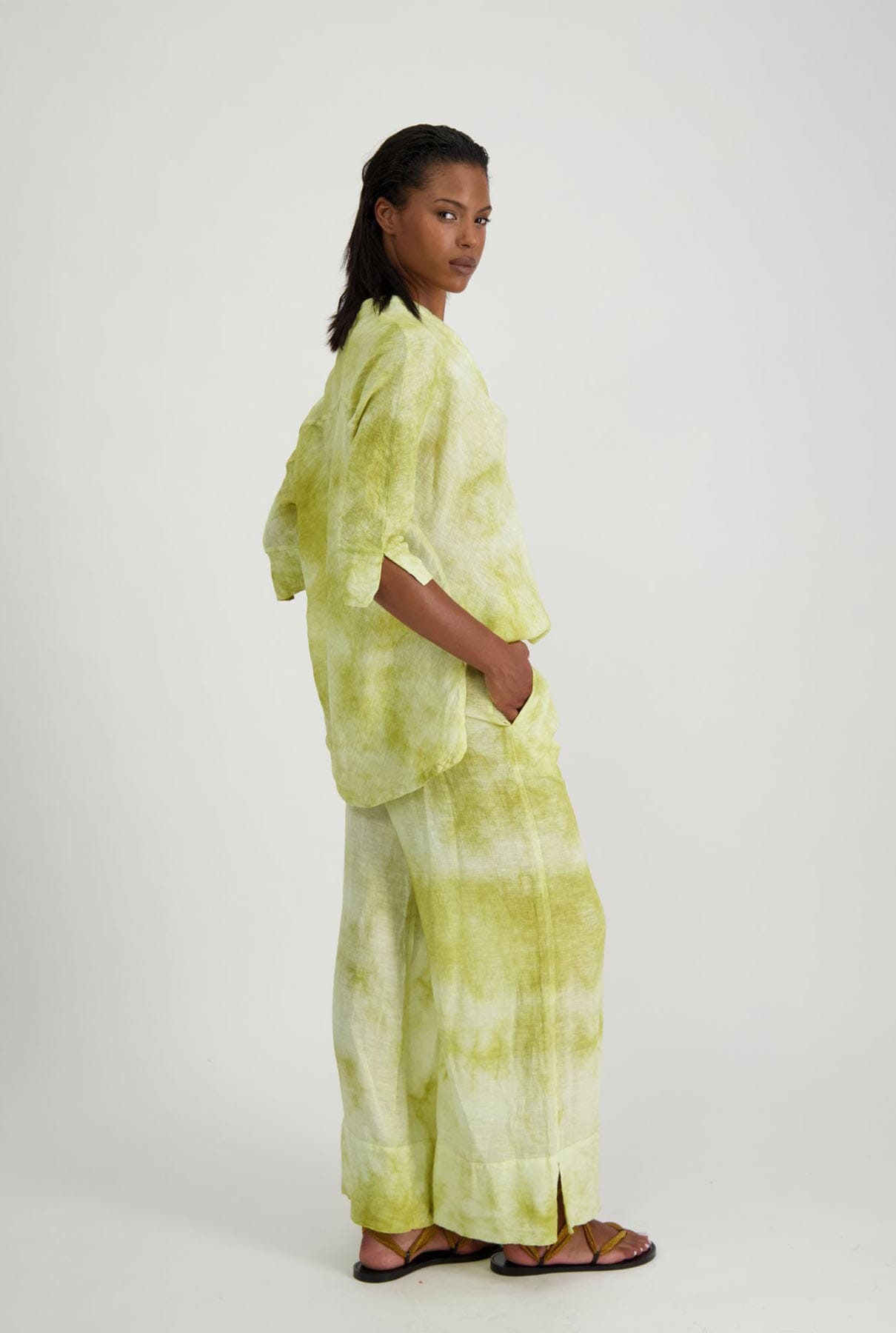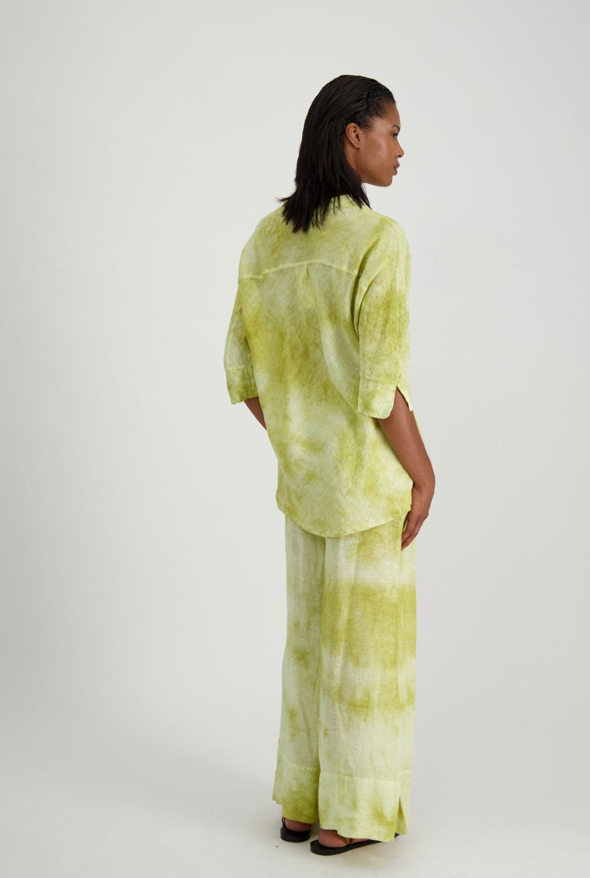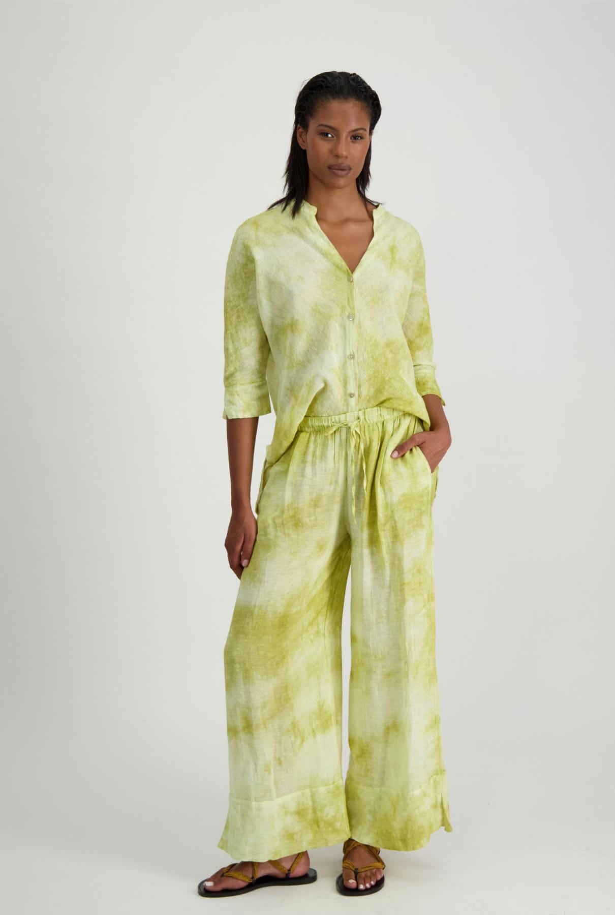 Pantalones con cinturilla elástica y cordón, con bajo extragrande. Efecto tie-dye.