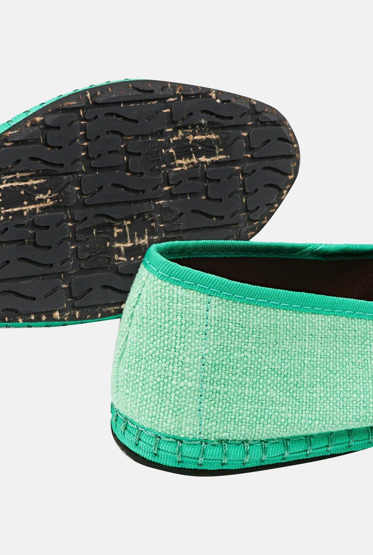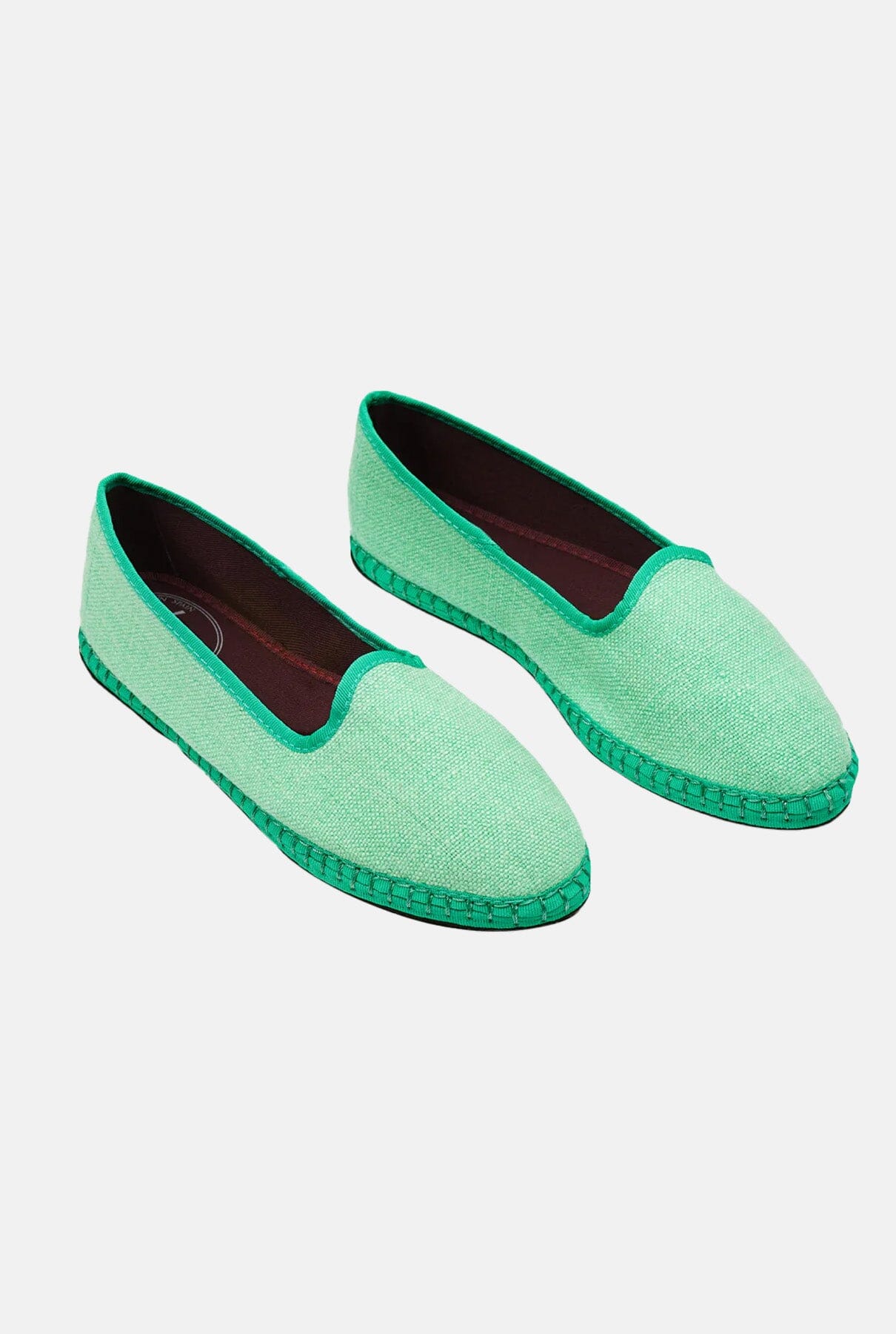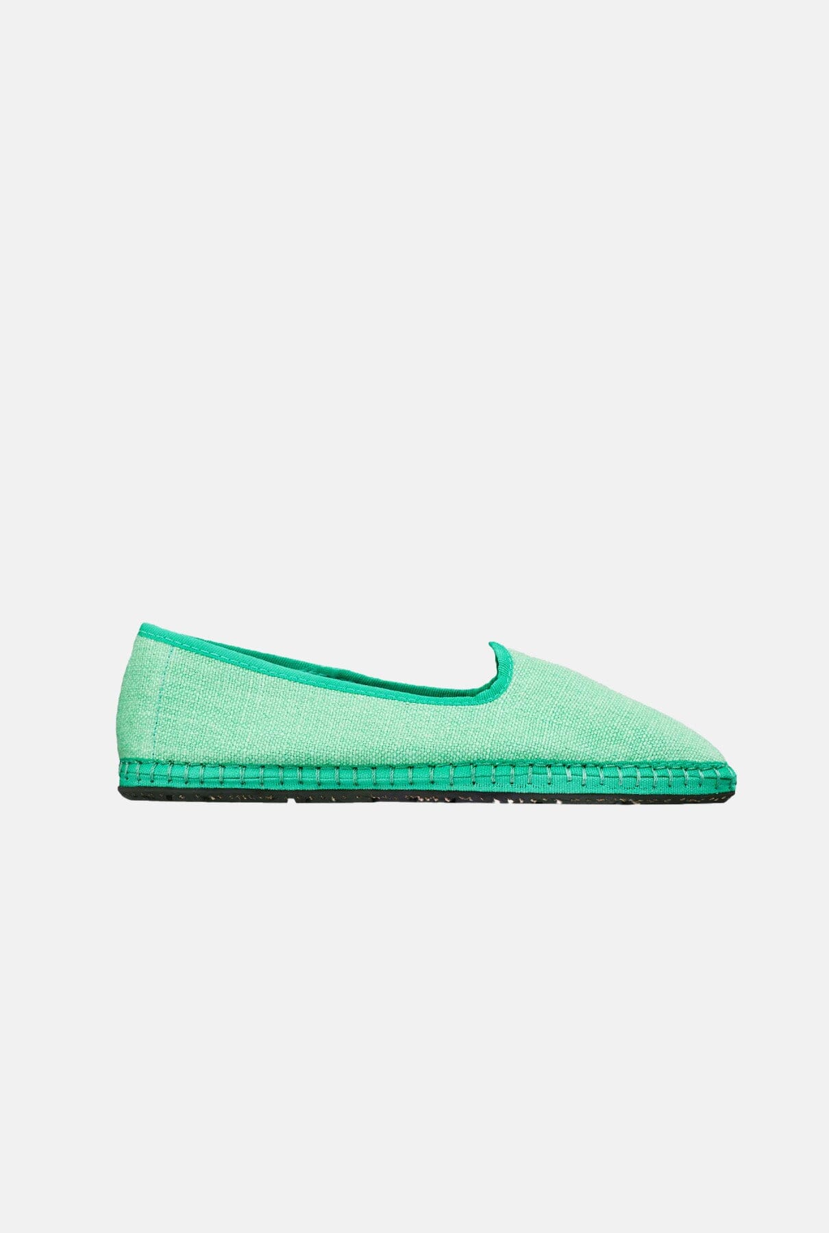 Zapatilla de lino en color verde claro con ribetes en verde claro.