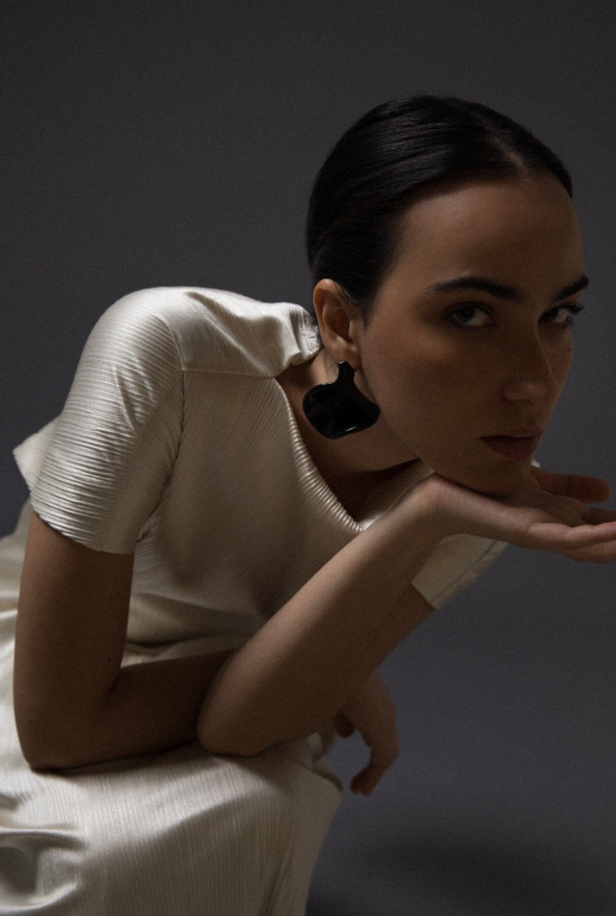 Vestido de novia tejido punto plisado con corte recto y ajuste debajo del pecho. Para la posibilidad de distintos largos y manguitos ponerse en contacto con info@corsicana.es